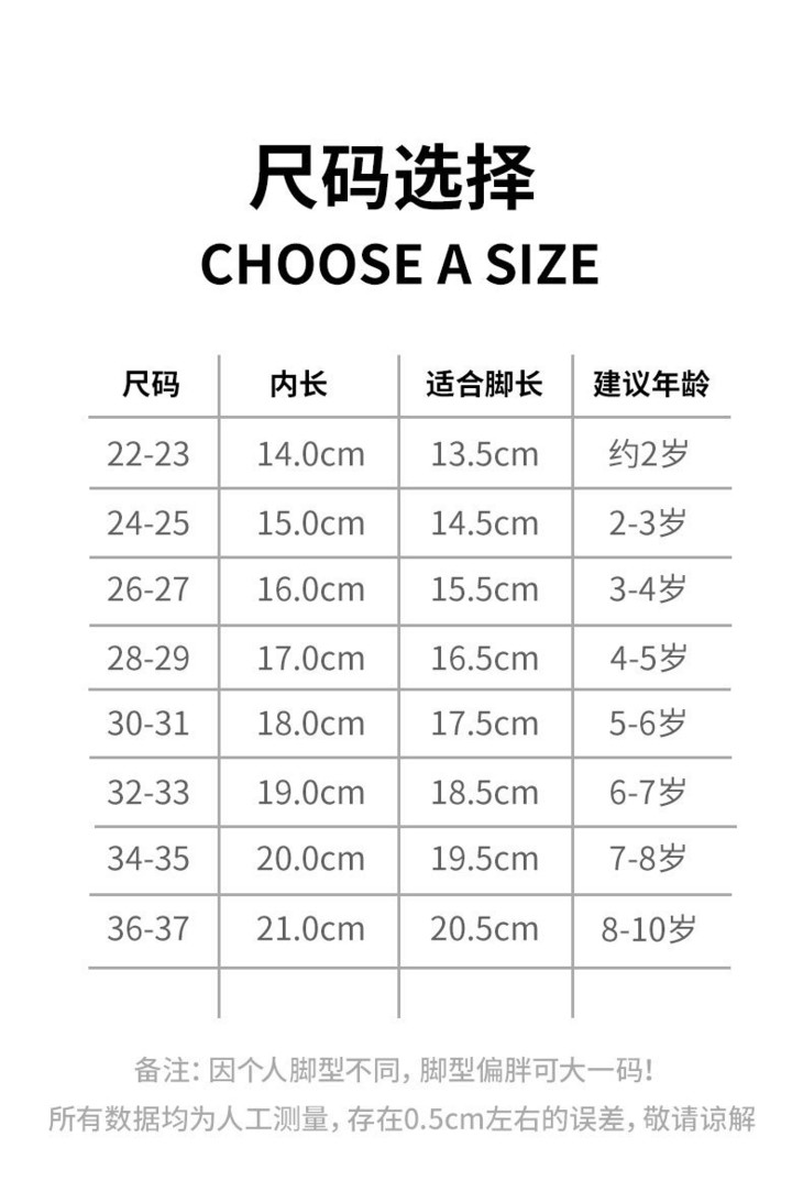 鞋码建议 💗👇( 按照宝宝实际的脚长+1cm选码,脚胖脚宽+1.5cm购买哦~)