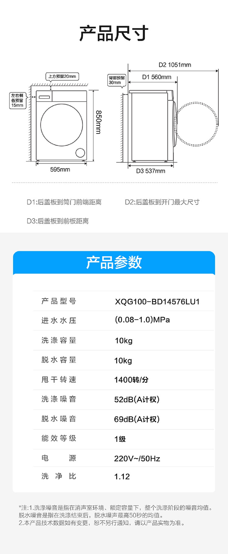 海尔(Haier)洗衣机 XQG100-BD14576LU1