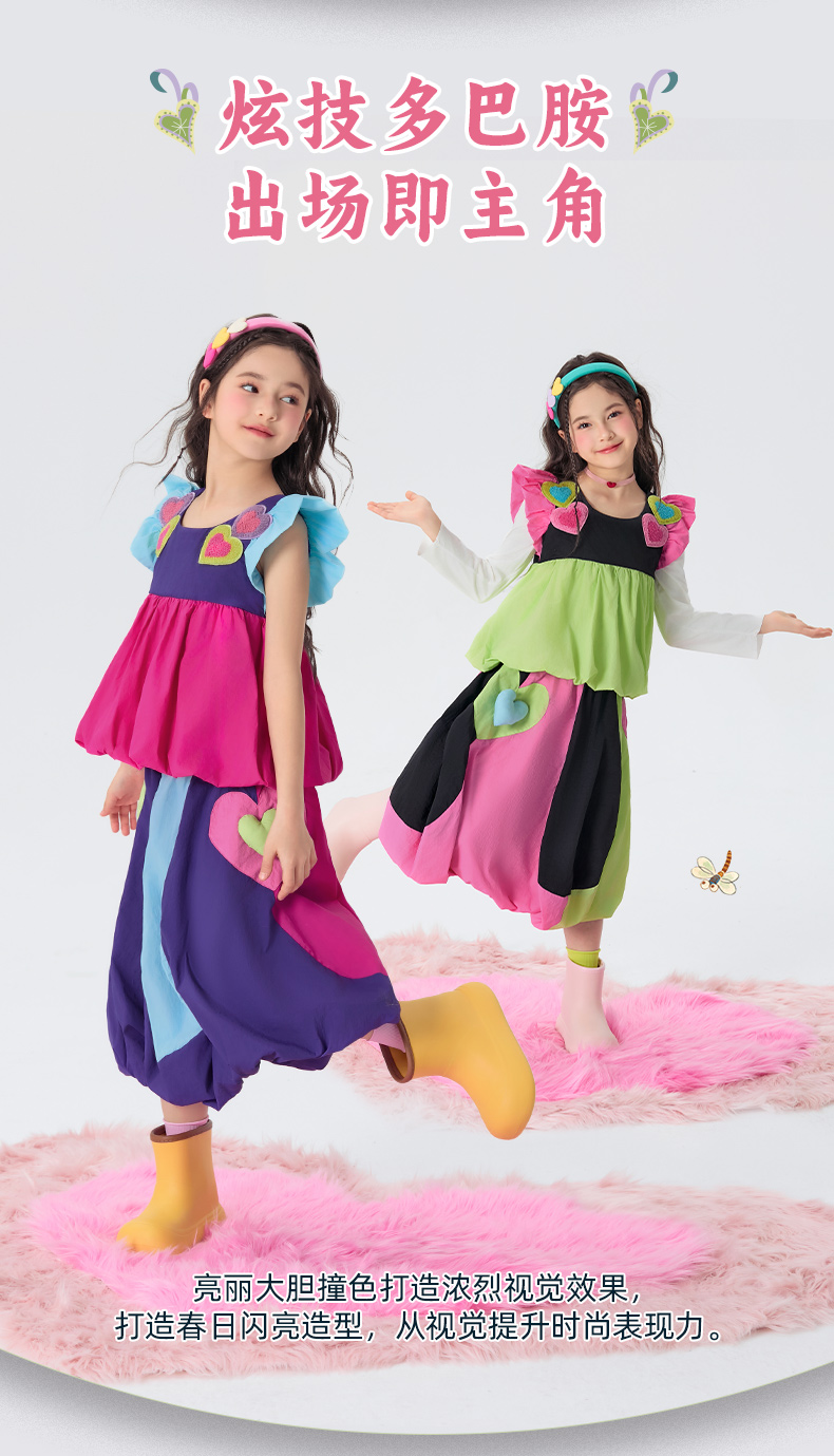年衣童装女童连衣裙背心裙2025年春款女孩花苞裙儿童美上心巴无袖上衣