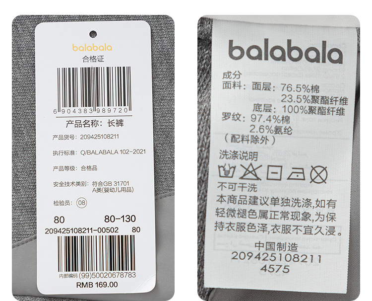 【爆品主推】巴拉巴拉balaOne宝宝长裤加绒运动束脚裤男女童2025冬季新款裤子