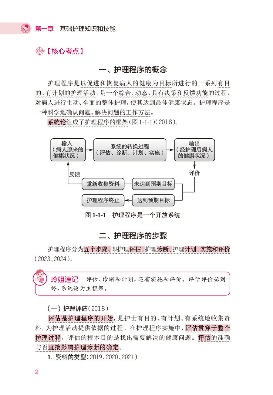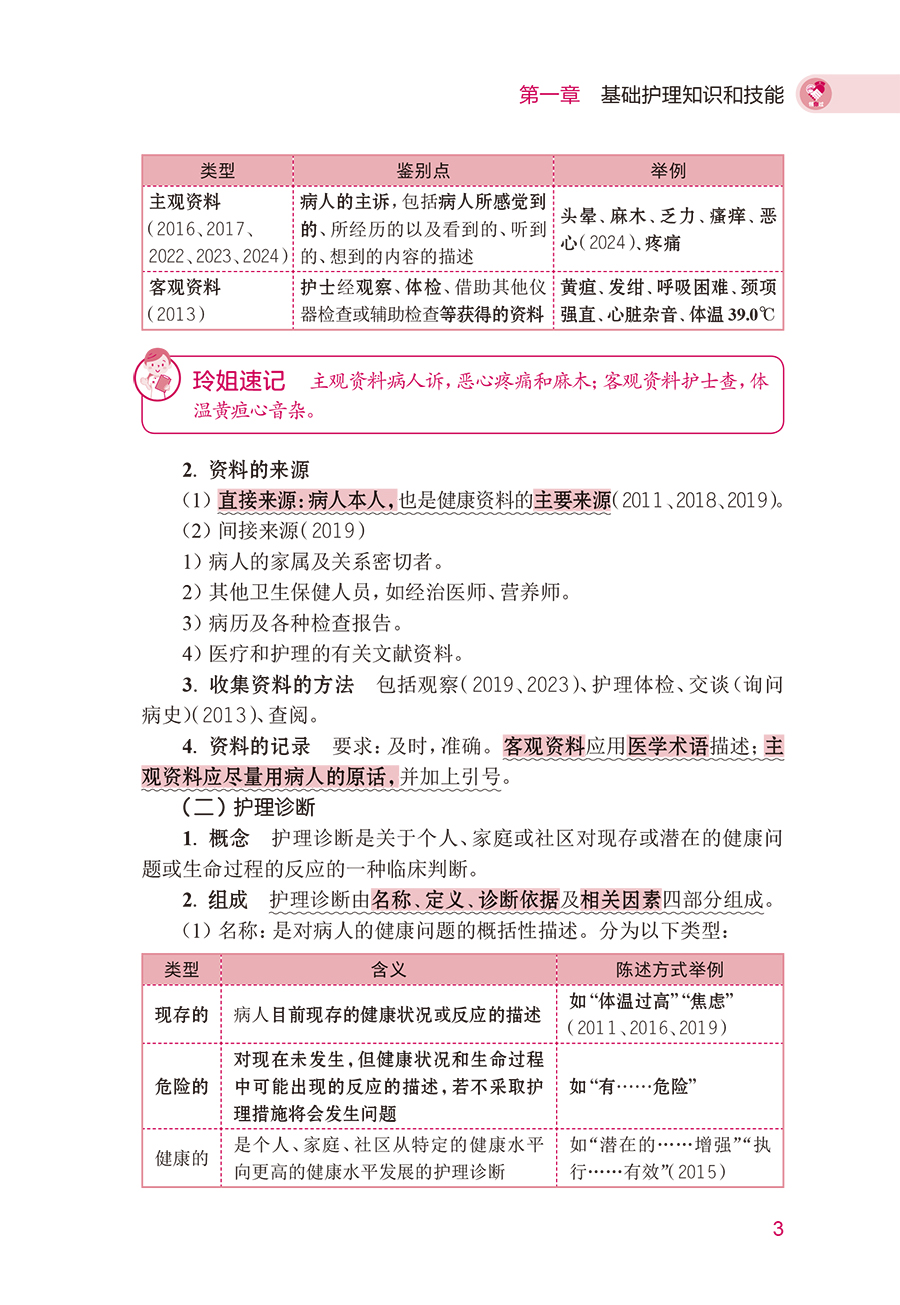 全书以《2025全国护士执业资格考试指导》为蓝本,紧密围绕最新考试大纲,每章分为“考情分析”“核心考点必背”两个模块。“考情分析”模块明确每章重要考点,分析各考点在近几年考题中的考查比例,为考生提示重点难点。“核心考点必背”模块提炼核心考点,并配有丰富的应试口诀及试题点睛,帮助忙碌的护理考生花最少的时间轻松突破护考的堡垒而快速过关取胜。本书为满足考生临床实习期间随时便捷复习的需求而策划。打破学科之间的壁垒,将人体作为一个有机整体,把相关凌乱的考点凝炼融合在一起,用深入浅出的语言解释复杂的知识,使知识点变得简单易懂。将复杂的、难以记忆的知识点编成朗朗上口的歌诀,韵律化的语言可提高记忆效果。知识点简洁直观、整齐有序,便于总结归纳、对比记忆。新增“玲姐速记”板块,一句话记住核心考点。