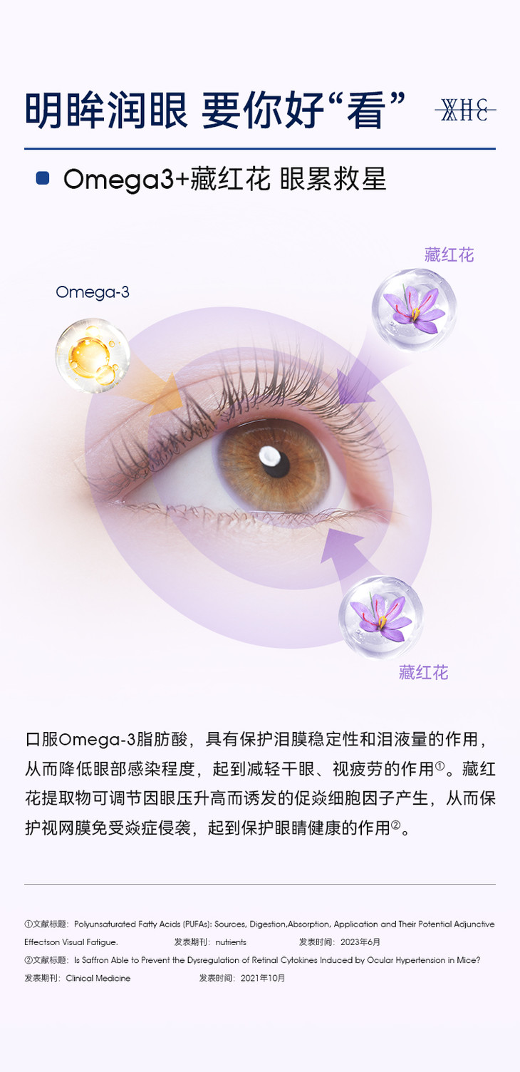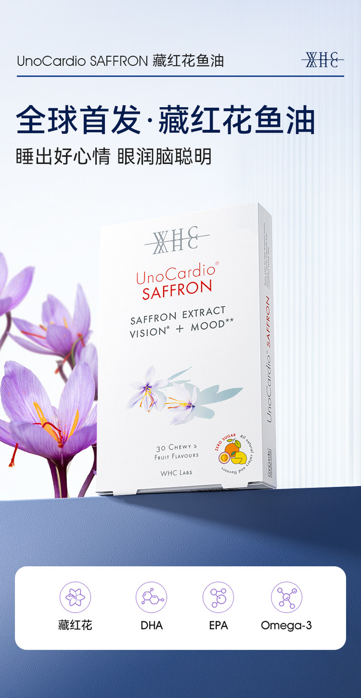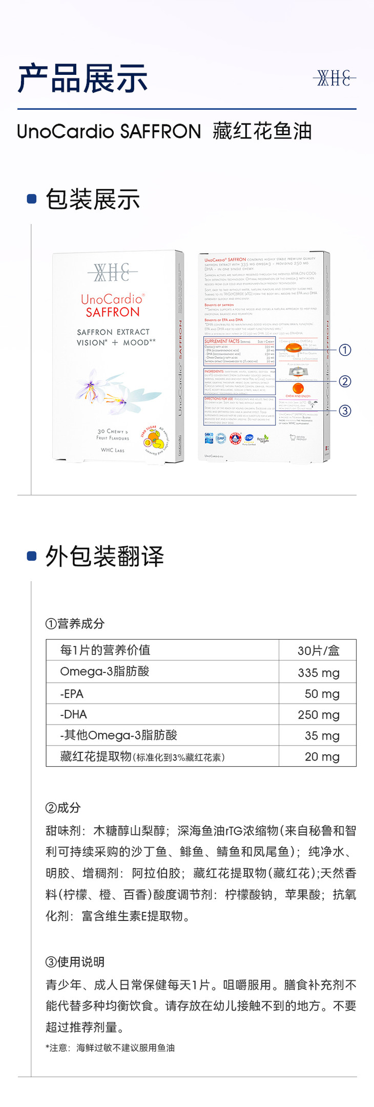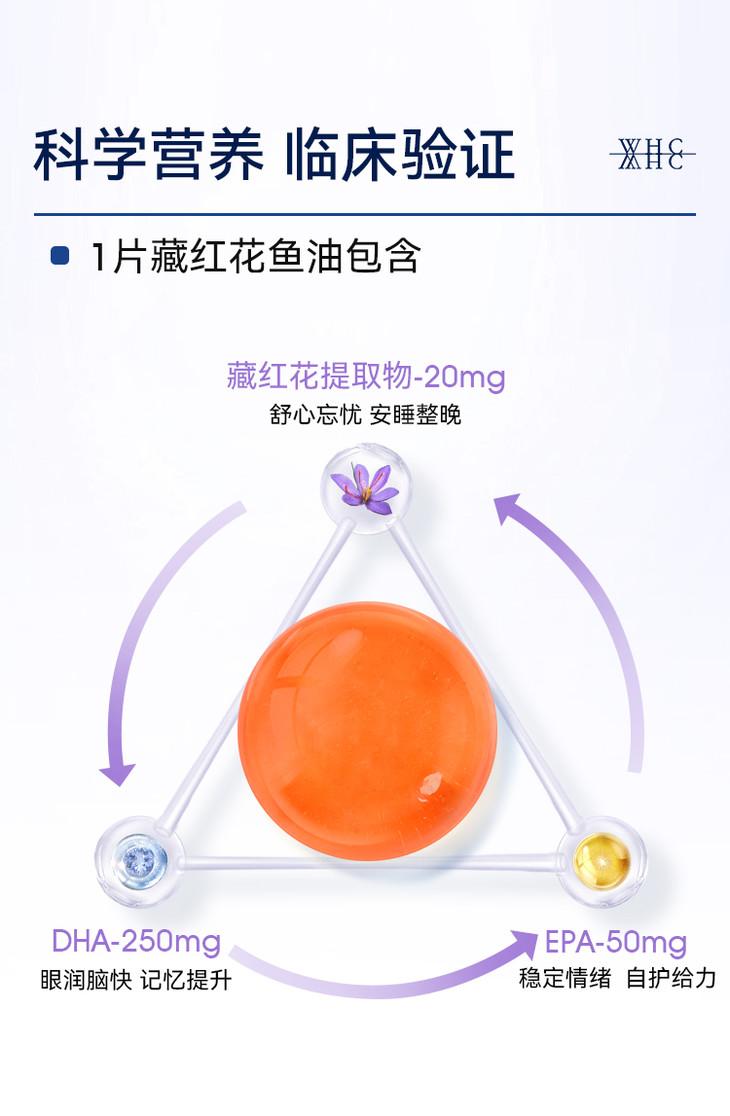 【跨境】WHC花仙子藏红花进口深海情绪鱼油Omega-3舒缓情绪助眠安睡成人30片/盒