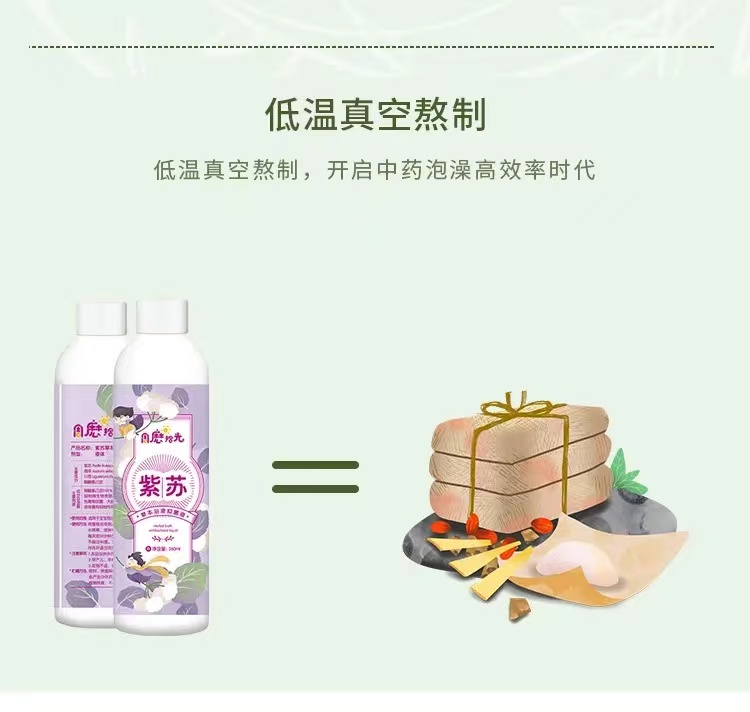周麽拾光采用国家专利制作工艺,传承中医精髓,低温真空熬制,比蒸煮更有效率,生产工序非常讲究精选,浸泡时间上的控制(决定中药材的提取率),以及熬煮时火候的控制,药材需熬煮两次,中药材成分溶出率(第一次大约53%,第二次大约32%),再经特殊处理后才出成品,看似简单得一瓶药浴,从中草药到成品需要18个小时。
