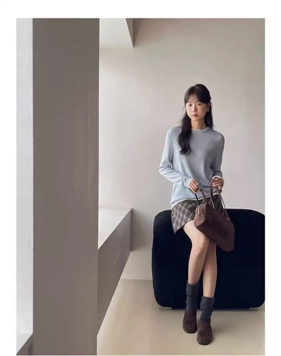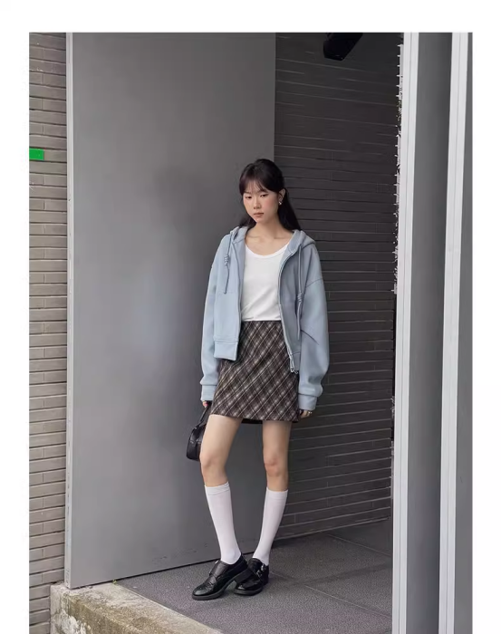超百搭出片的一款短裙,搭配衬衫,卫衣,针织可以。