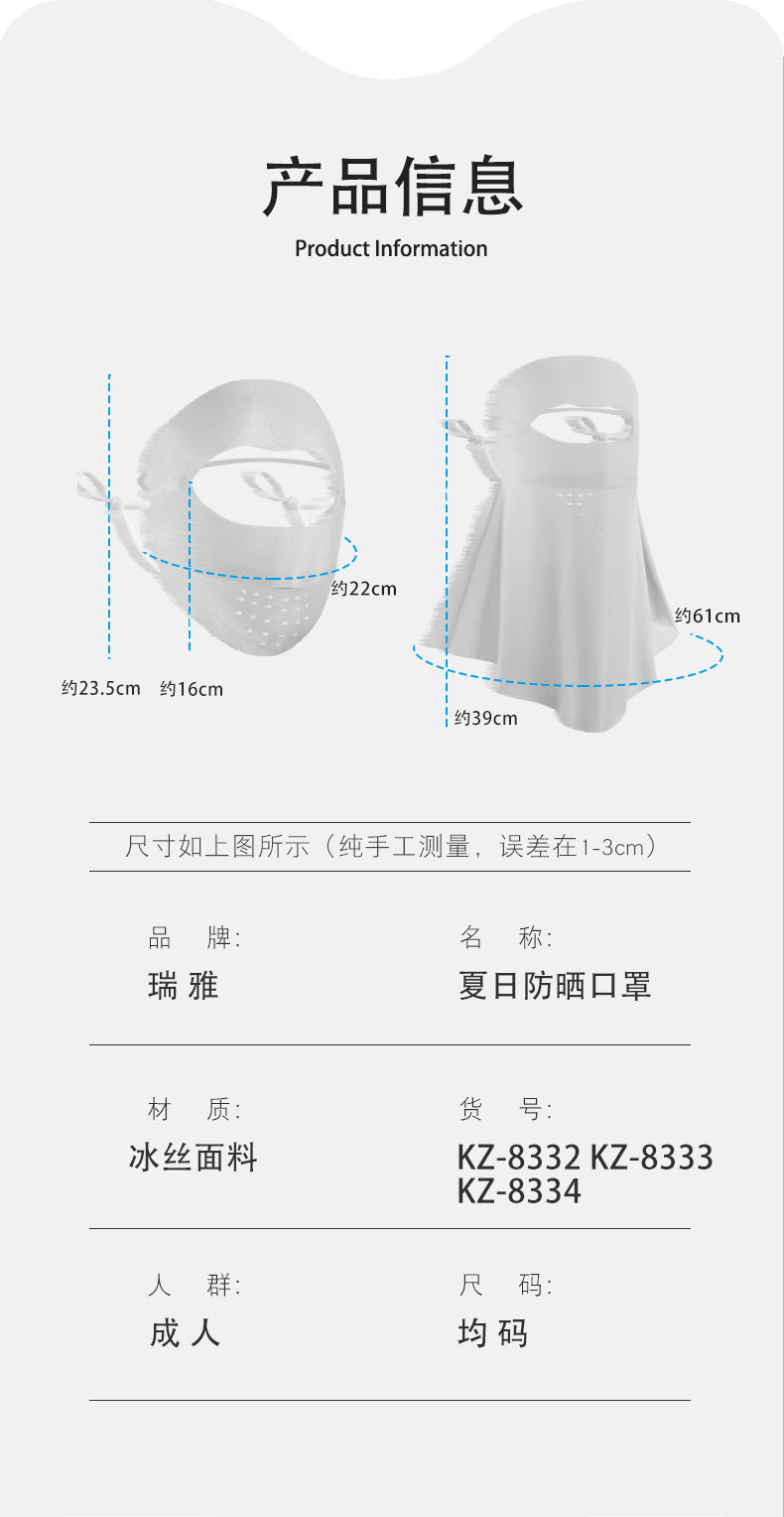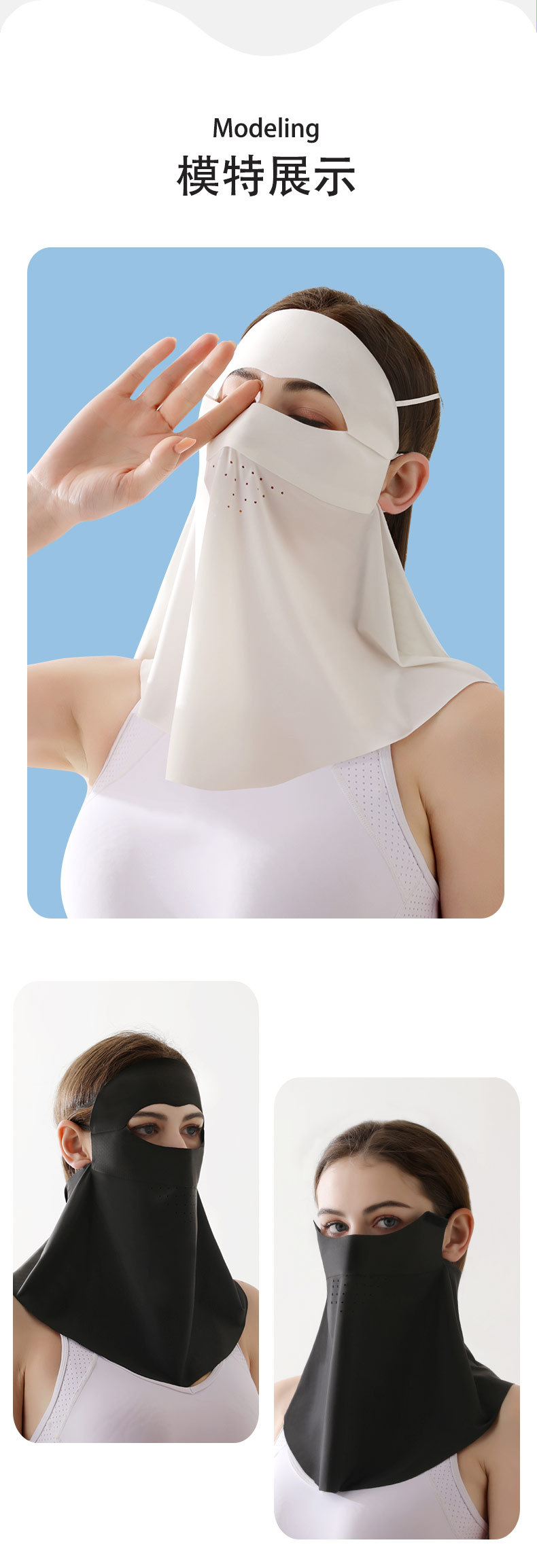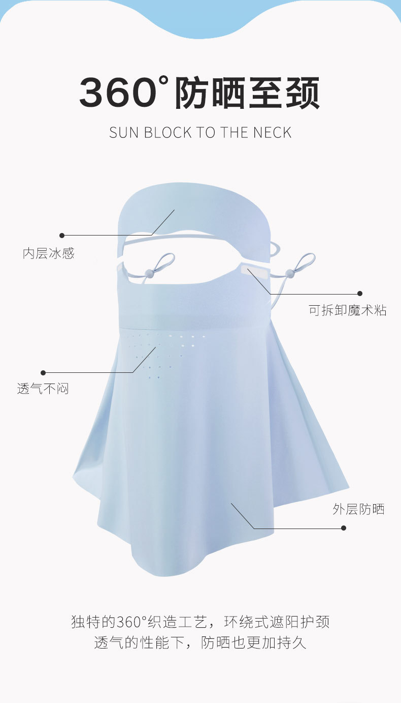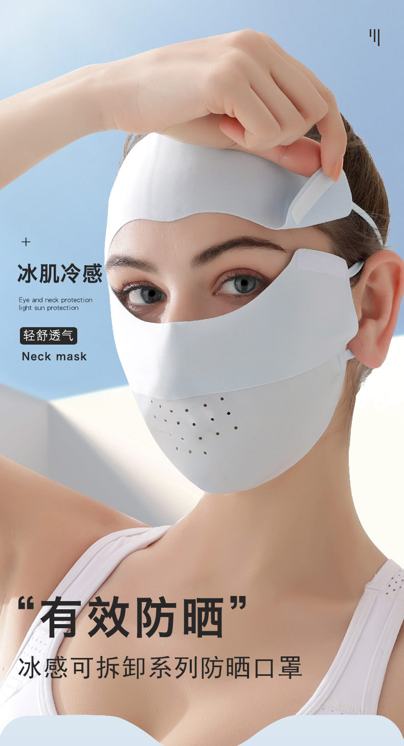 「冰肌冷感!数色可选」可拆卸夏季冰丝防晒护颈面罩 女全脸遮阳口罩户外脸基尼配饰