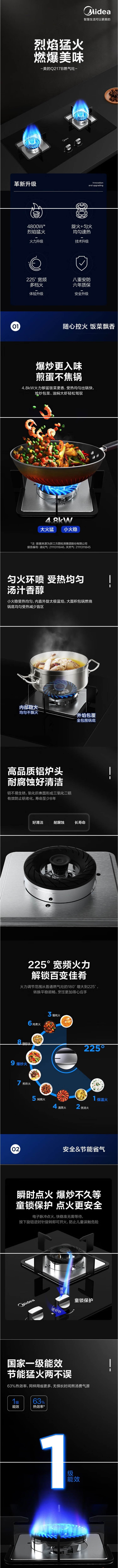 美的(Midea)燃气灶 (510519)家用天燃气双眼灶 4.8KW大火力天然气台嵌两用式猛火灶台式嵌入式燃气灶JZT-Q217B-M