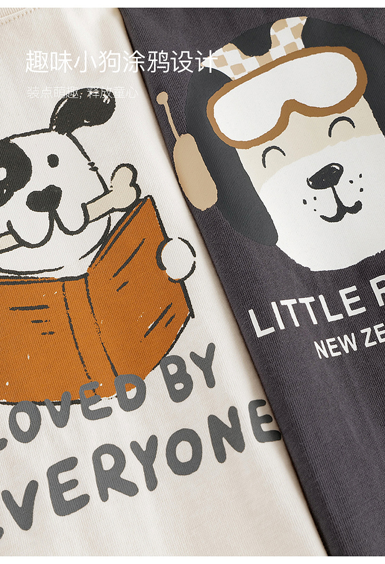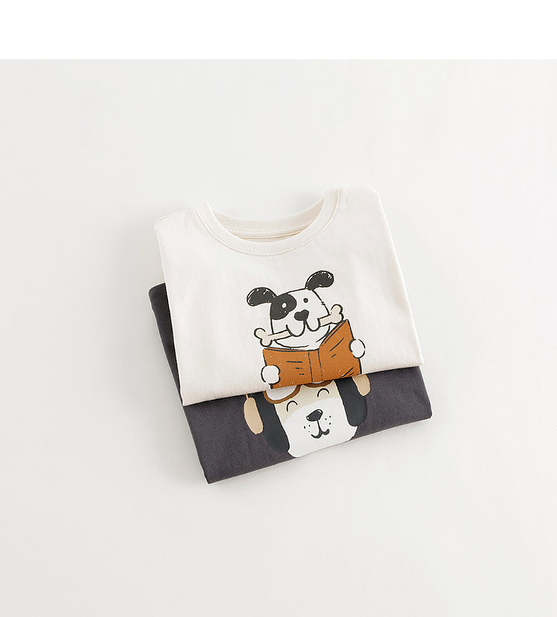 马克珍妮男童小狗涂鸦宽松长袖T恤儿童上衣2024年秋装新款241000