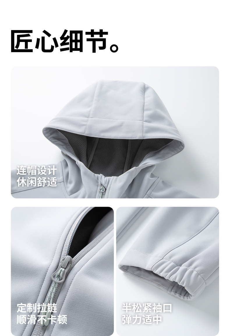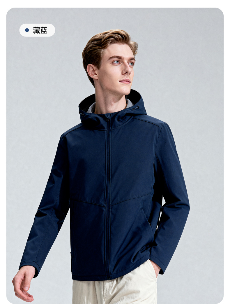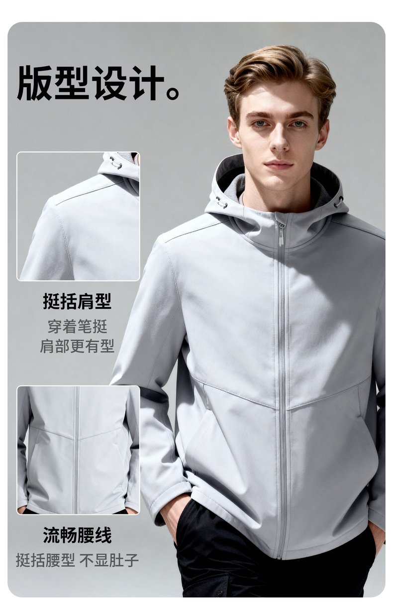 圣得西情侣款修身连帽夹克2025秋冬季新款华夫格暖绒内里加绒外套