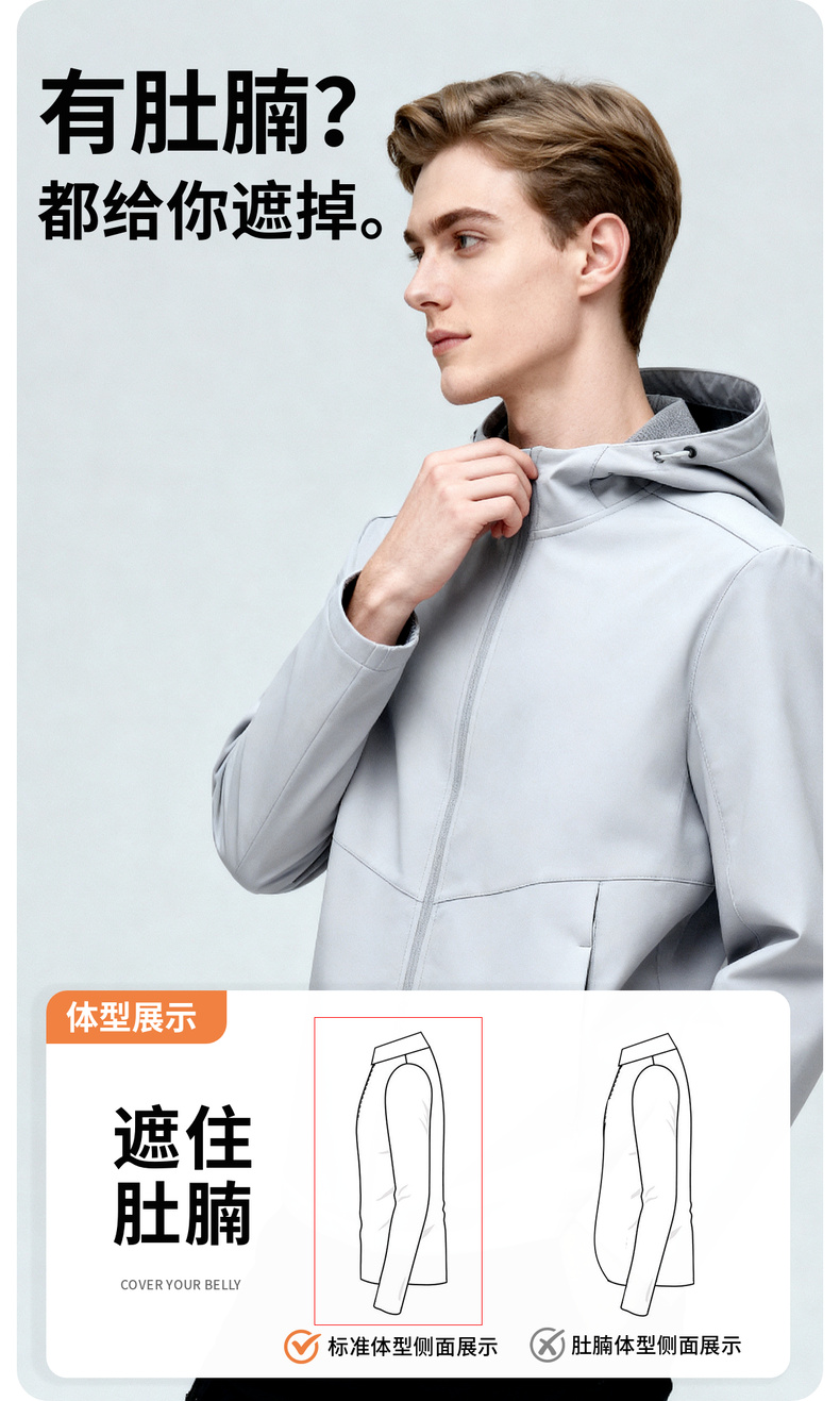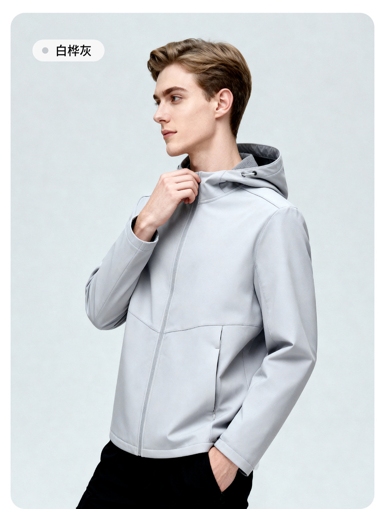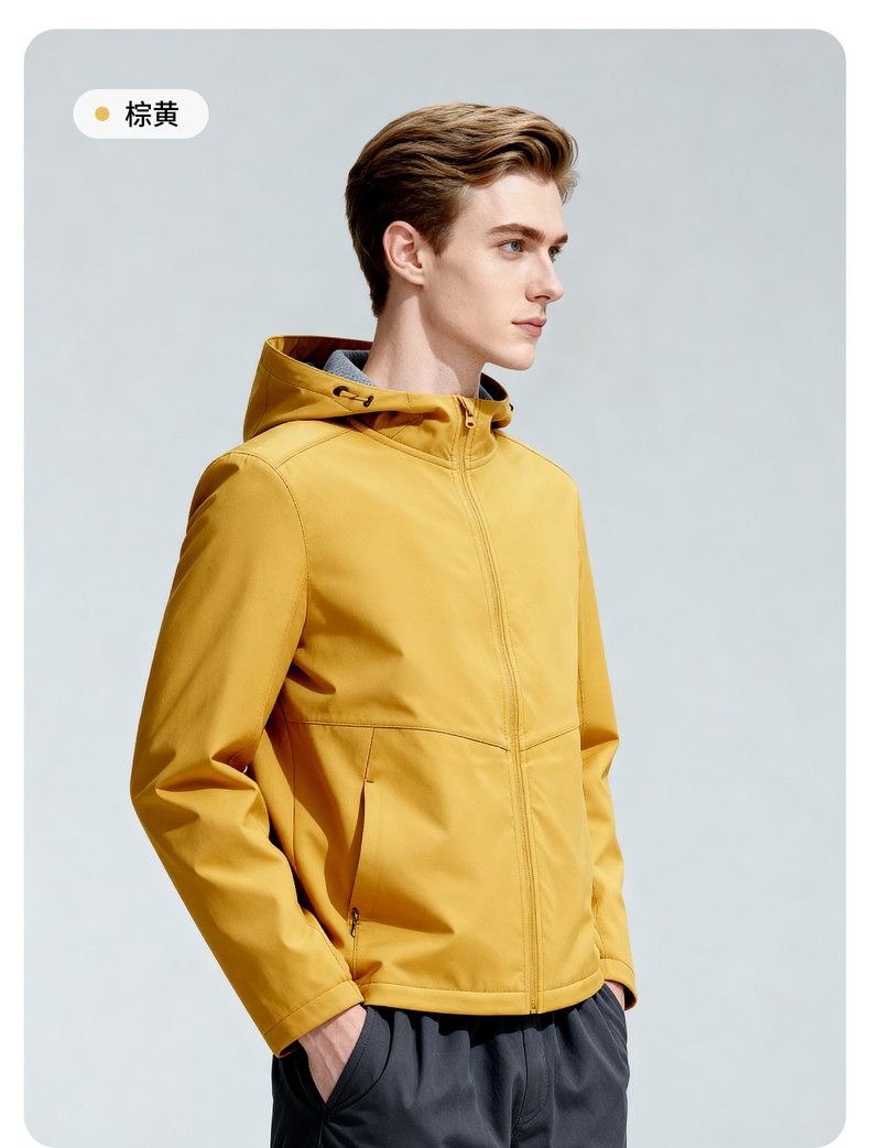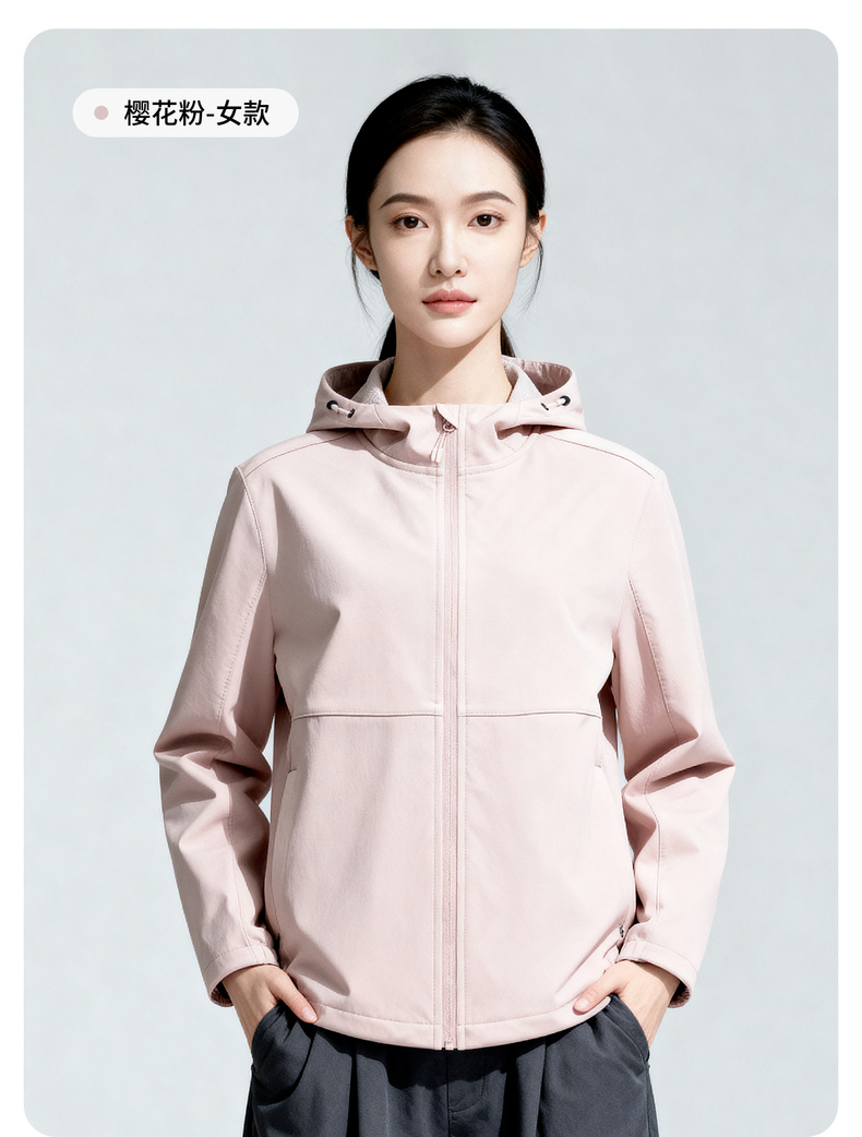 圣得西情侣款修身连帽夹克2025秋冬季新款华夫格暖绒内里加绒外套