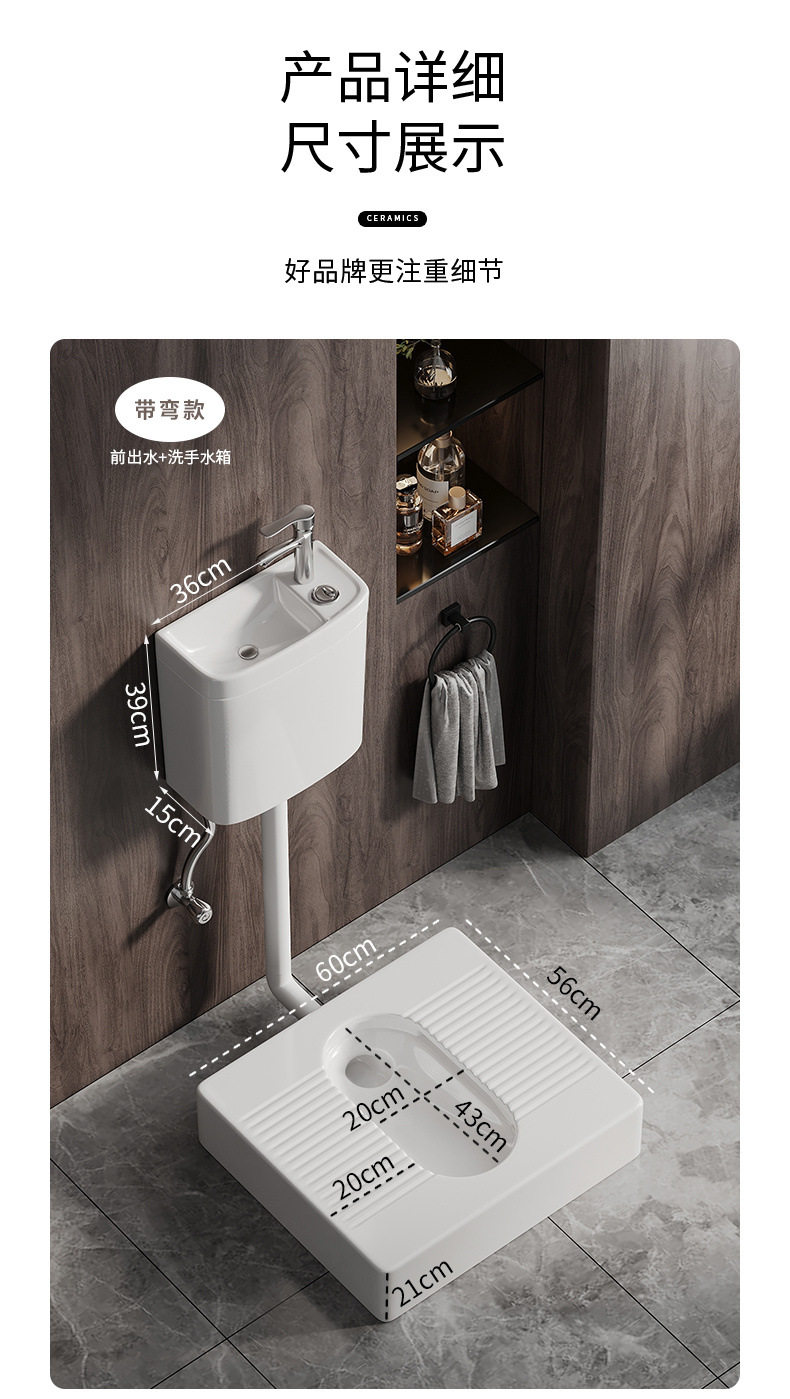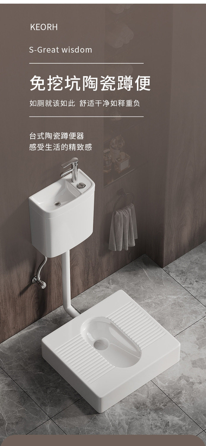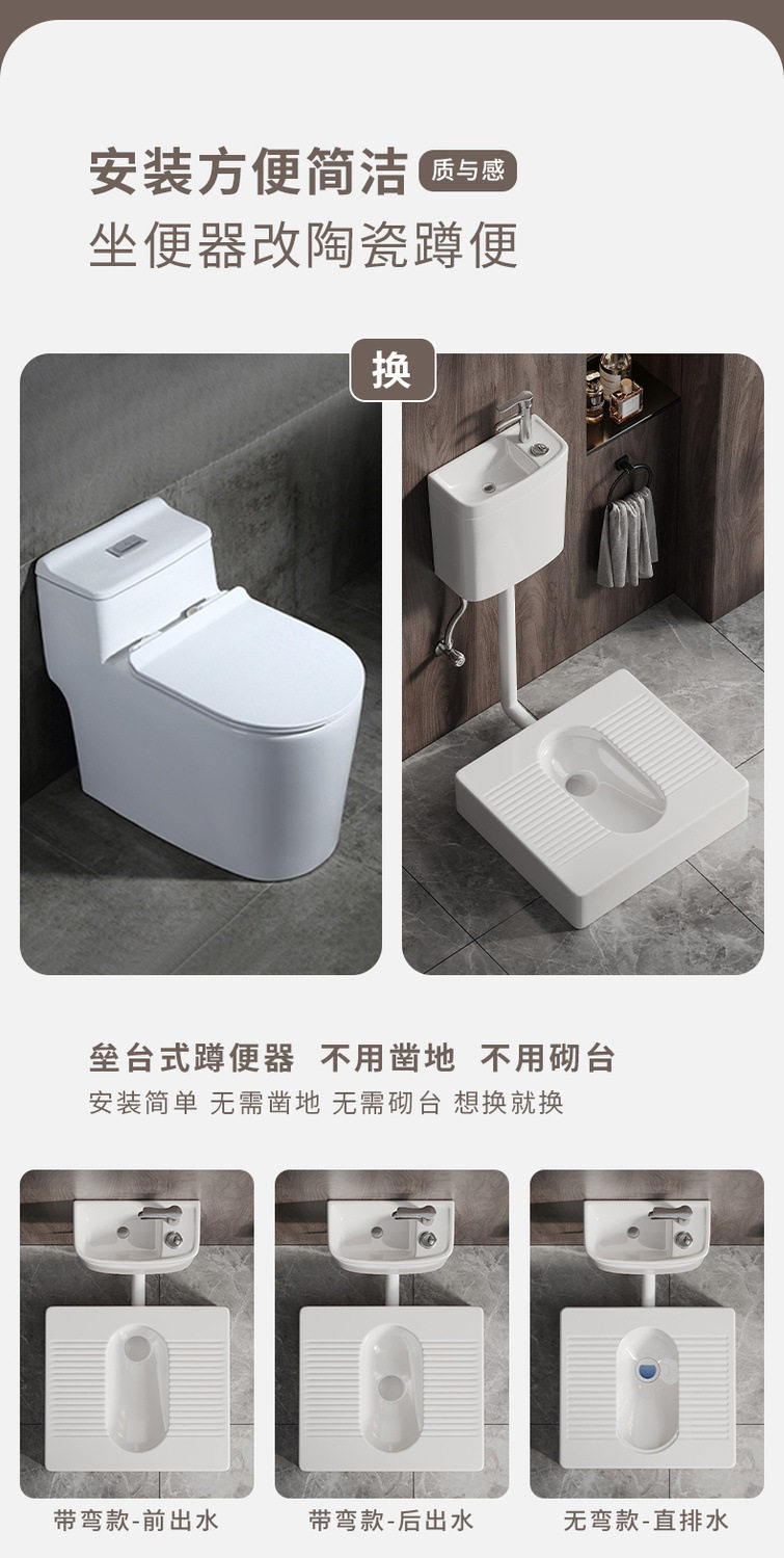 便弯明装存水蹲坑台式便厕蹲蹲带改便器蹲便免防臭台蹲挖坑免坐砌