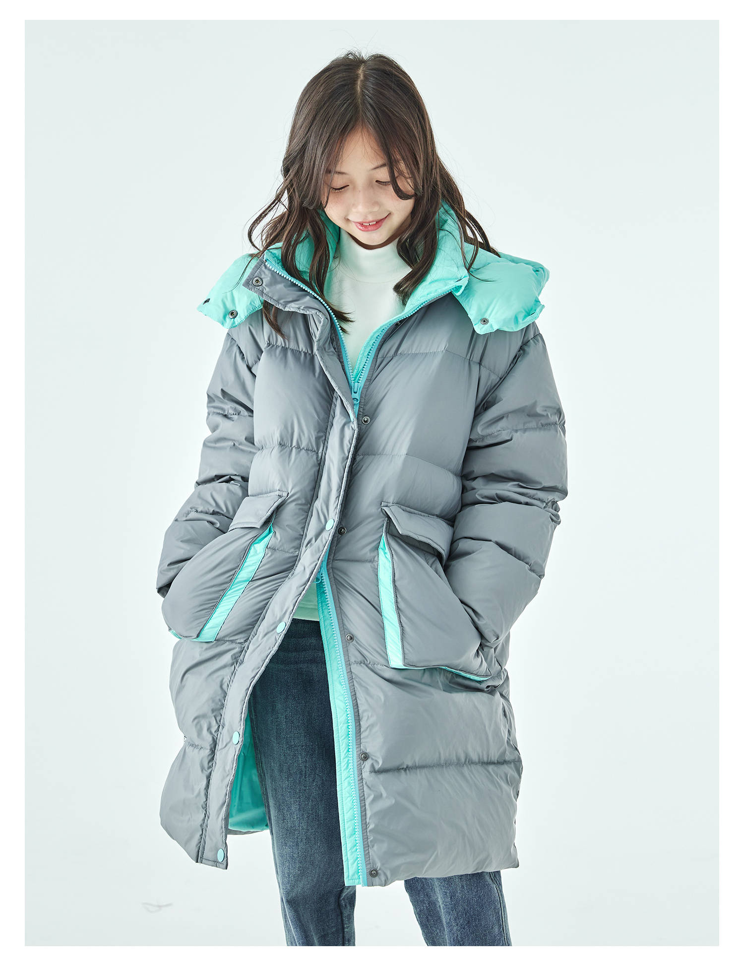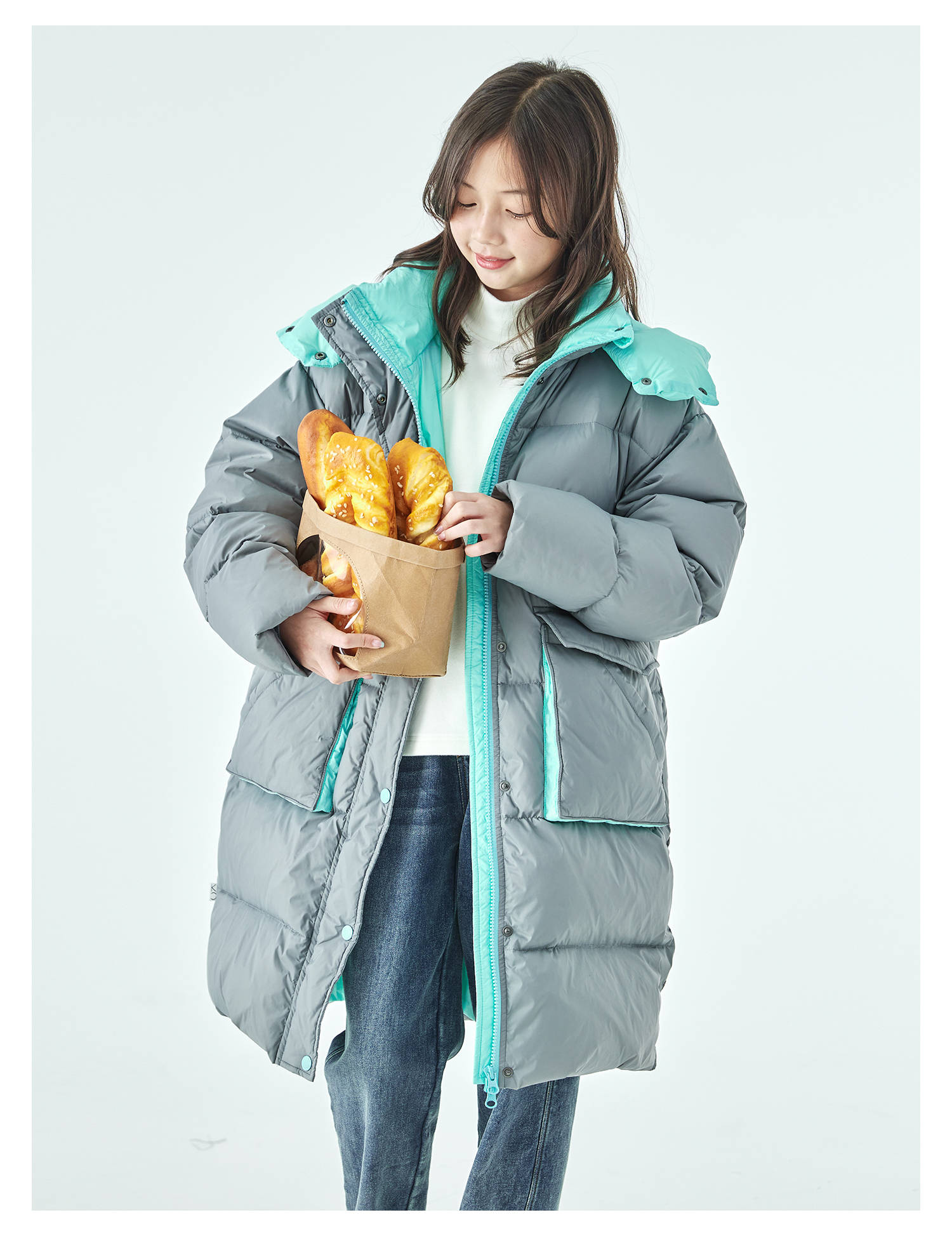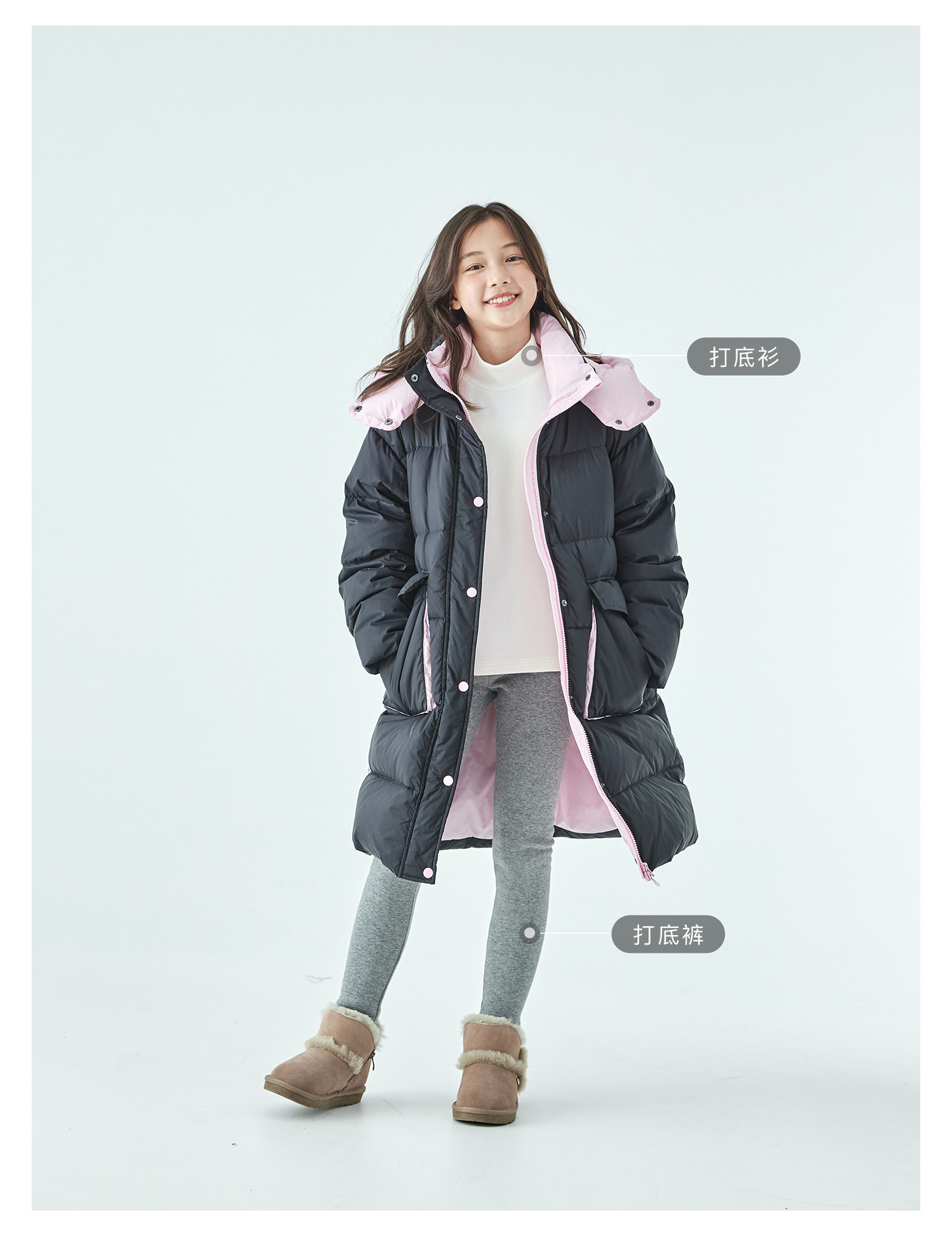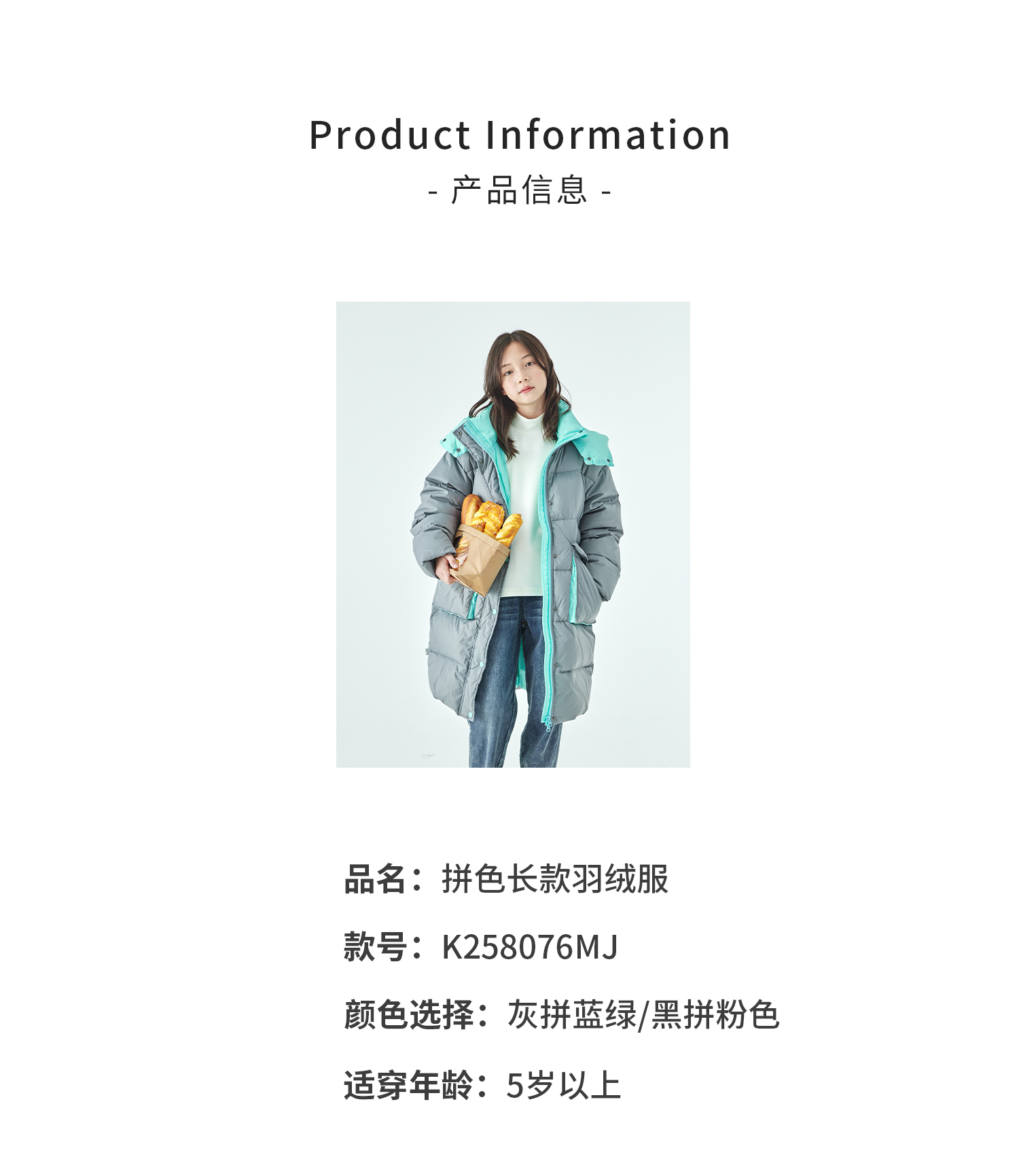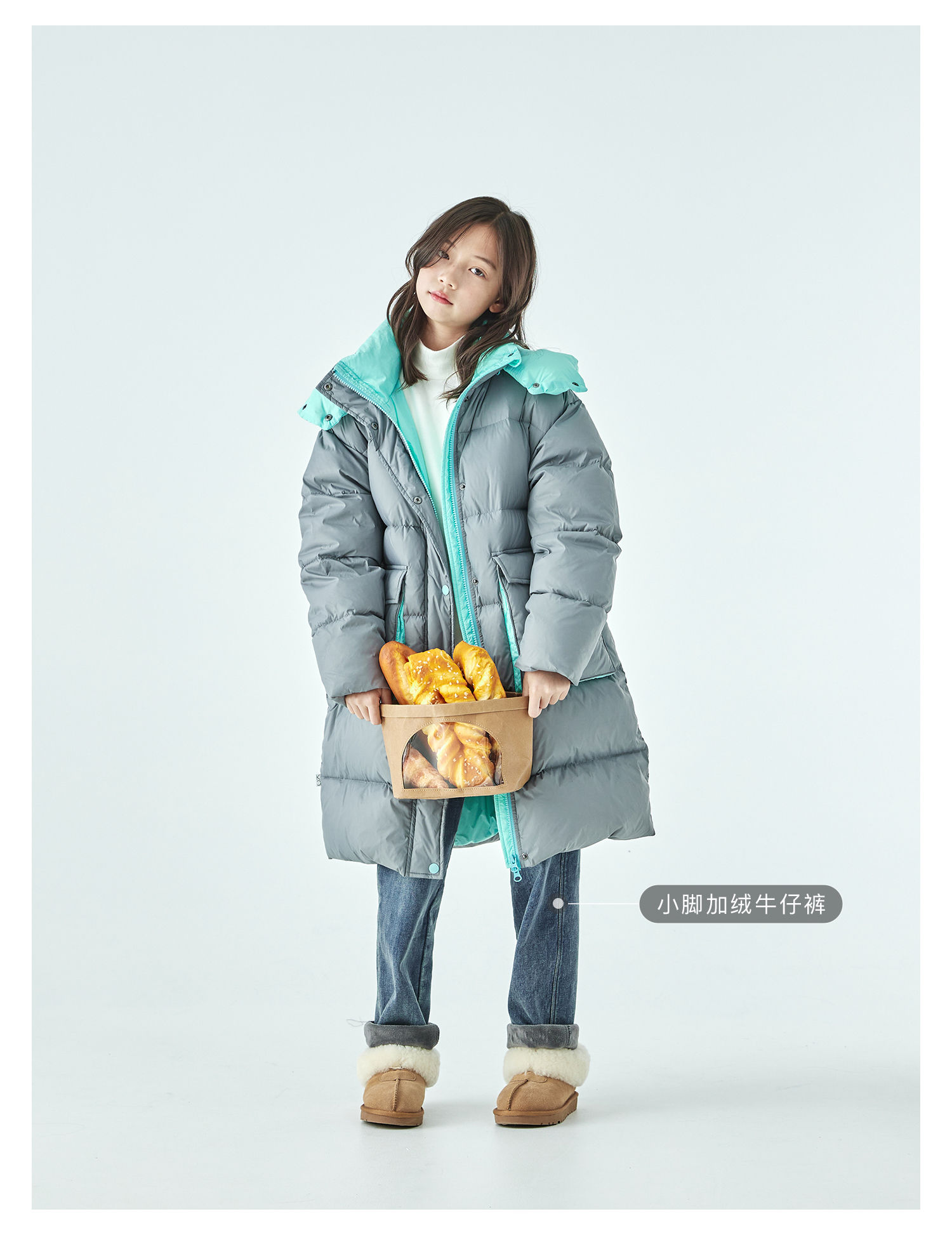 棵初25年冬季新款亲子中大女童拼色长款羽绒服防钻绒基础百搭外套