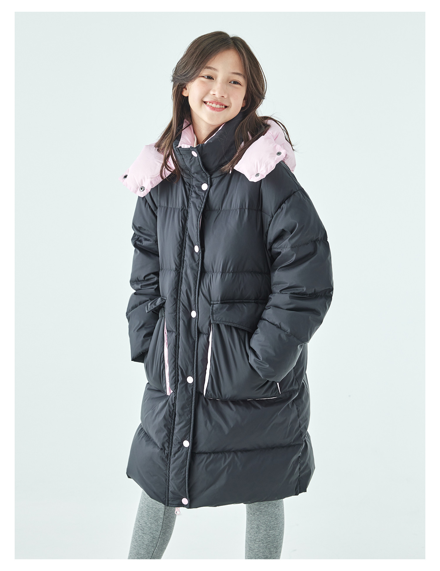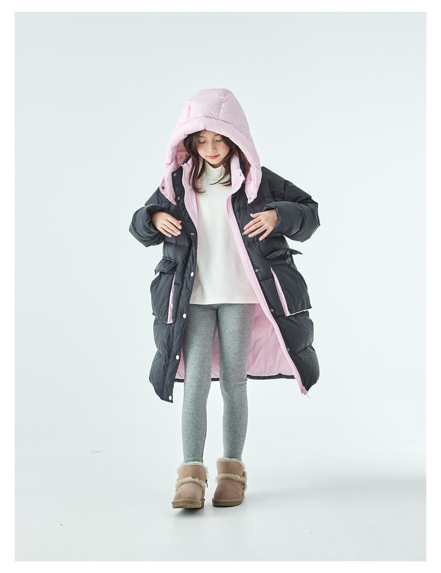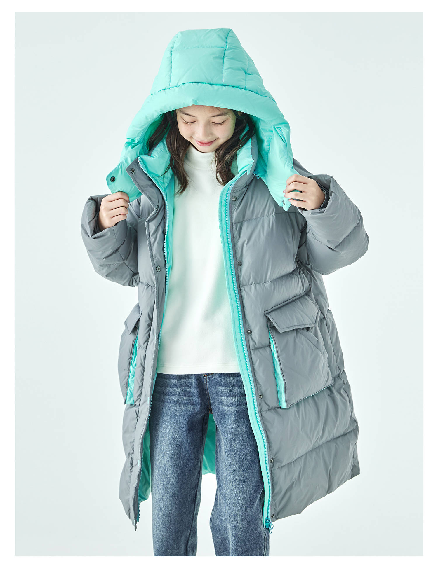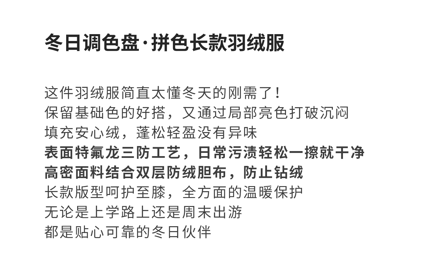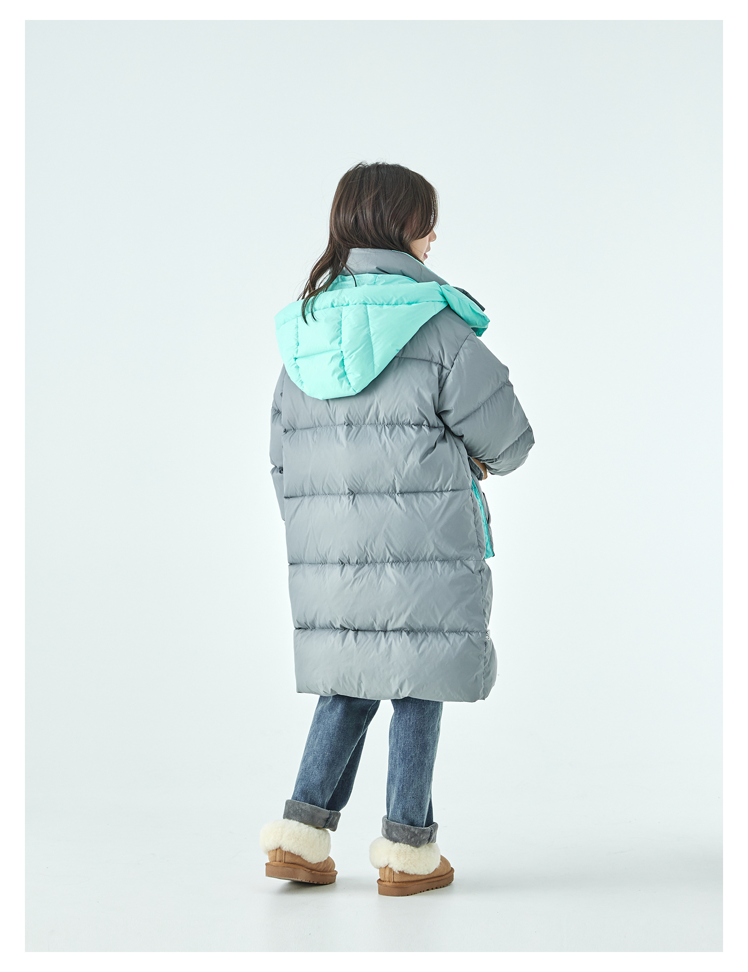 棵初25年冬季新款亲子中大女童拼色长款羽绒服防钻绒基础百搭外套