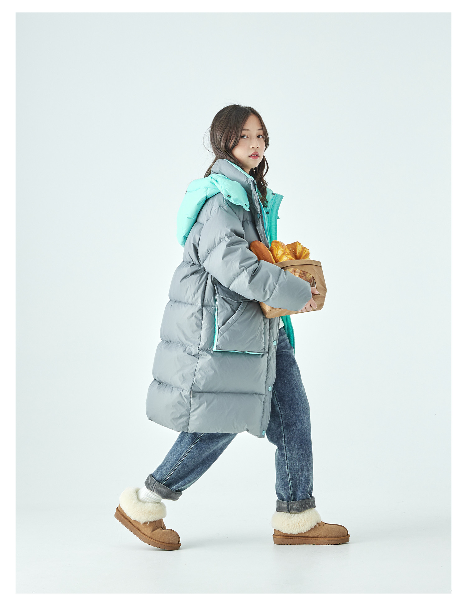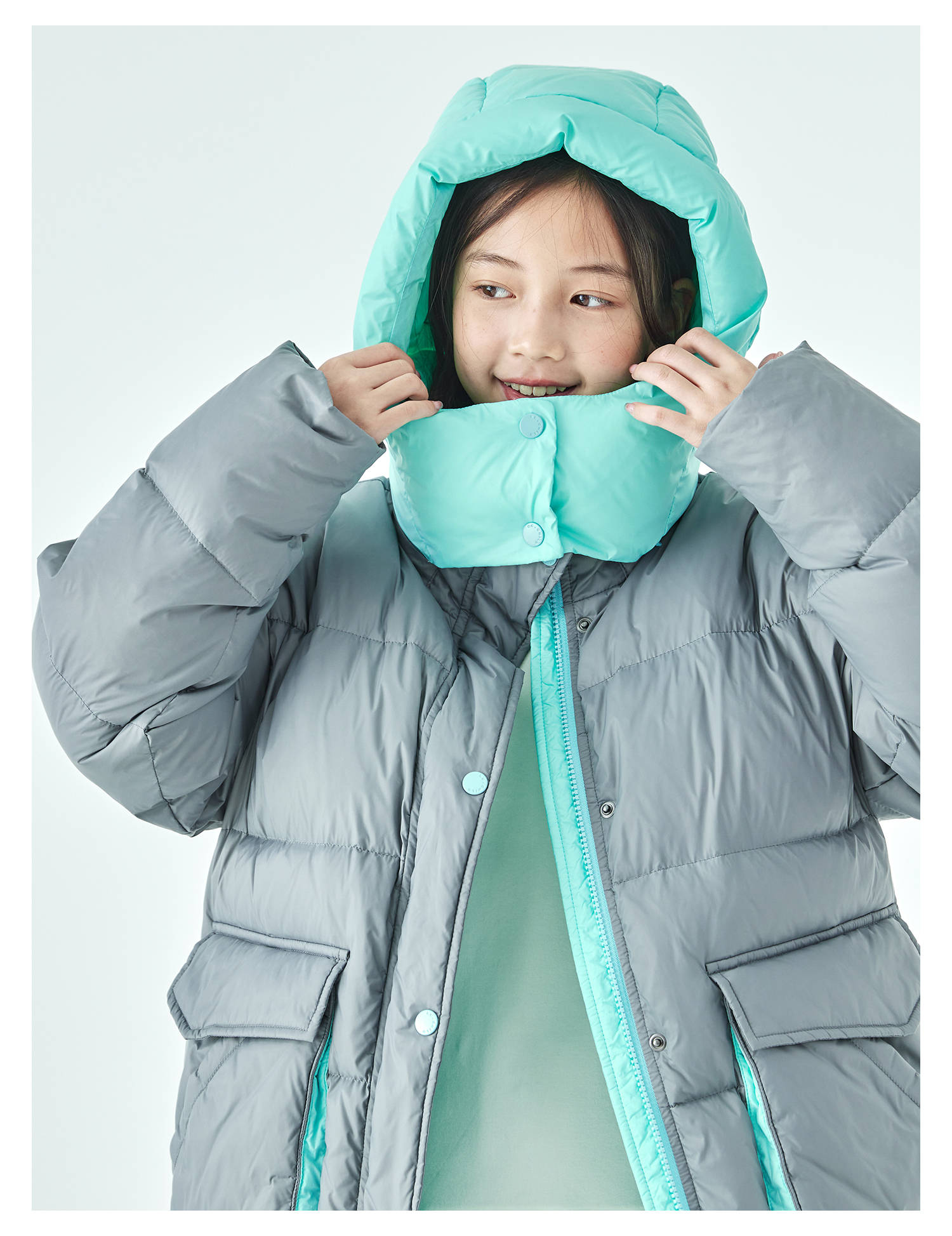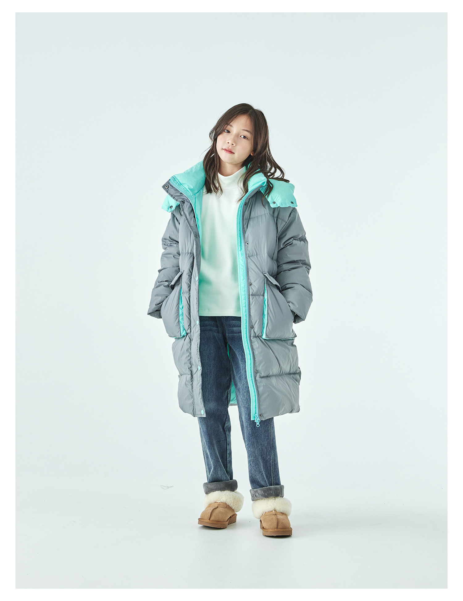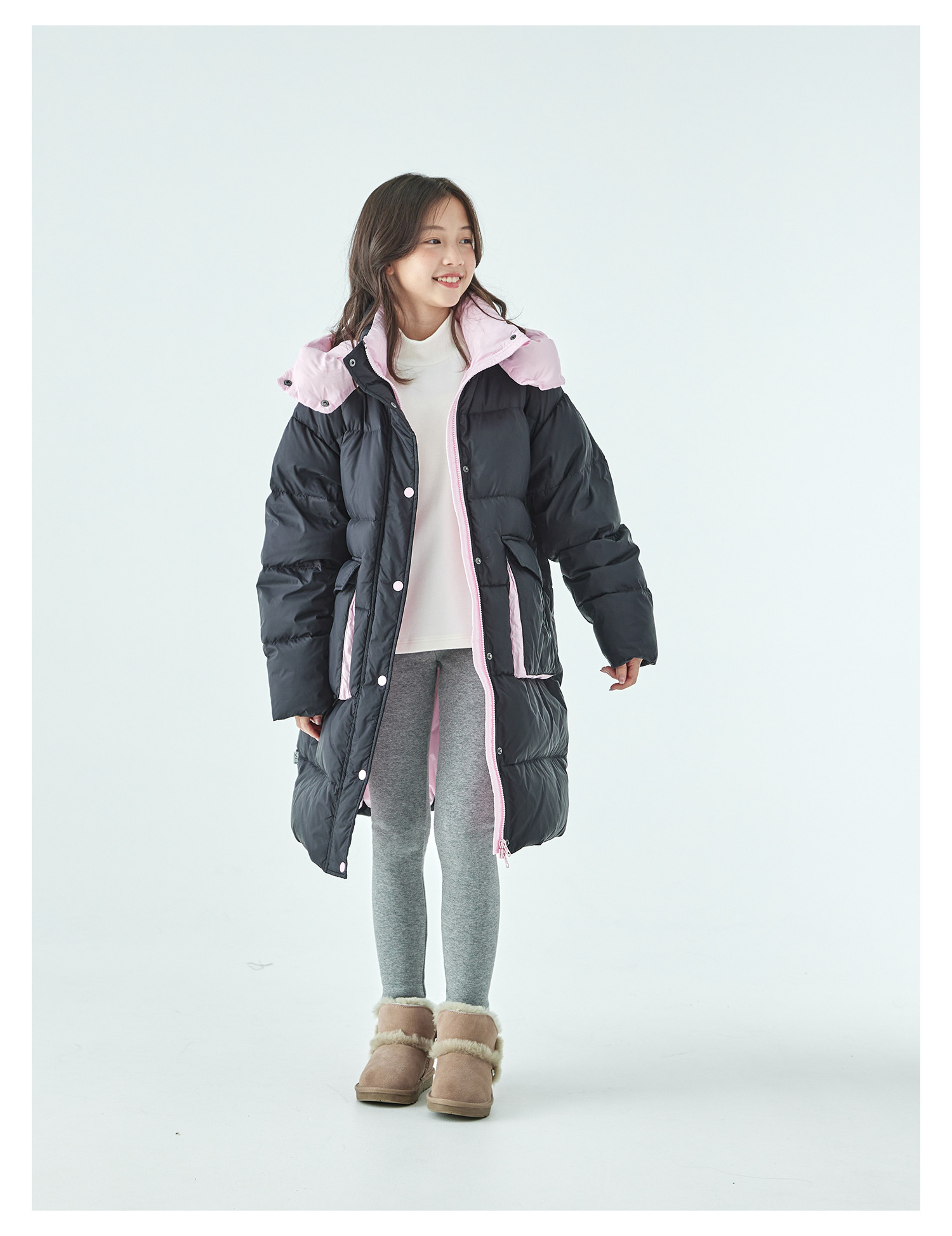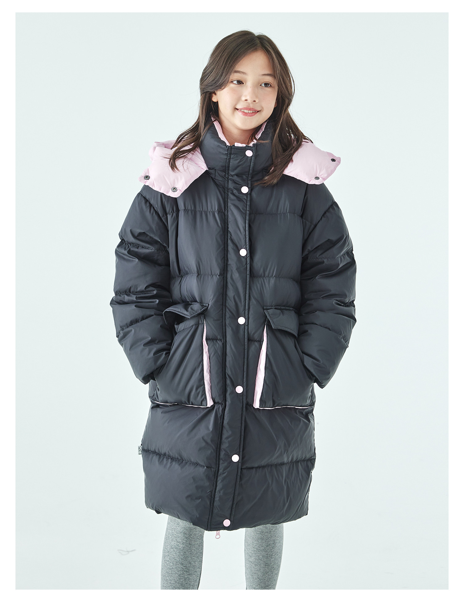 棵初25年冬季新款亲子中大女童拼色长款羽绒服防钻绒基础百搭外套