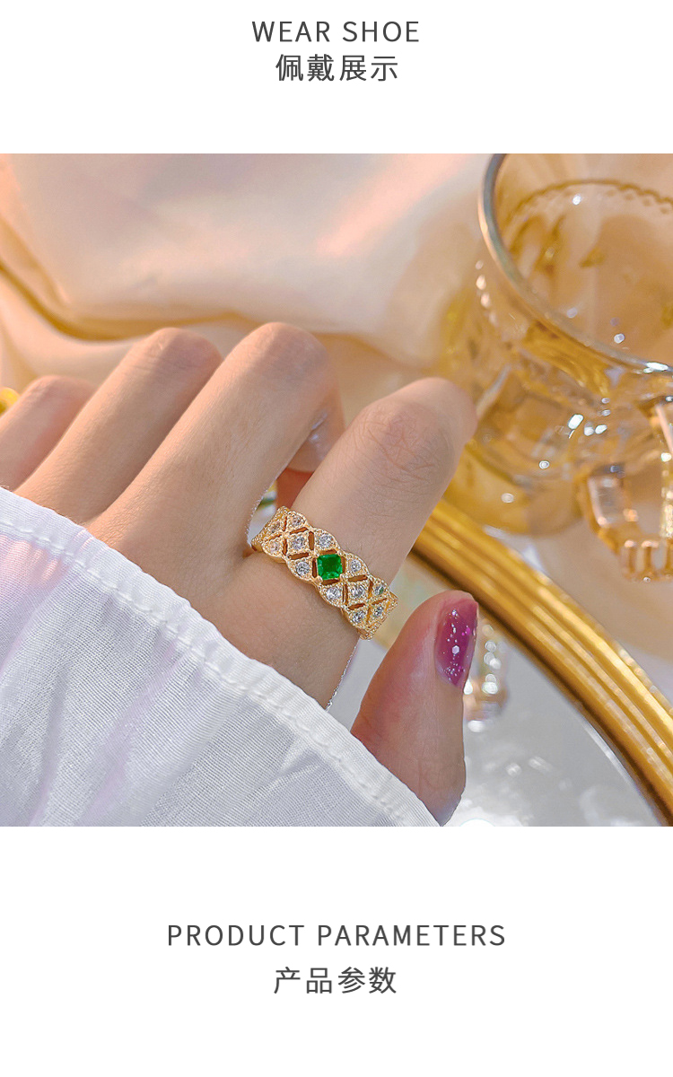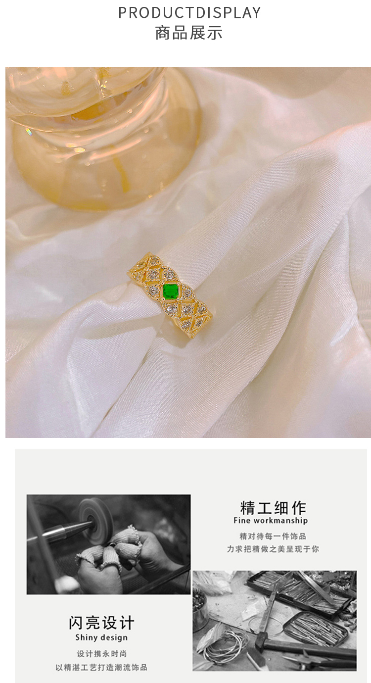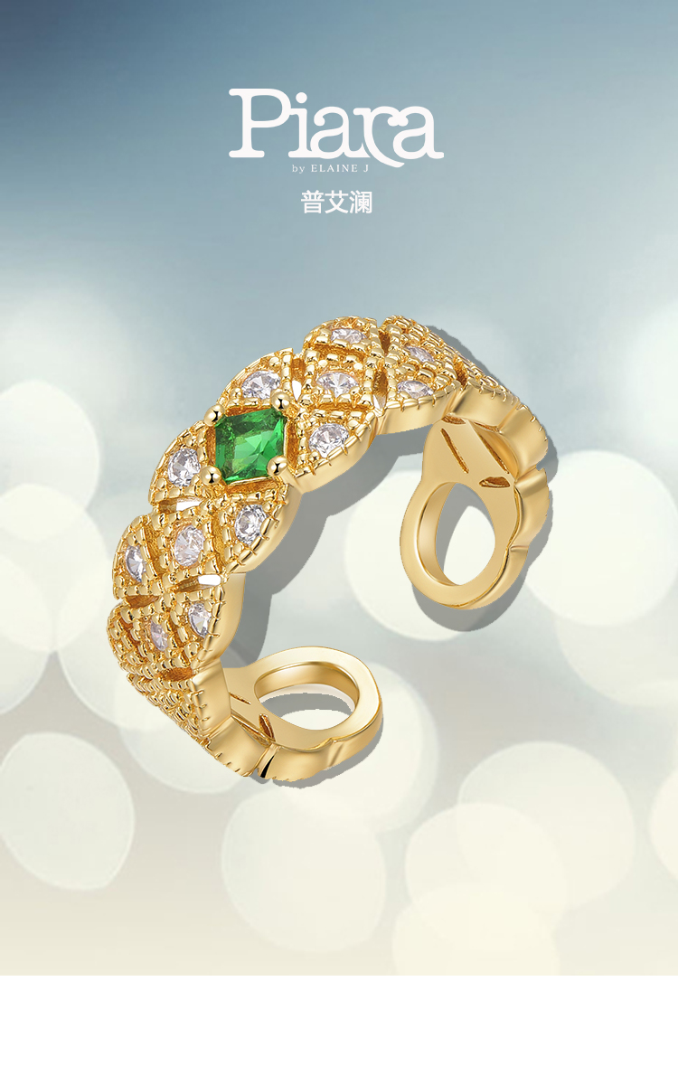 PIARA祖母绿宝石满镶戒指个性名媛气质个性时尚RAB0004