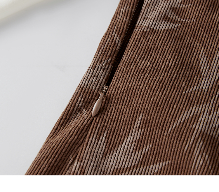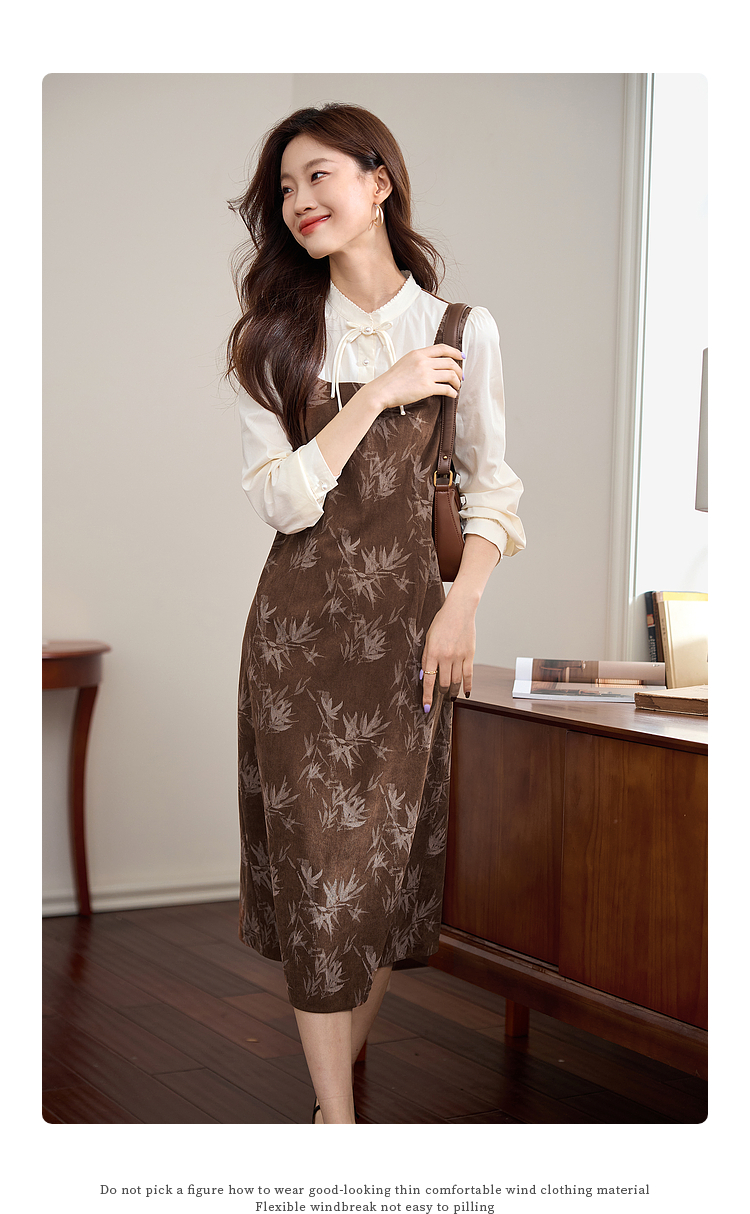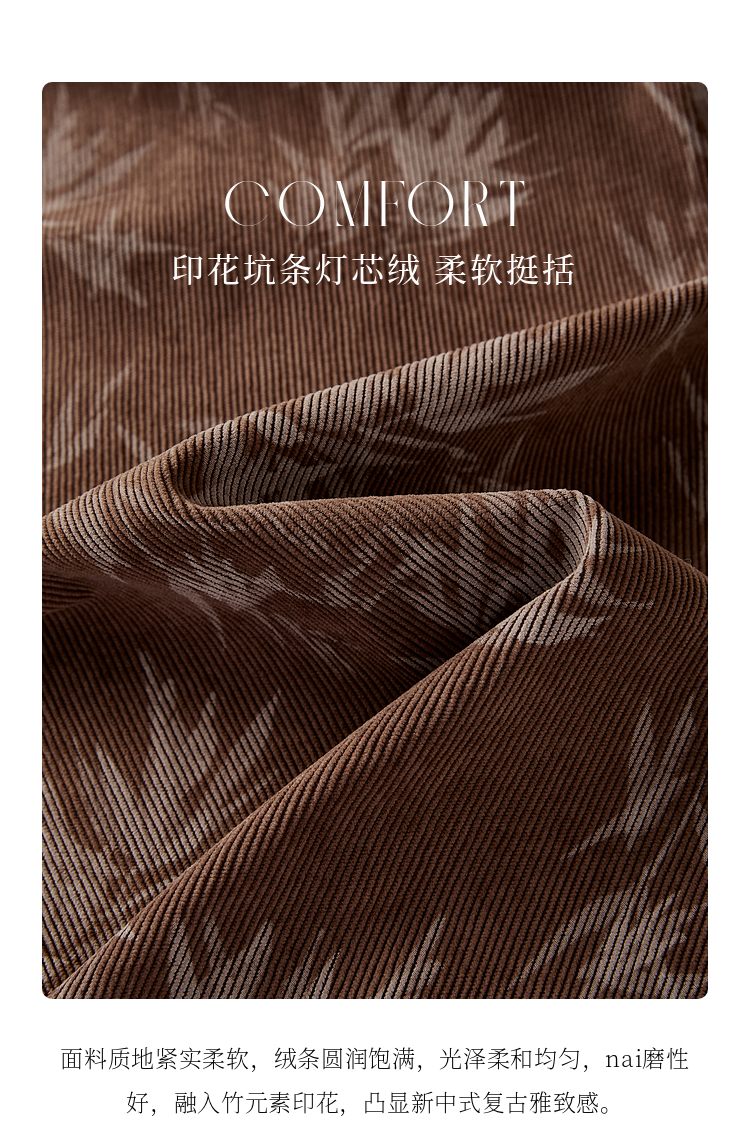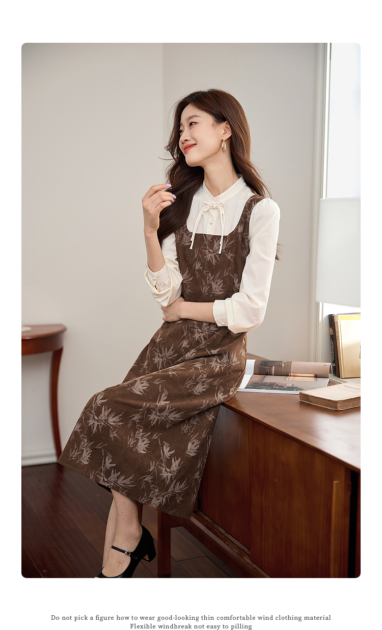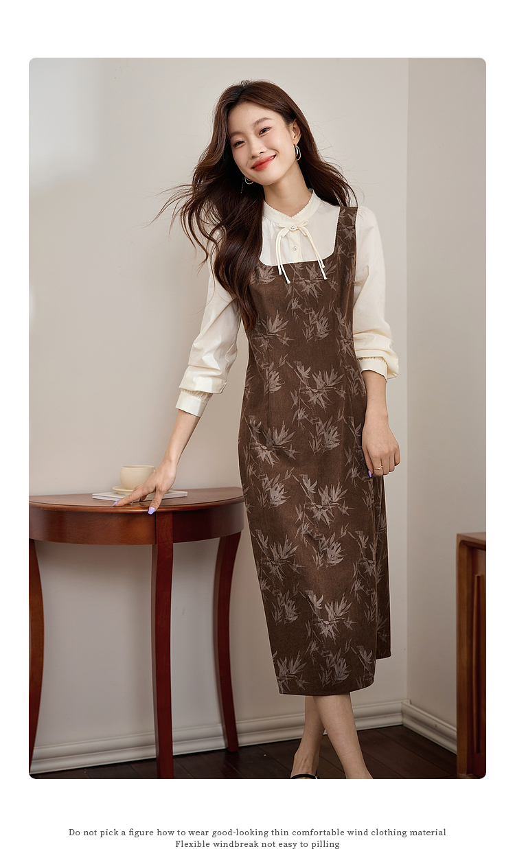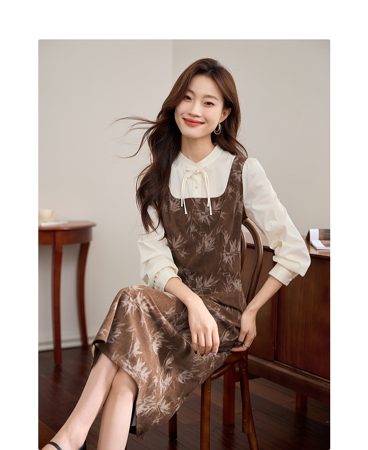 【五折购】熙世界新中式长袖拼接复古印花灯芯绒假两件连衣裙2025秋季新款