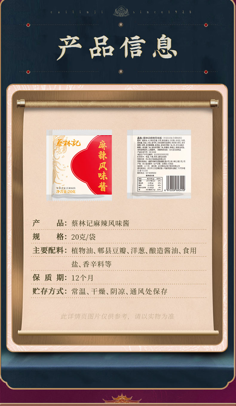 【69元任选15件】蔡林记麻辣风味酱20g*5包