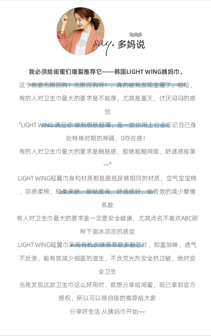 【拍10包109元】多妈自用-超薄瞬吸人称“吸血王”!韩国light wing轻翼无感姨妈巾 卫生巾-(杭州仓发)