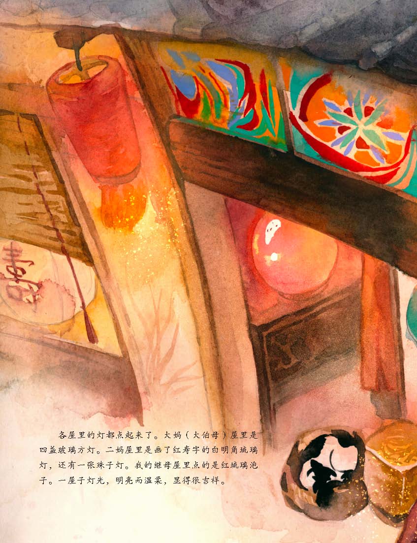 送麒麟、掷骰子,吹糖人、捏面人、点灯,看走马灯,看围屏,放高升……叙事虽多却不凌乱,详略得当,为我们营造出其乐融融的节日氛围,从中可以体会到浓郁的生活情趣和欢乐的气息,展现了乡间的自然与纯美。