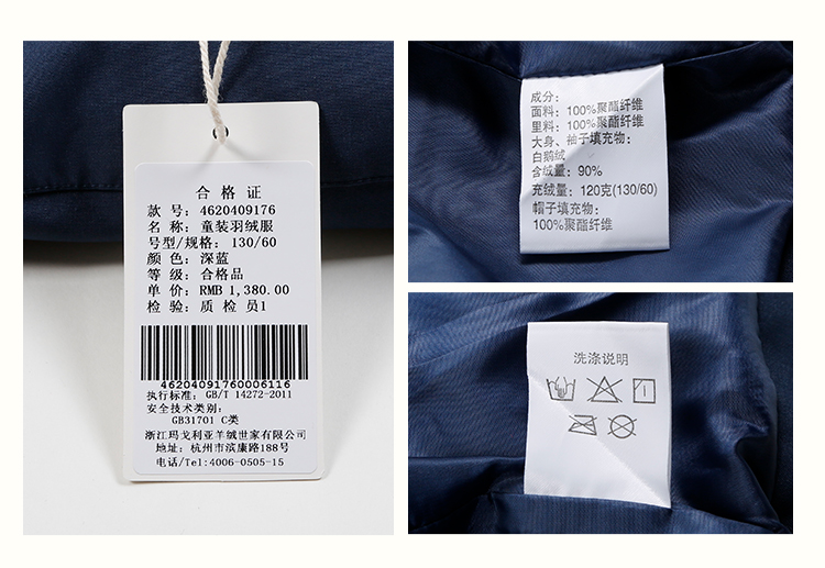 | 含绒量: 90% | 材质成分: 聚酯纤维100% |