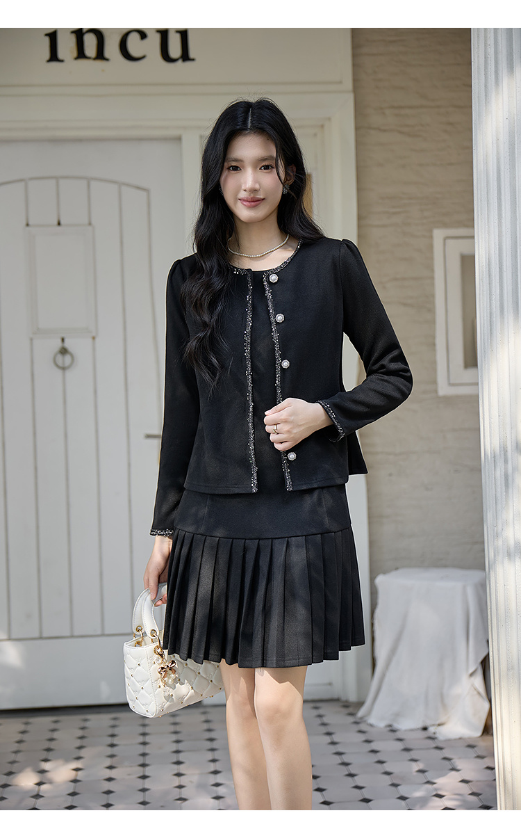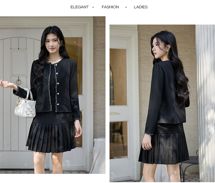 奢姿大码女装2025冬季胖妹妹时尚小香风外套气质百褶设计半裙套装9954994384