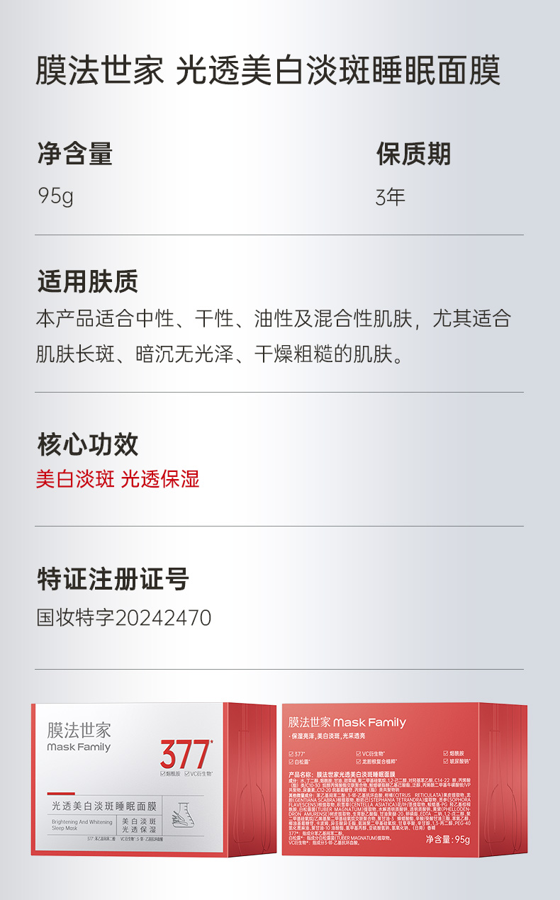 【买一送一|¥79/2瓶】膜法世家光透美白淡斑睡眠面膜95g*2盒