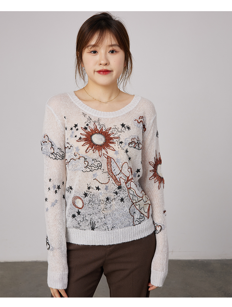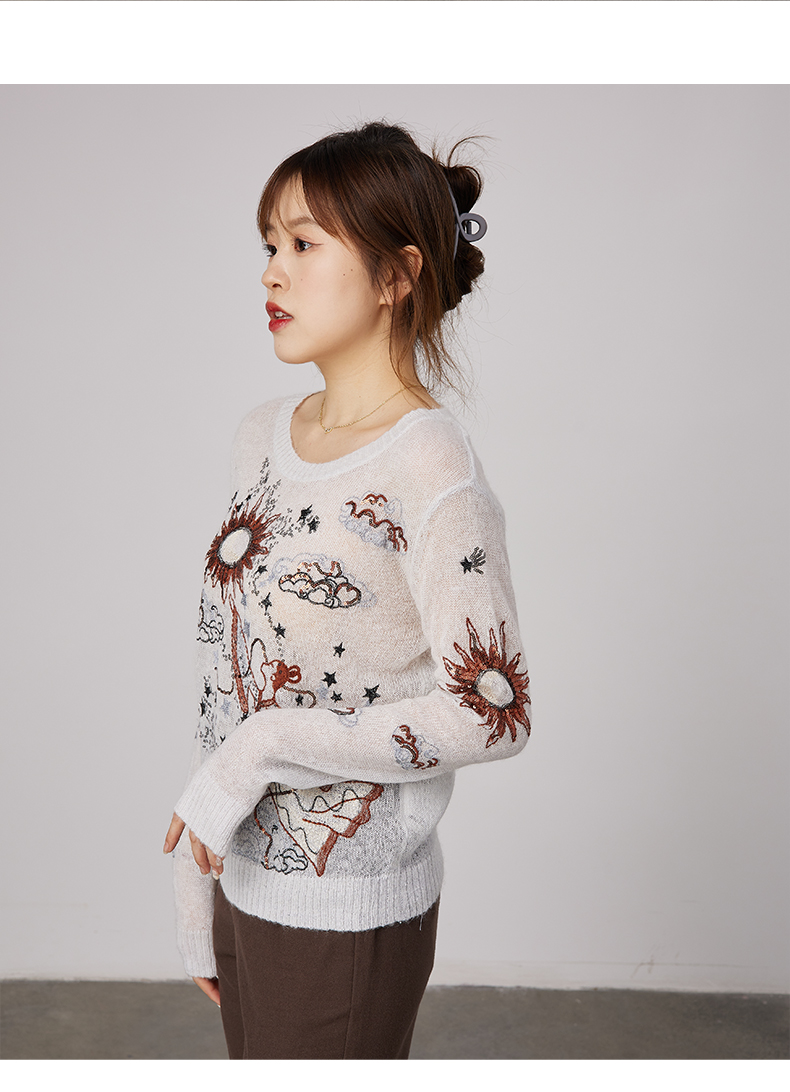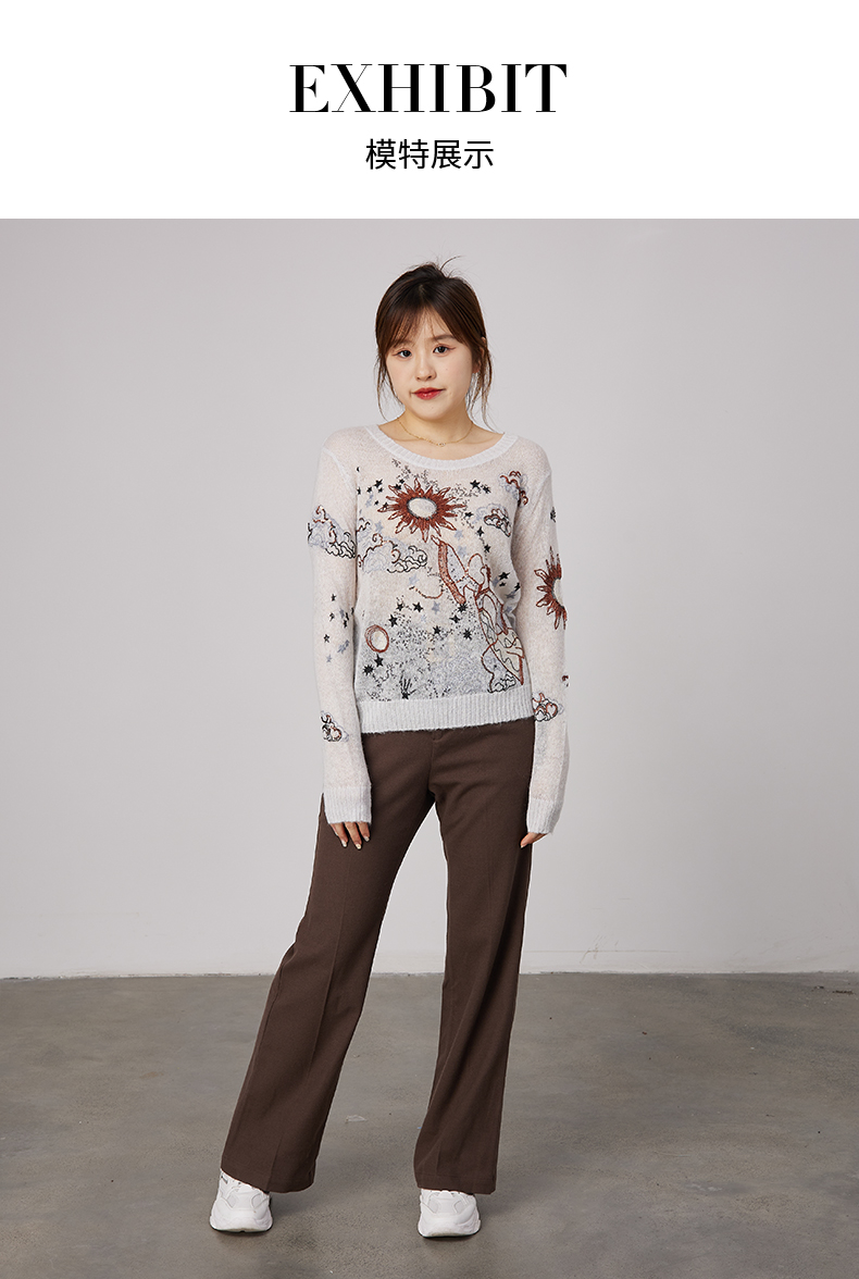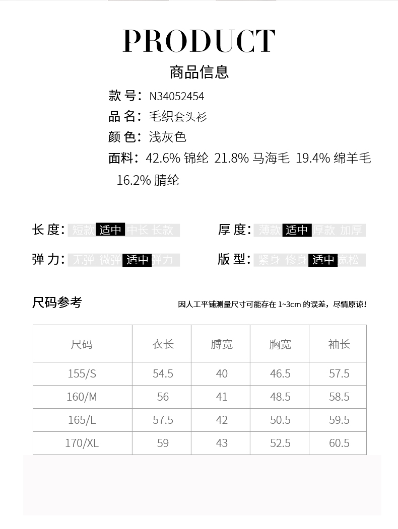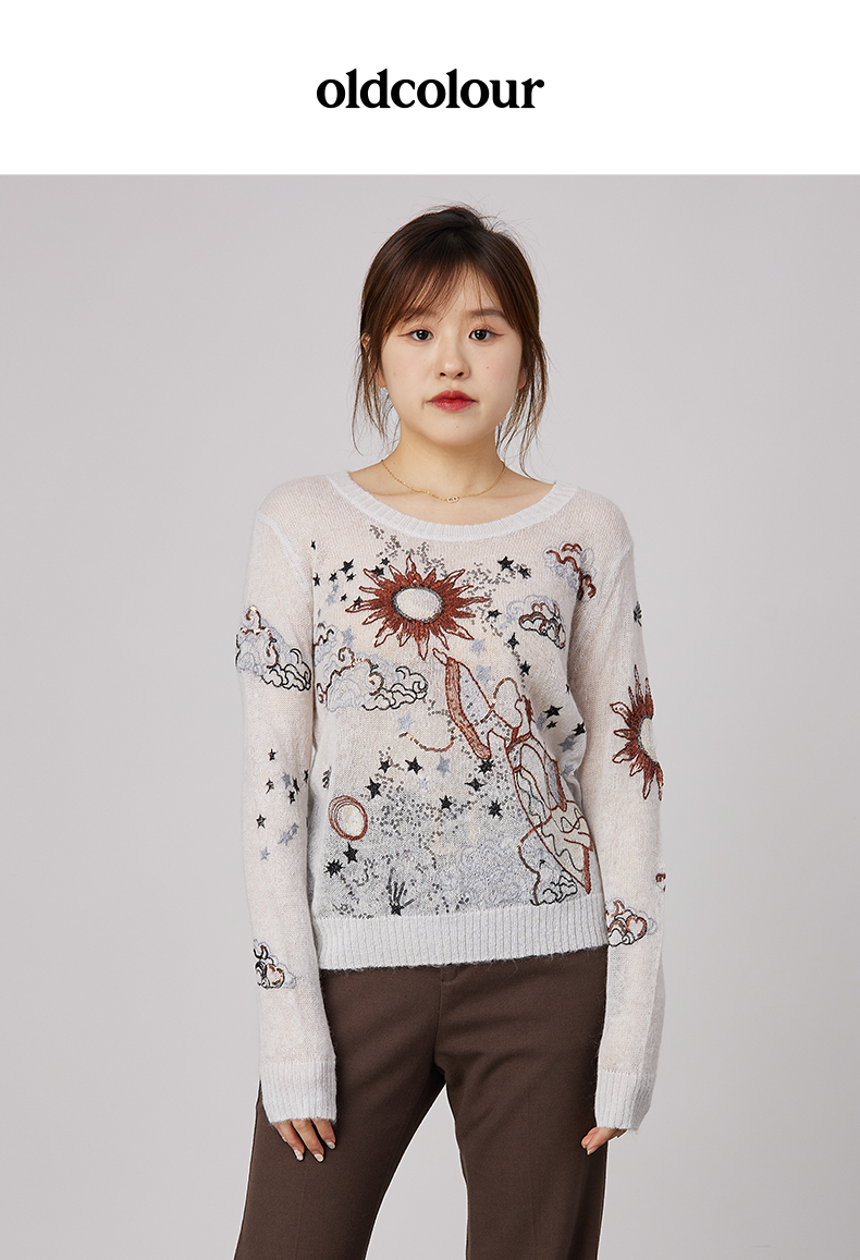 oldcolour2021秋商场同款圆领长袖气质针织套头衫女通勤N34052454