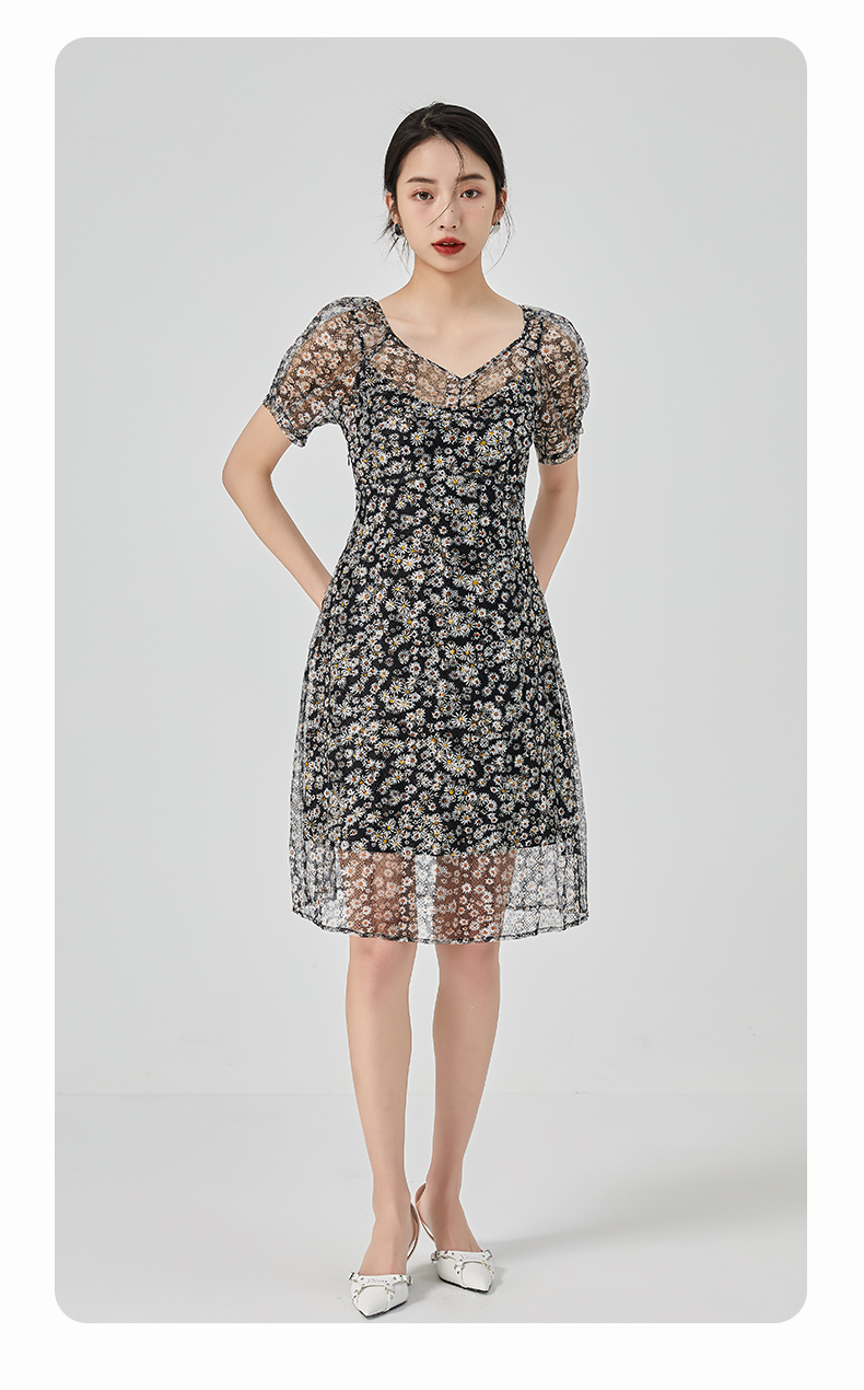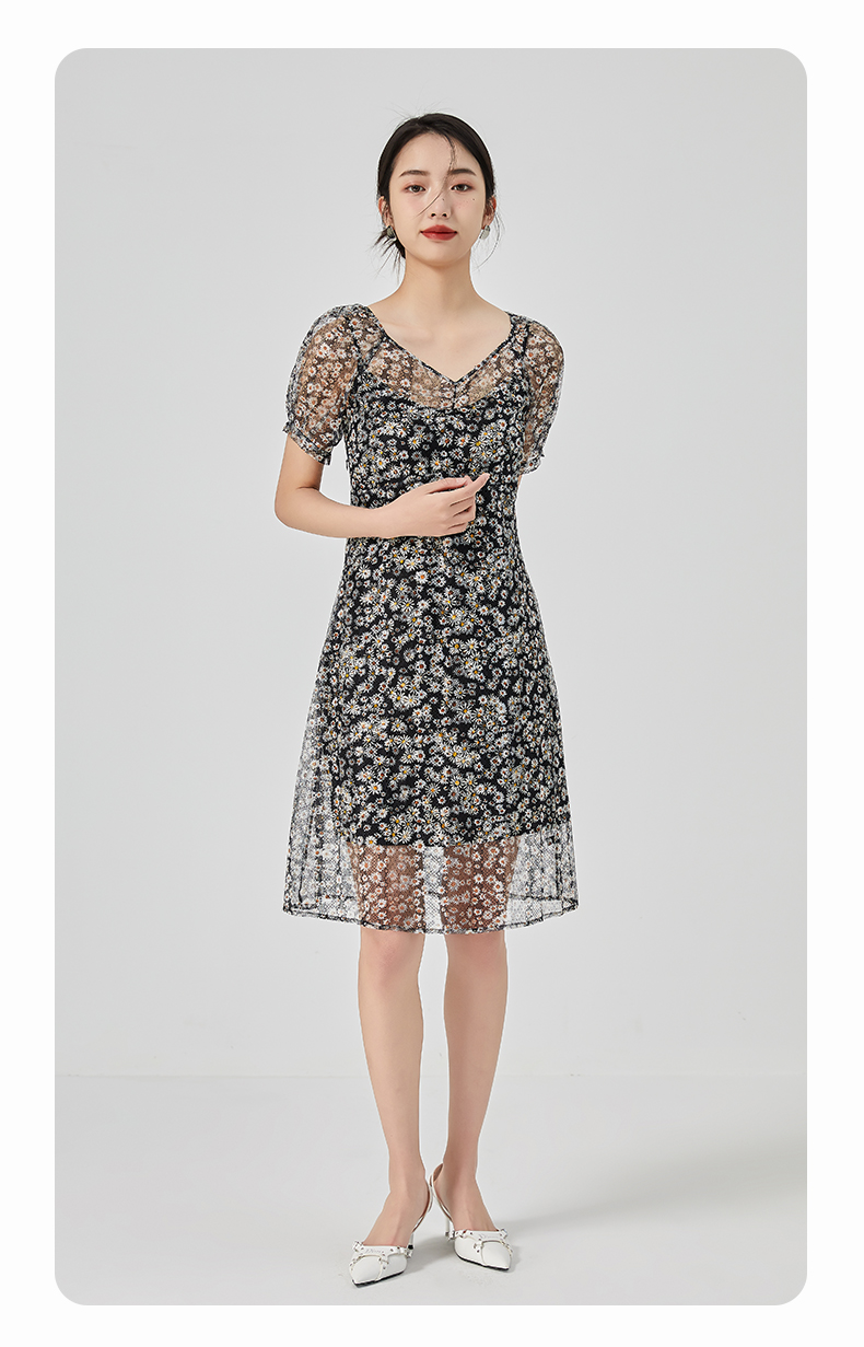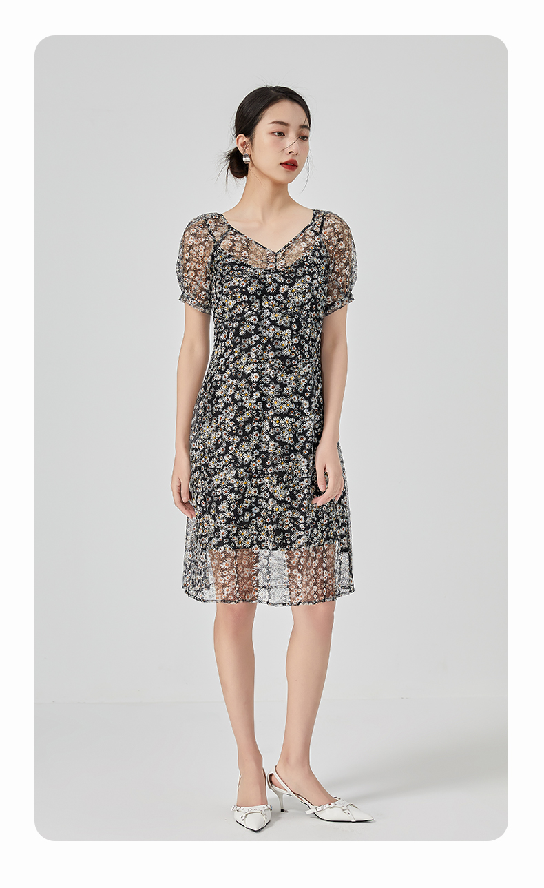 oldcolour2023夏季新款气质蕾丝吊带碎花连衣裙两件套GN21101726
