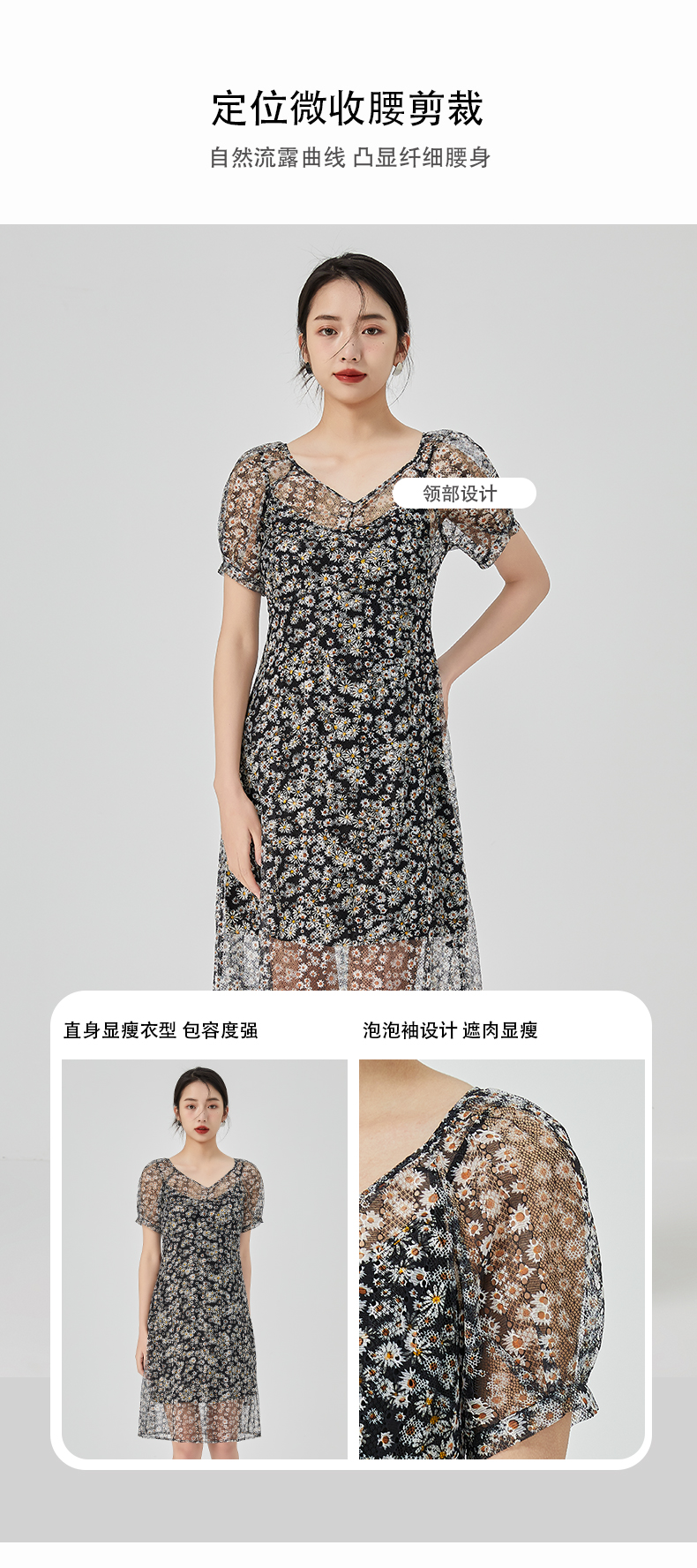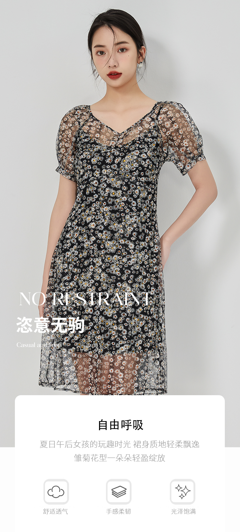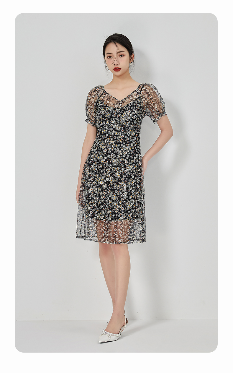 oldcolour2023夏季新款气质蕾丝吊带碎花连衣裙两件套GN21101726