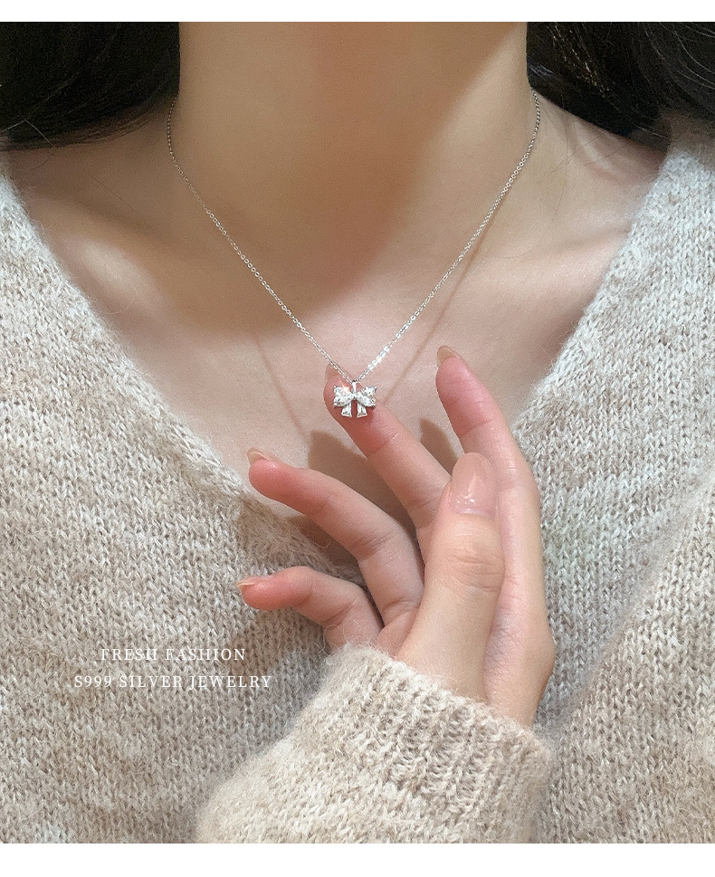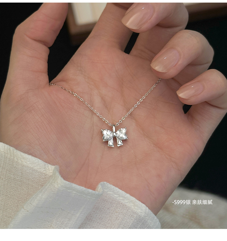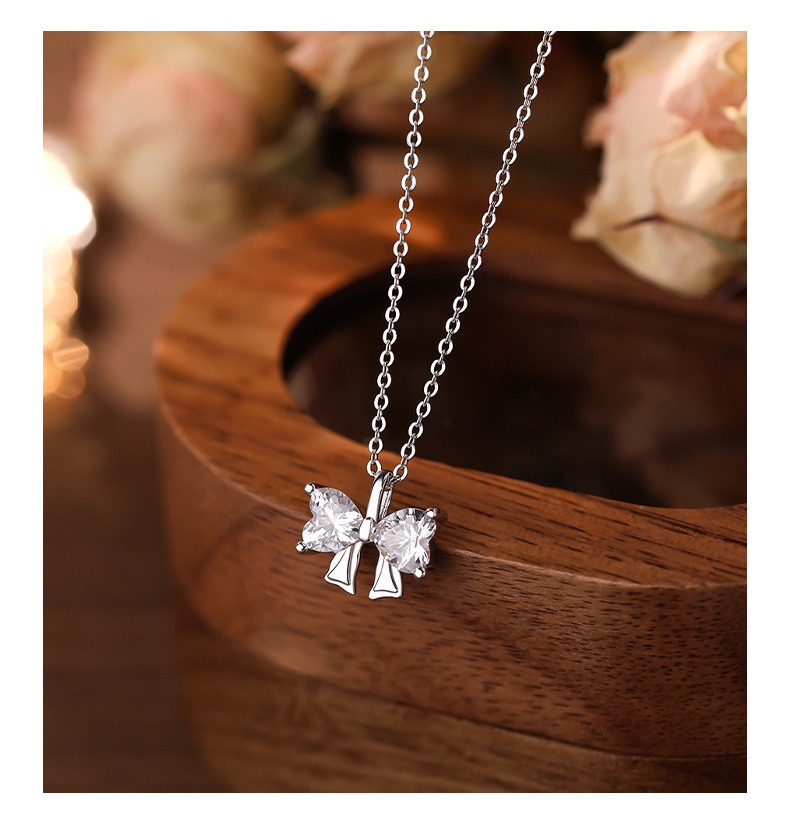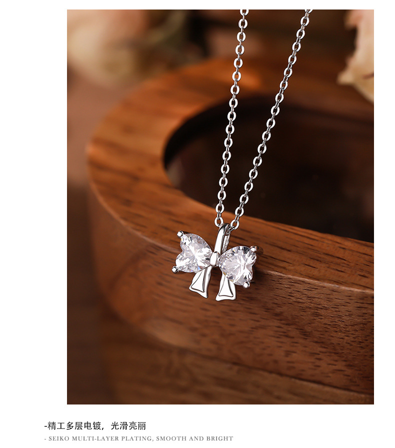【眷恋蝴蝶】S999纯银爱心锆石蝴蝶结项链【YXS-A4792】