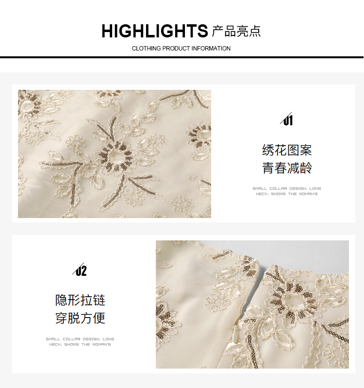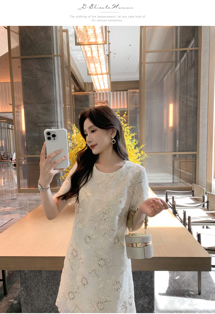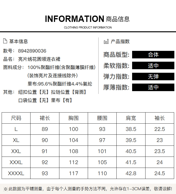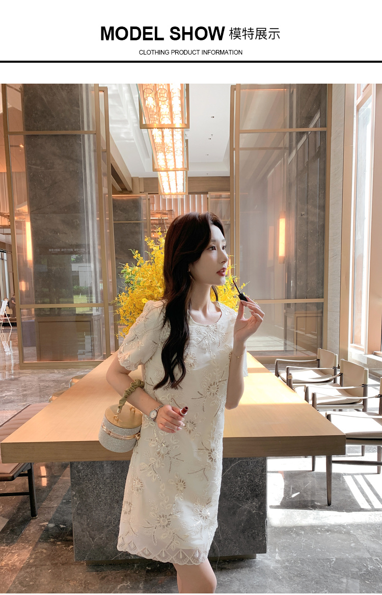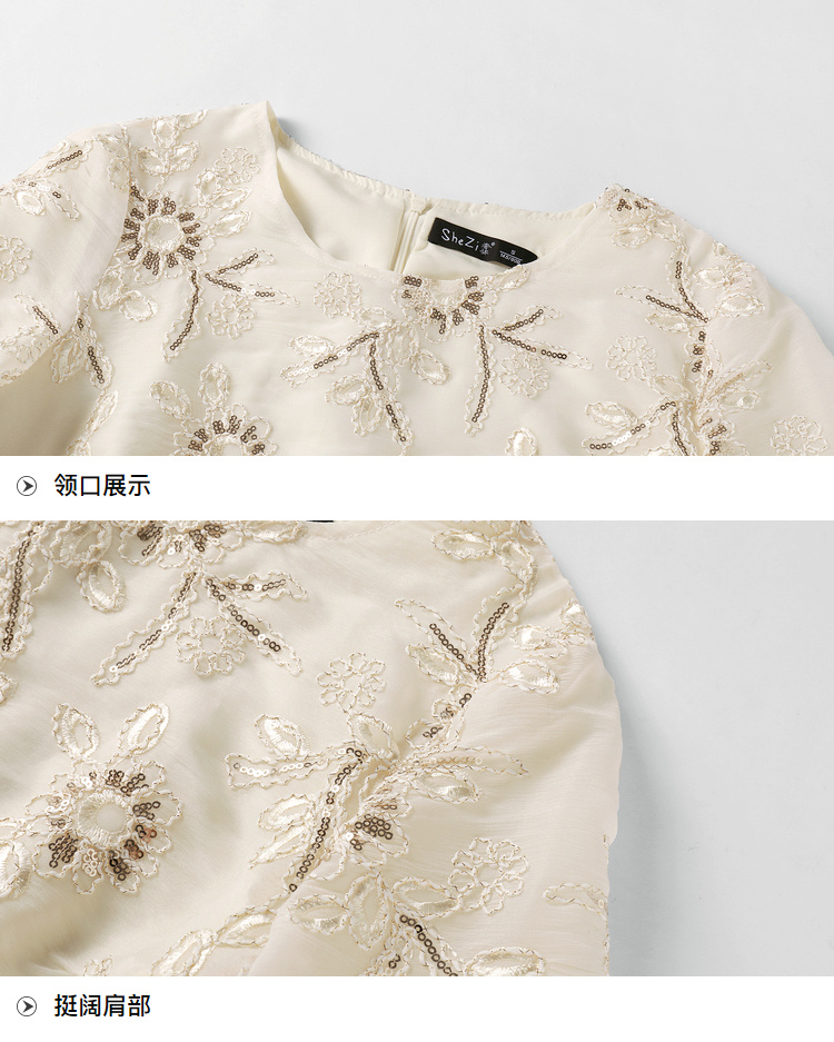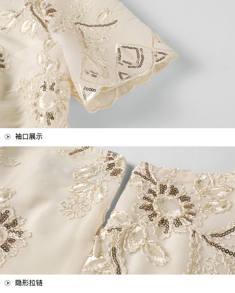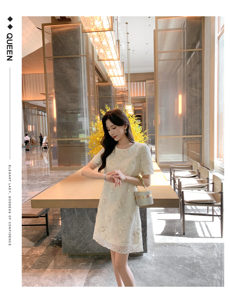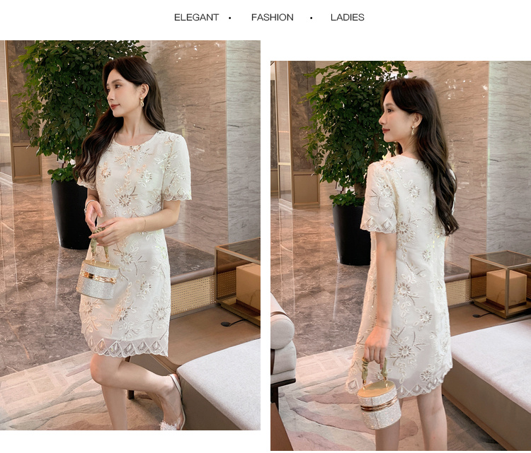 [奢姿轻奢系列]亮片绣花连衣裙大码女装夏季新款胖妹妹圆领裙子8942890036