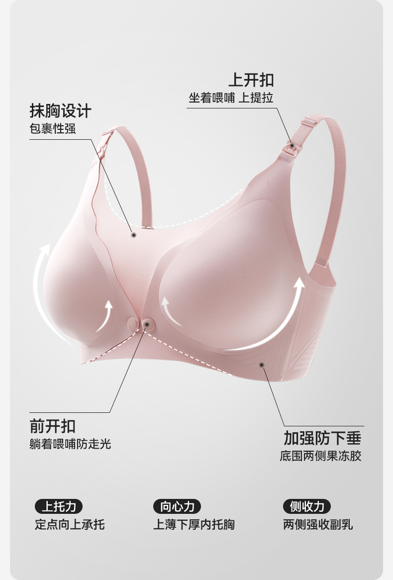 孕妇前开扣抗菌内衣无痕聚拢防下垂月子期哺乳文胸