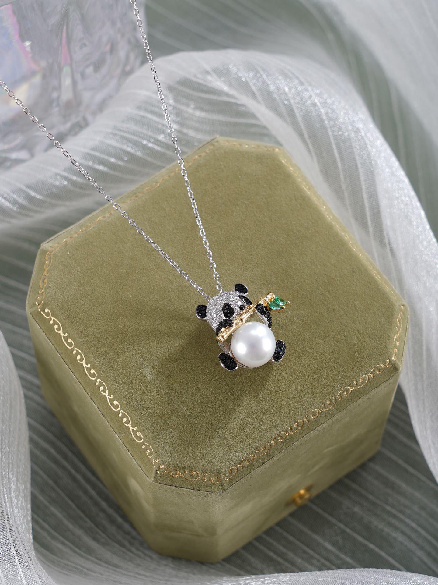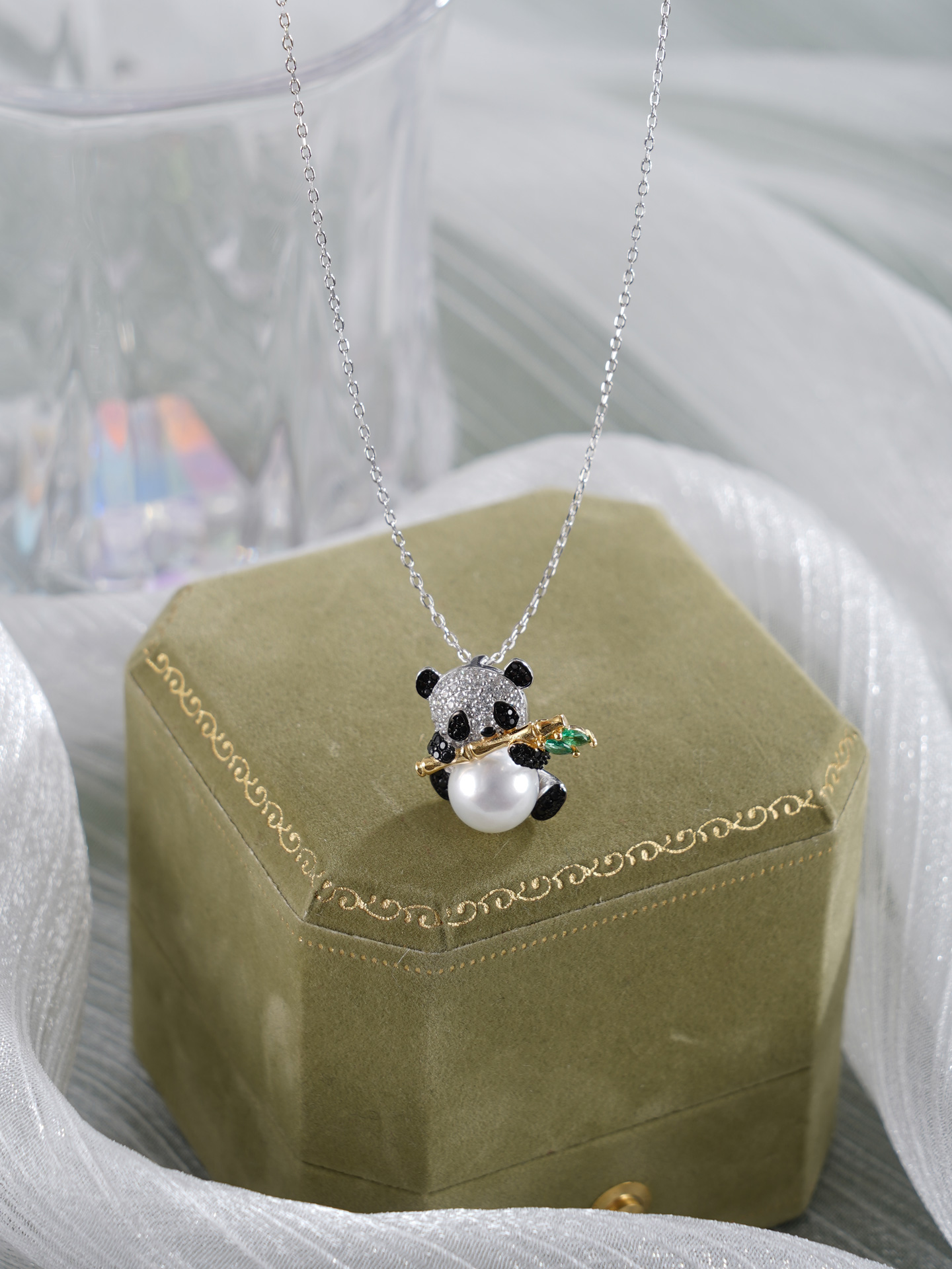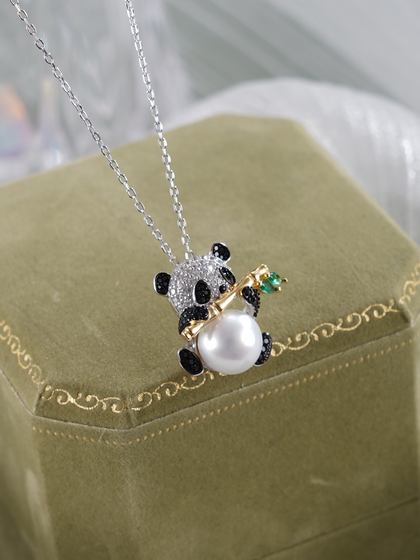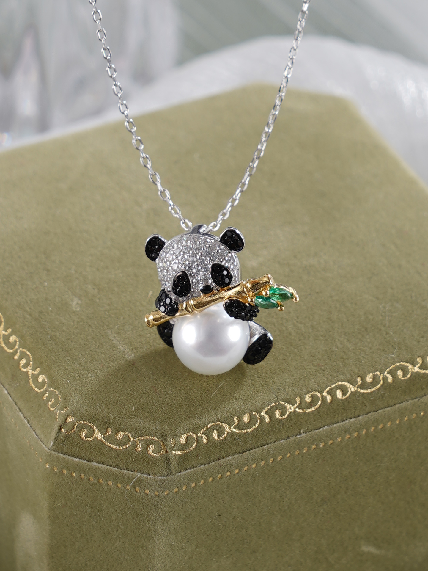 子佩集【翠竹国宝】银S925珍珠惜王妃套链【MLTL024】8mm珠熊猫镀金竹子2601