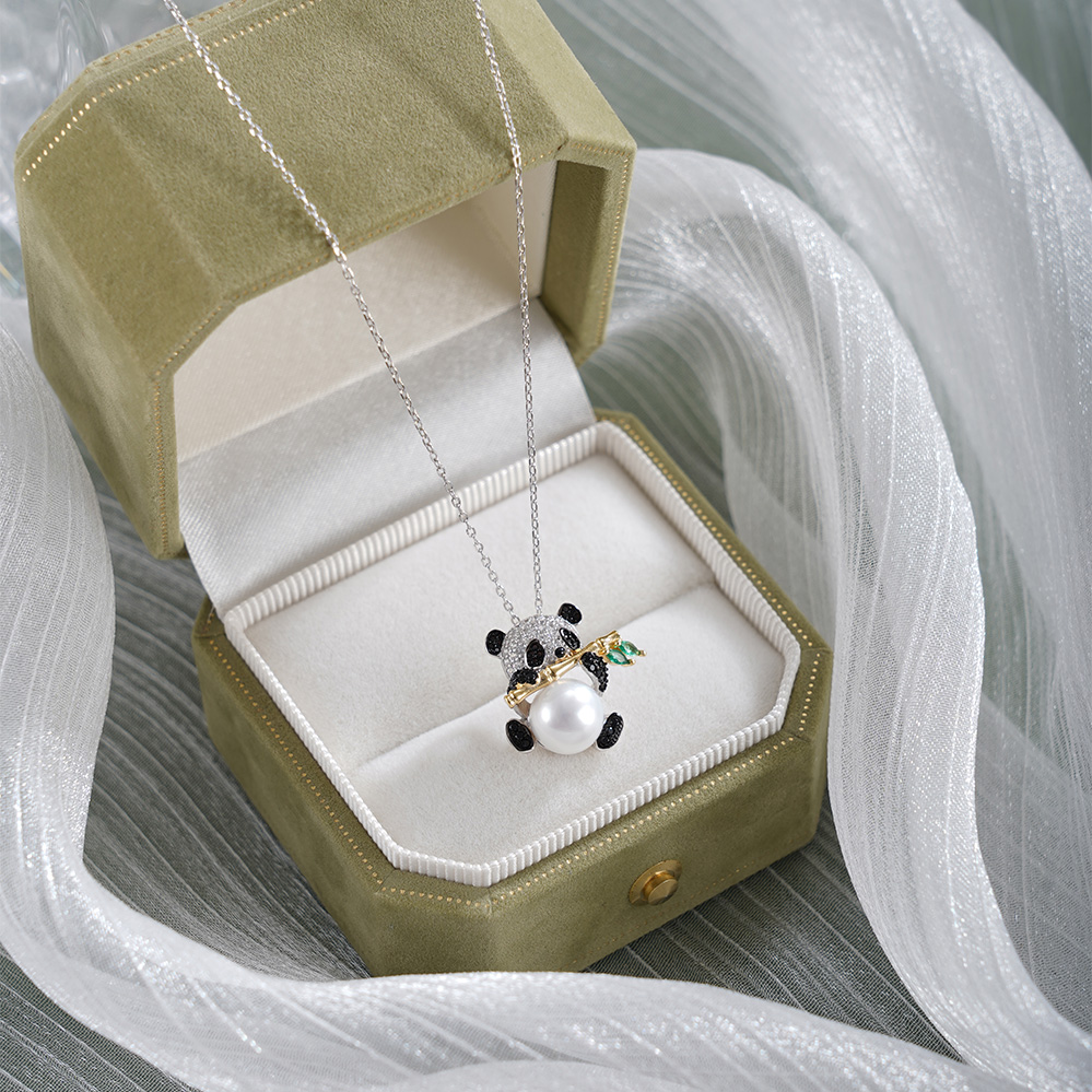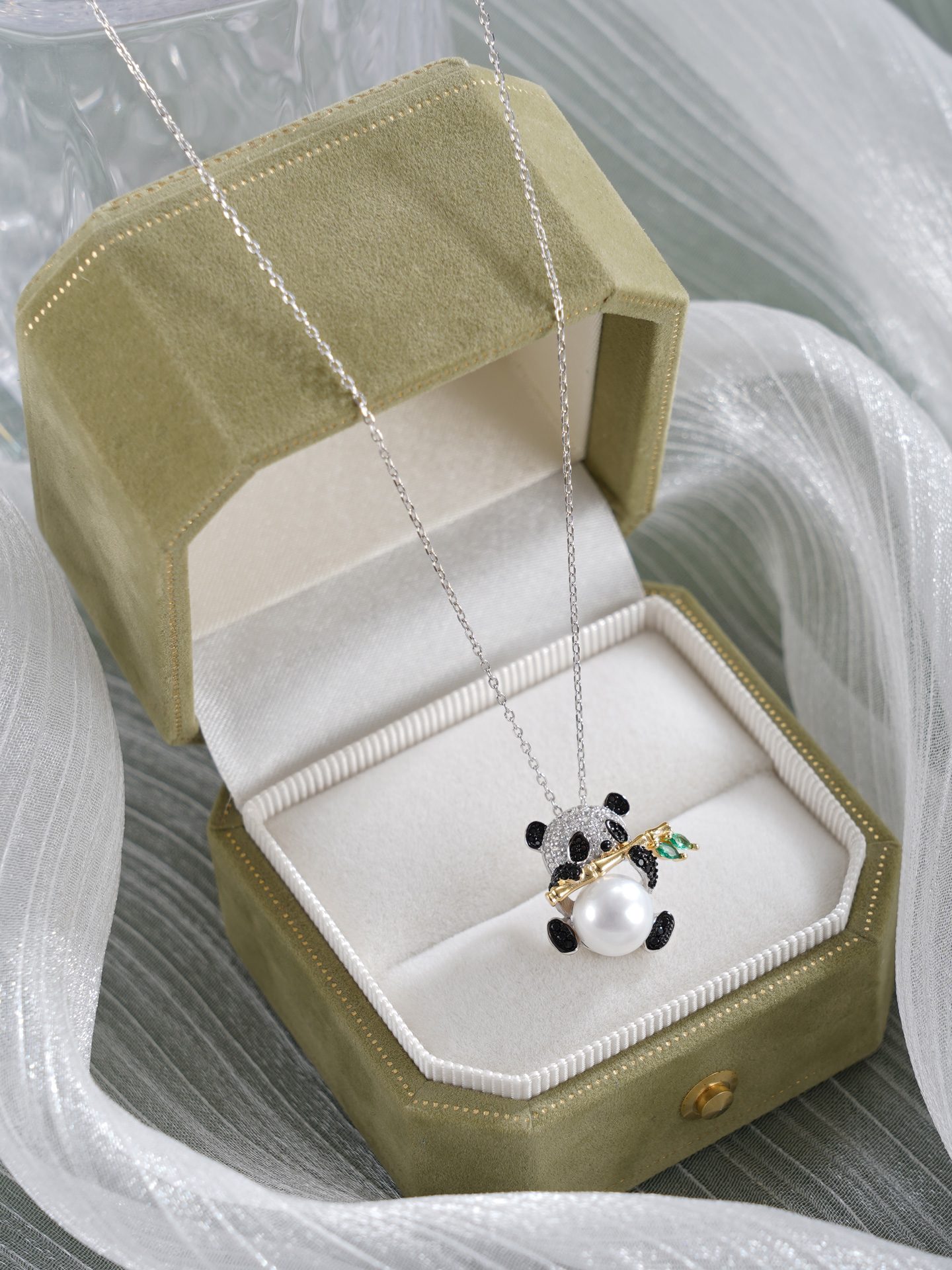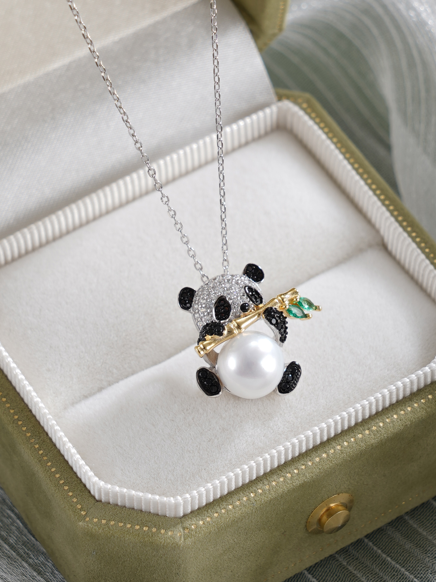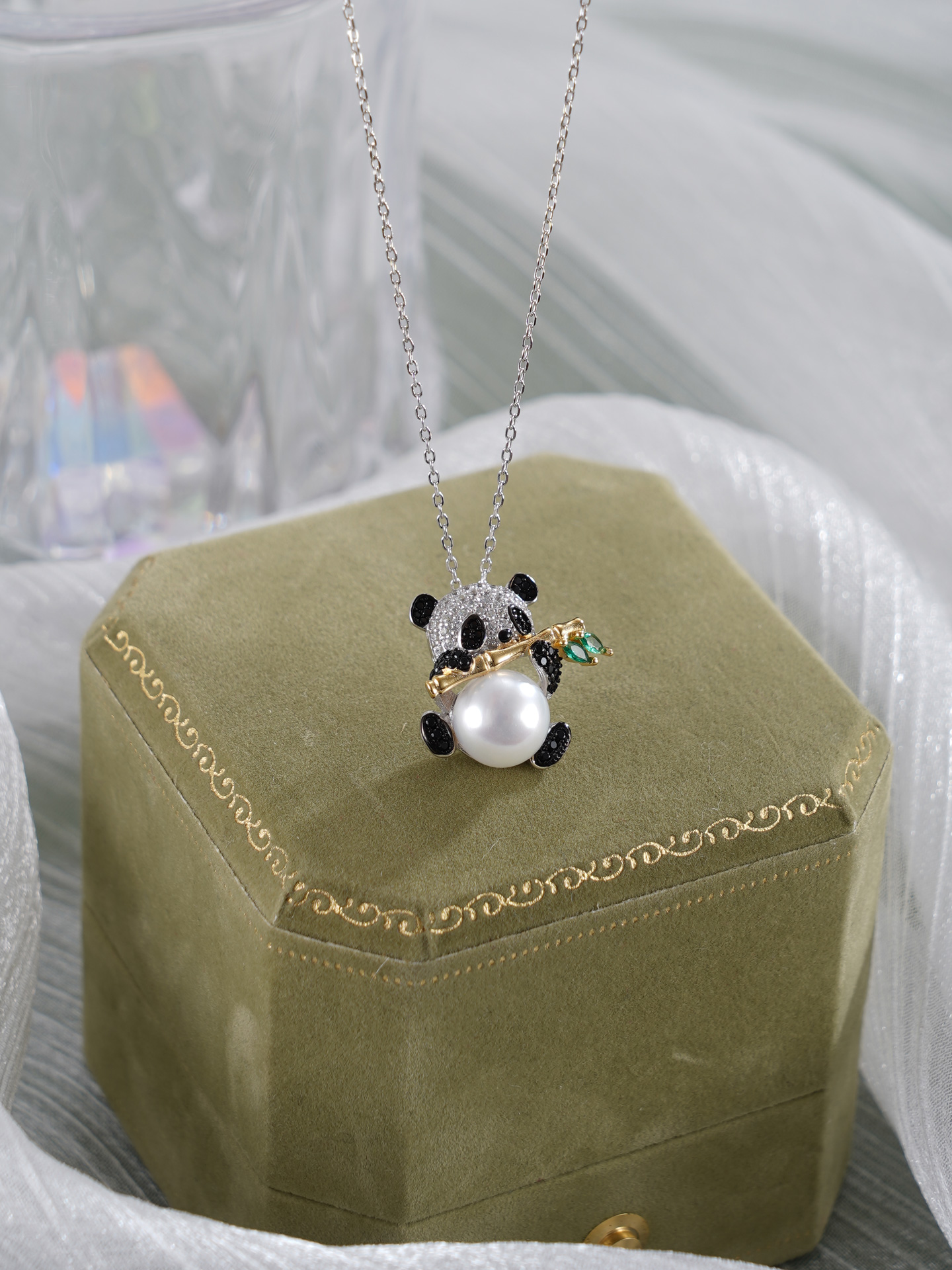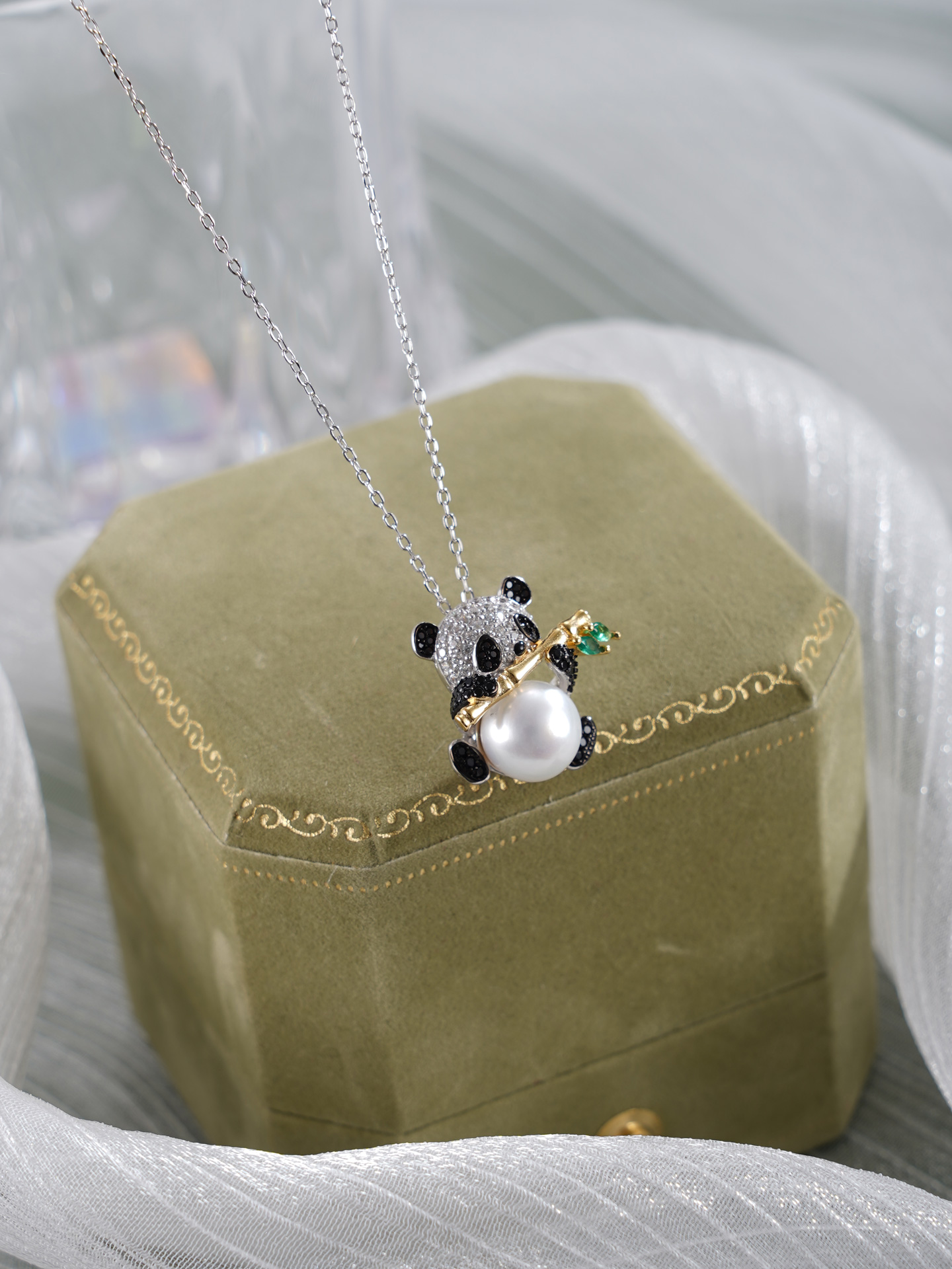 子佩集【翠竹国宝】银S925珍珠惜王妃套链【MLTL024】8mm珠熊猫镀金竹子2601