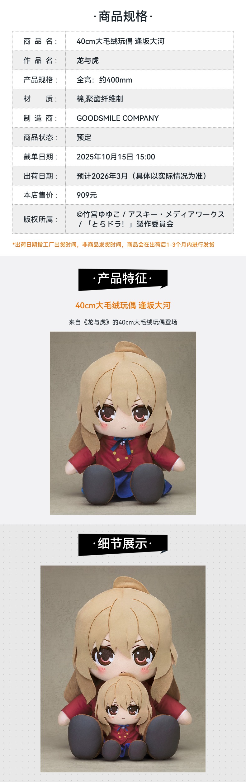 【GSC预售定金】40cm大毛绒玩偶 逢坂大河 龙与虎
