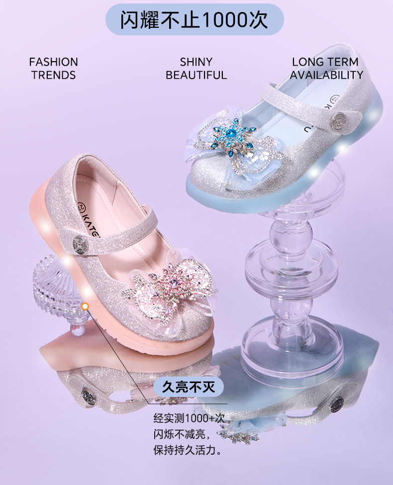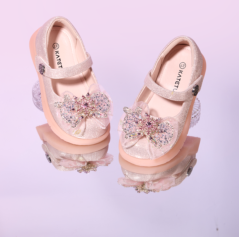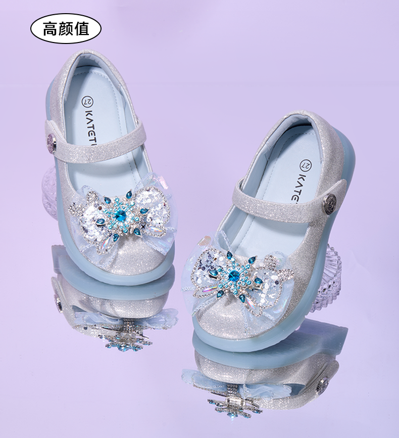 卡特兔女童水晶公主鞋2025秋季新品软底防滑亮灯鞋小女孩洋气单鞋