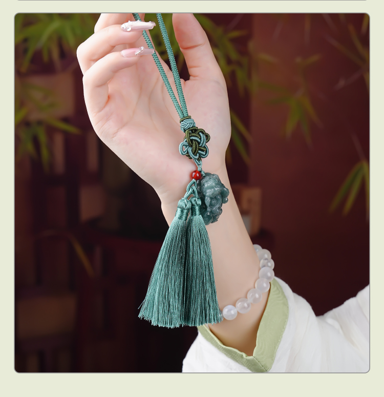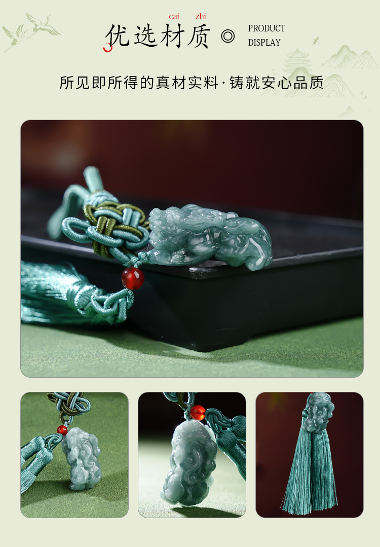 翡翠貔貅吊坠天然A货流苏挂件包挂钥匙扣装饰品