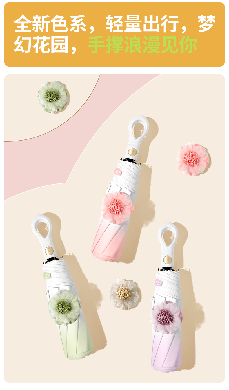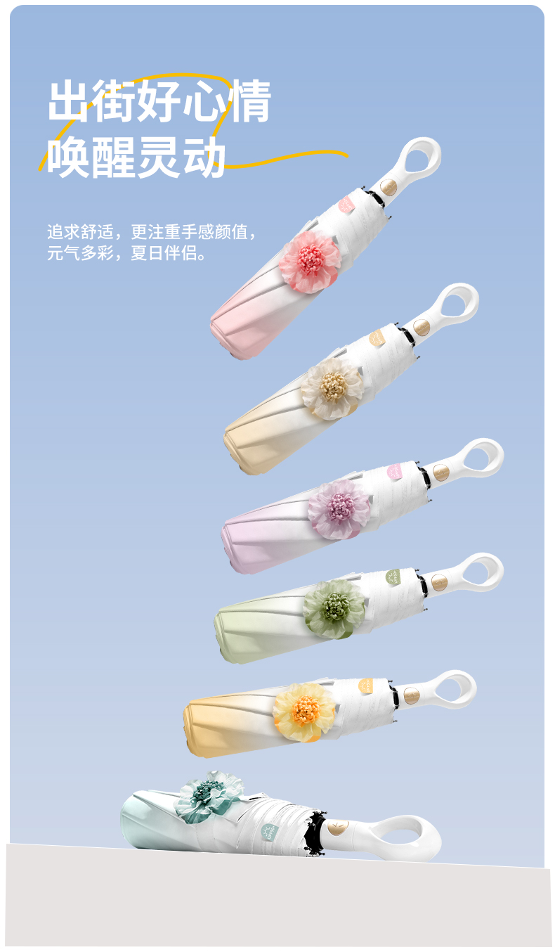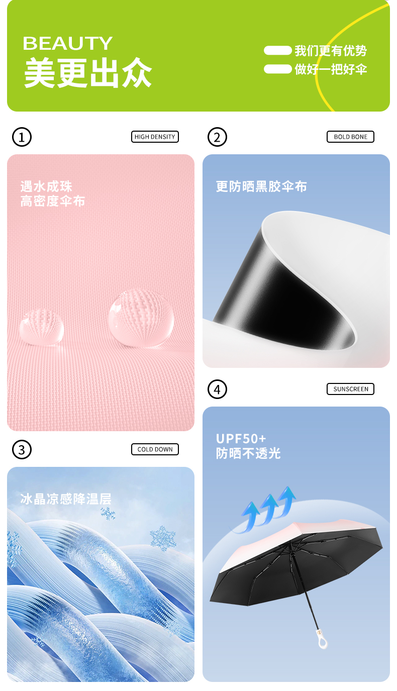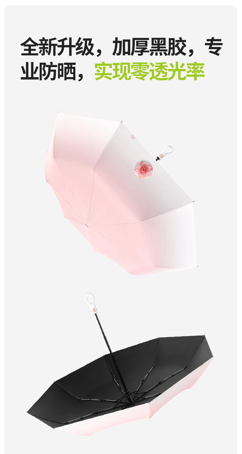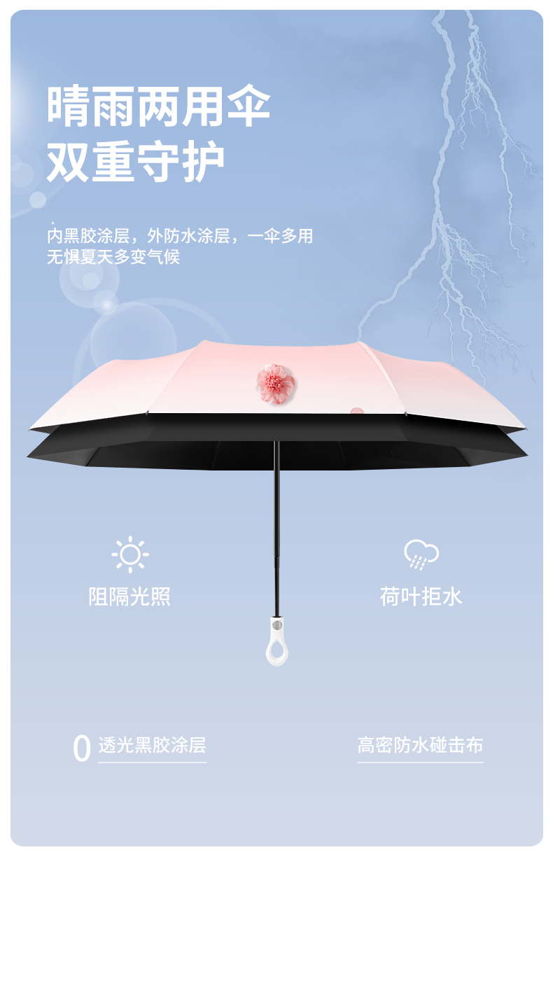 【分销】花觉16骨晴雨两用防晒伞,遇水成珠 高密度伞布,UPF50+ ,黑胶伞布 冰晶凉感降温层