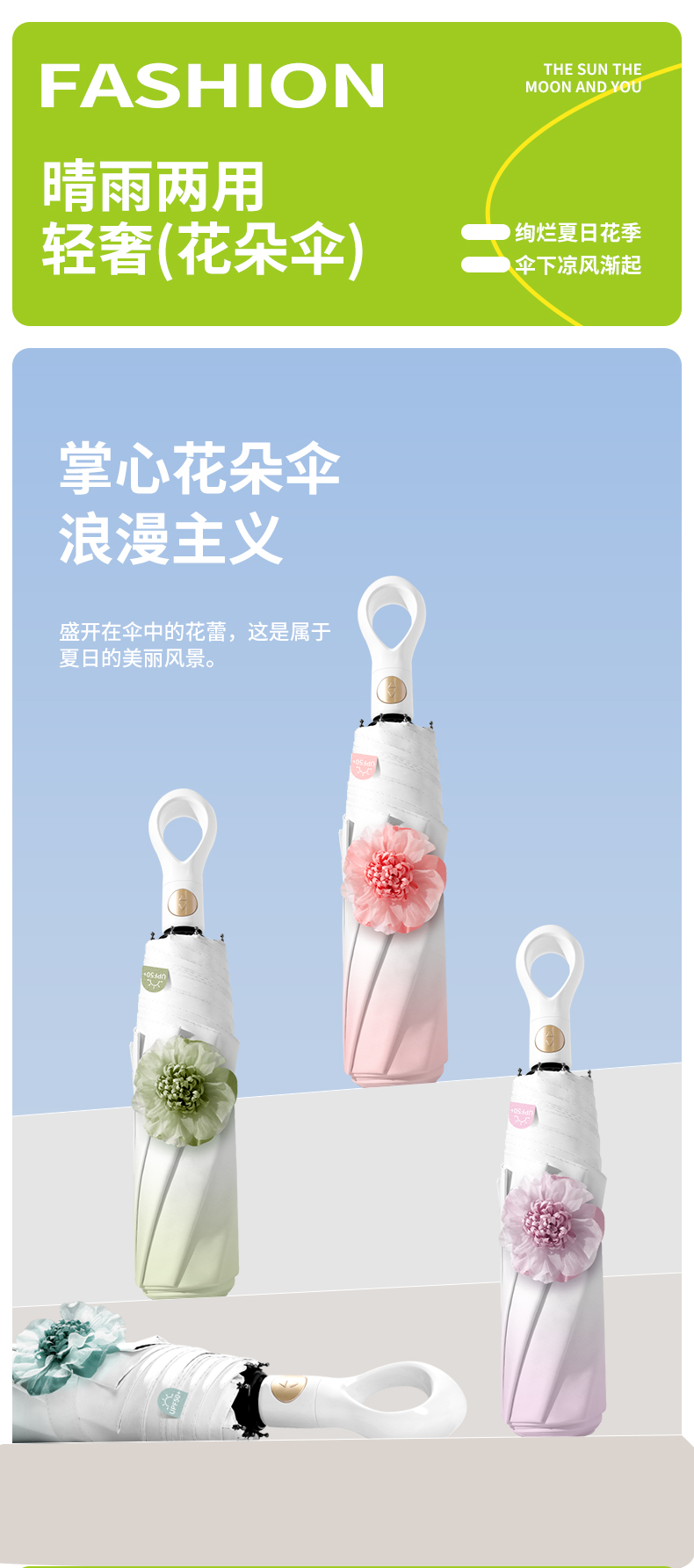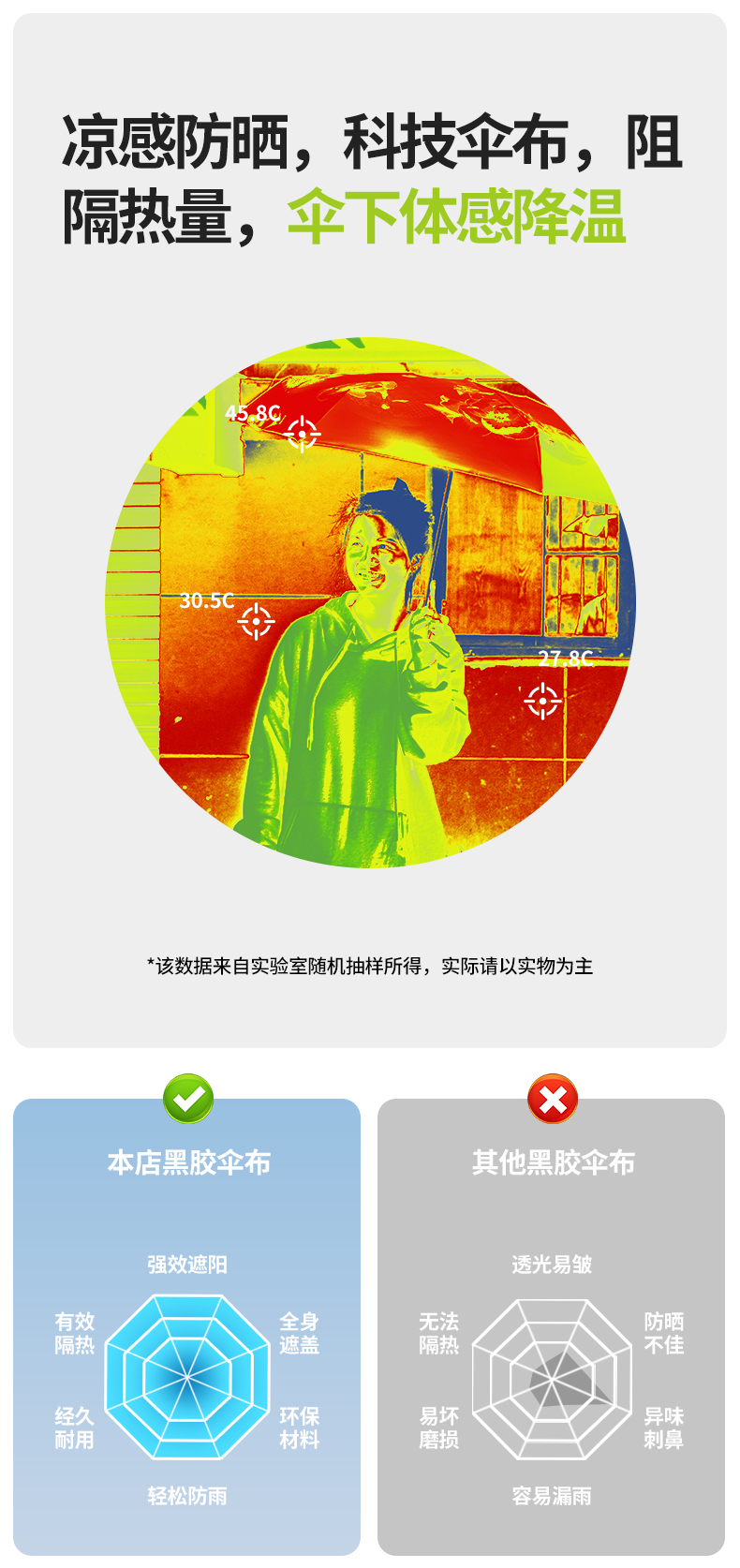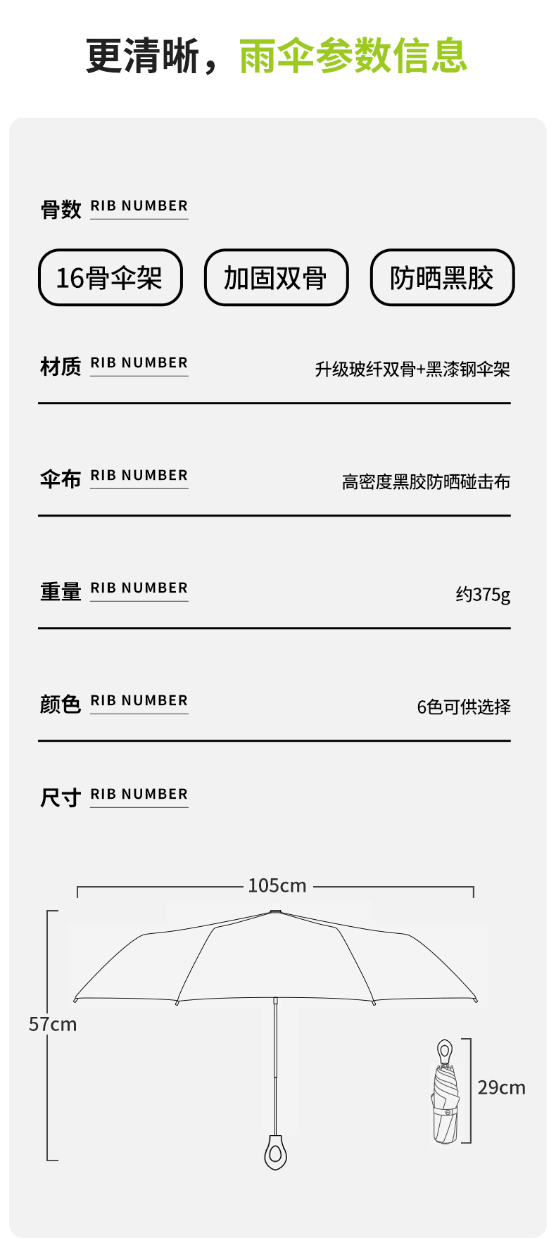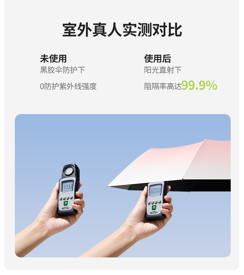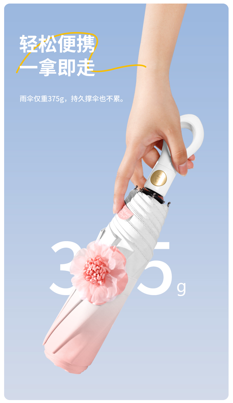 【分销】花觉16骨晴雨两用防晒伞,遇水成珠 高密度伞布,UPF50+ ,黑胶伞布 冰晶凉感降温层