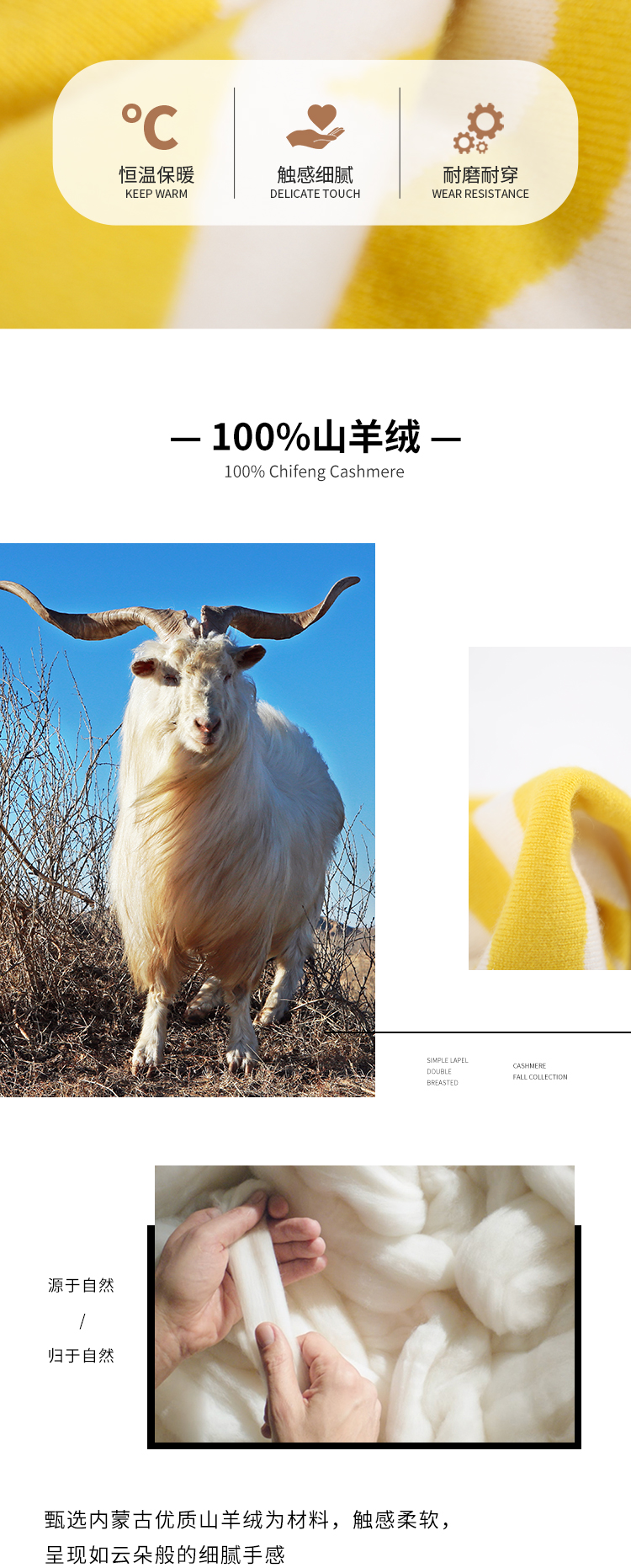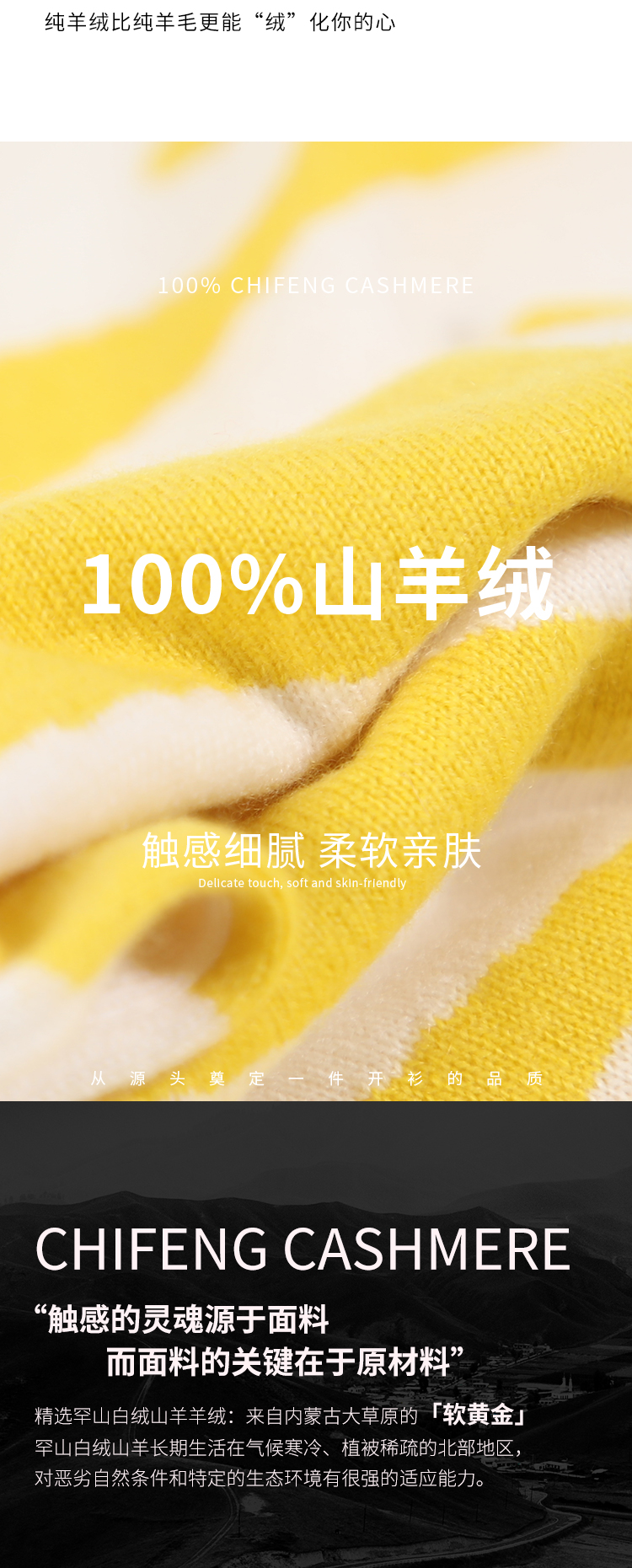 东黎羊绒是赤峰东荣集团自主品牌,自有牧场/羊绒制品全产业链优势,实现了羊绒从“牧场”到“商场”的华丽转变。