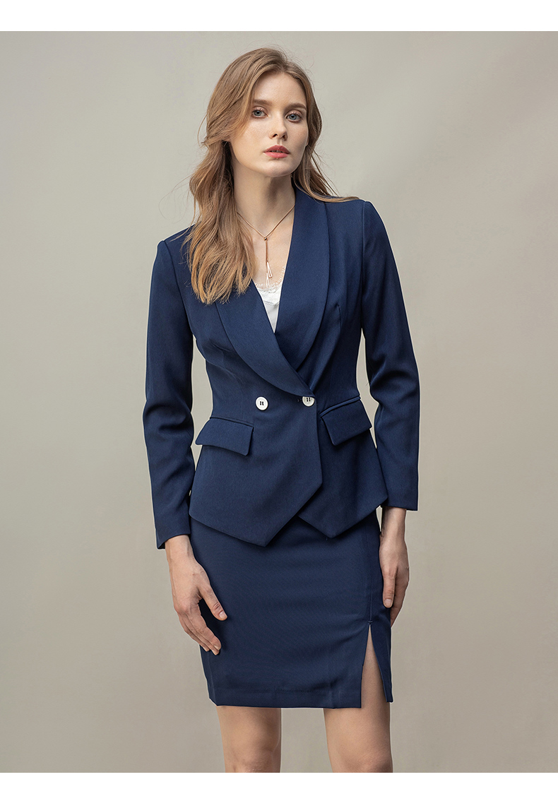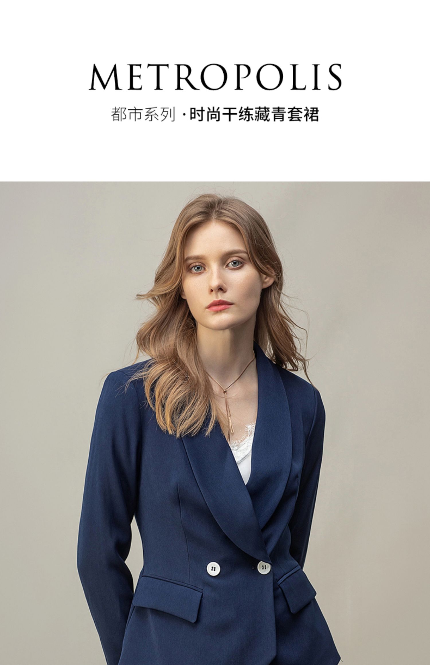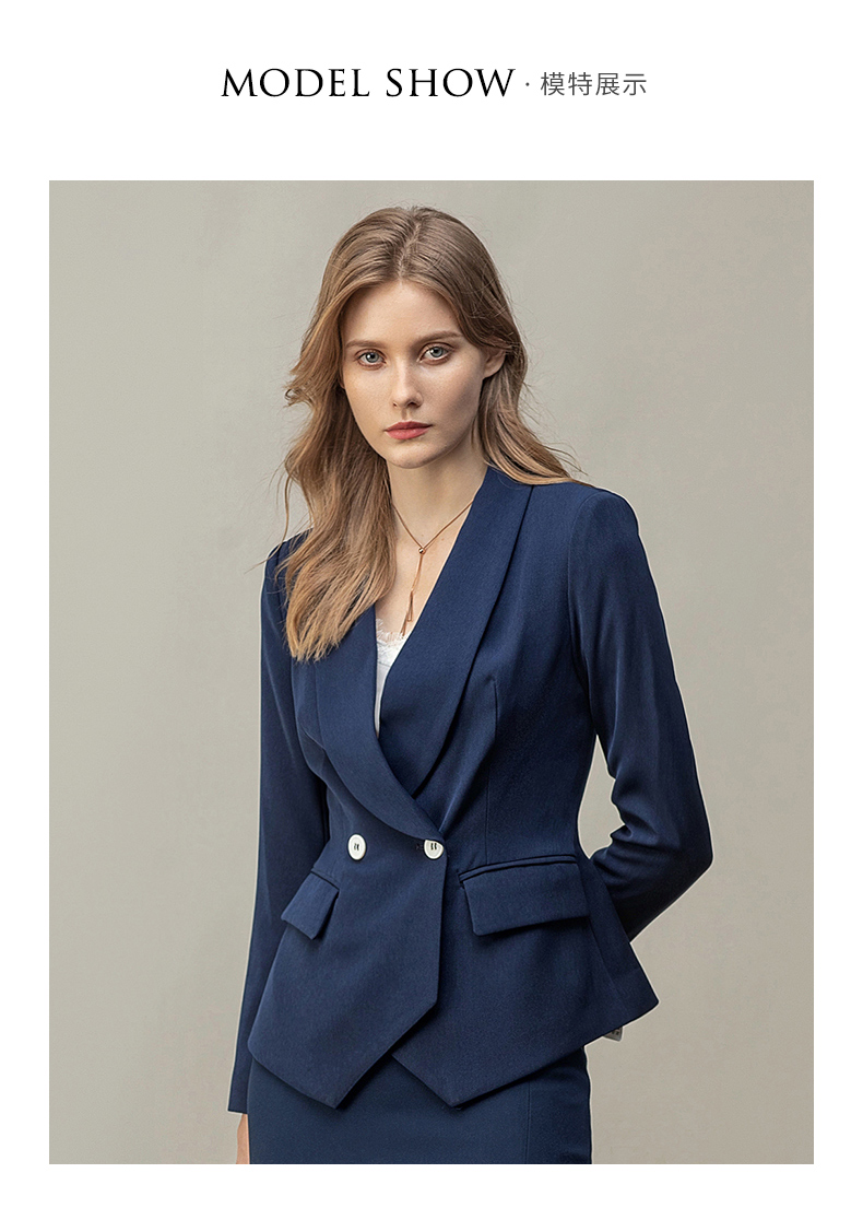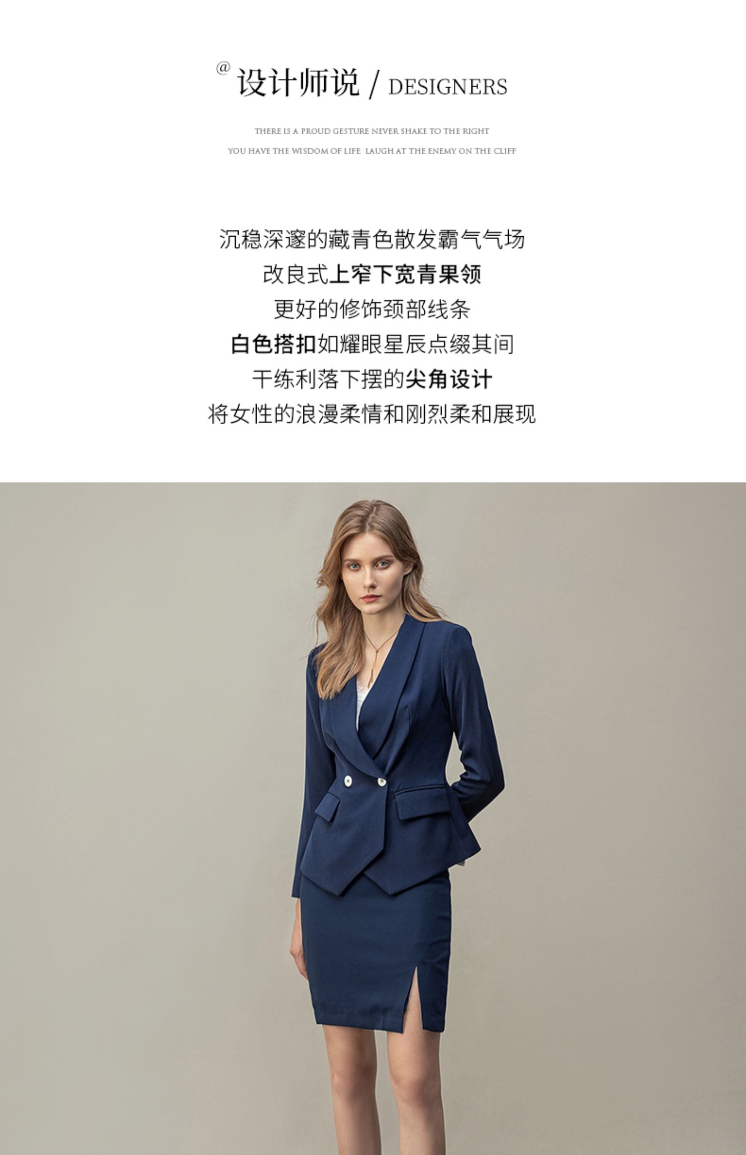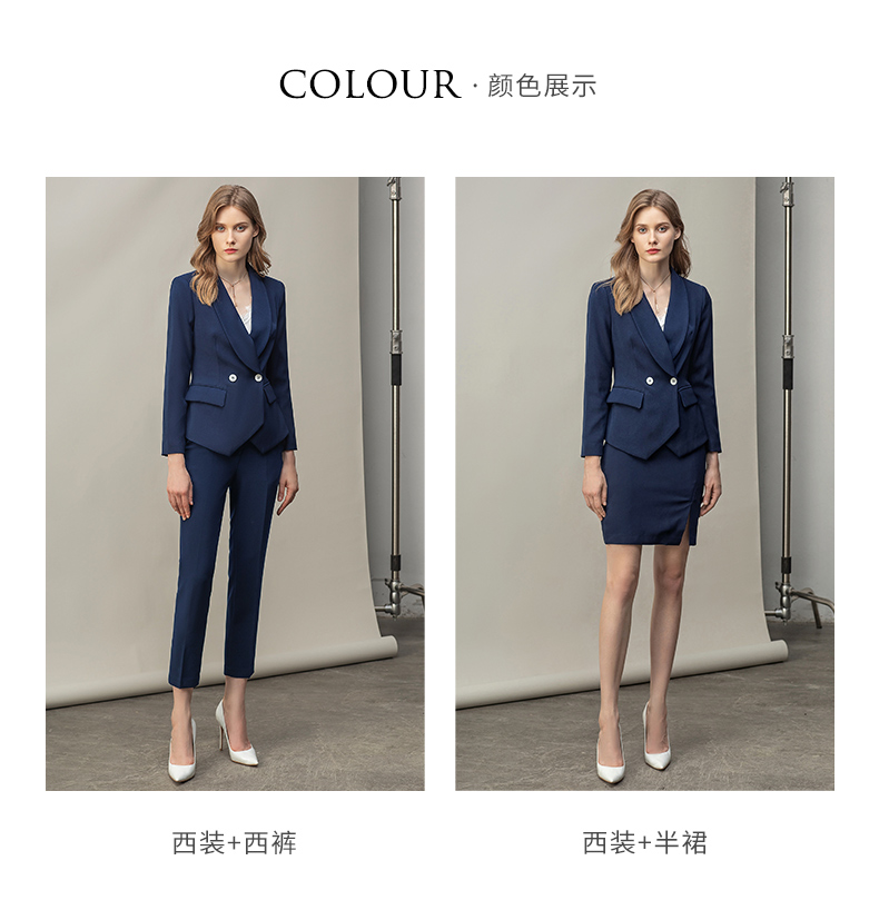 IWY/藏青西装套装女时尚职业装气质修身套裙女神通勤商务正装CS11353