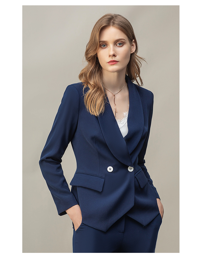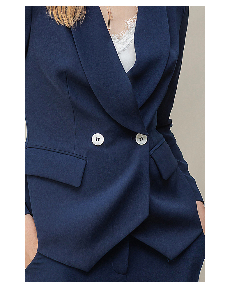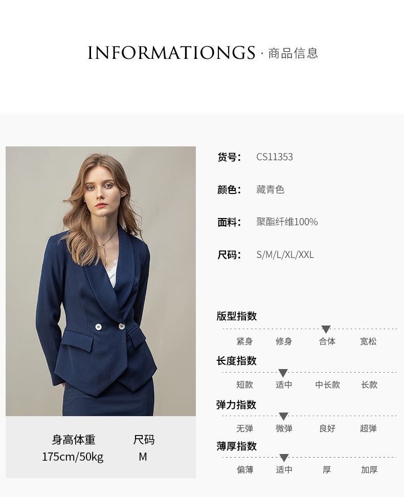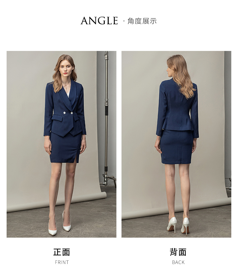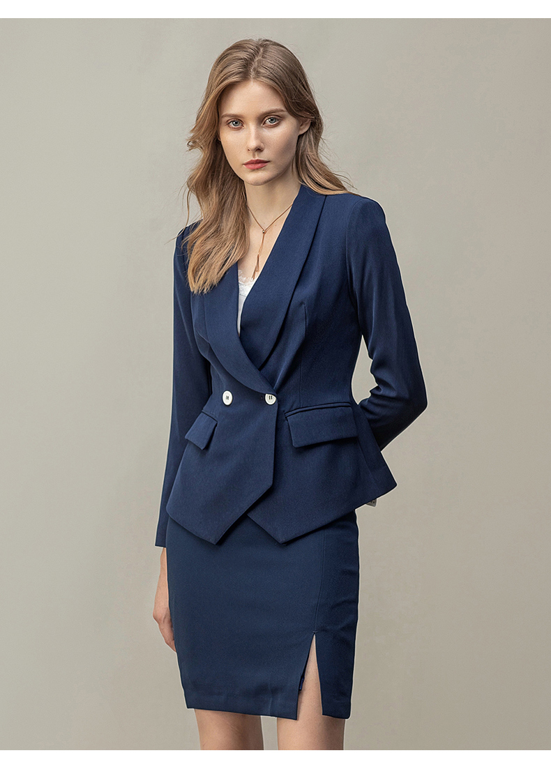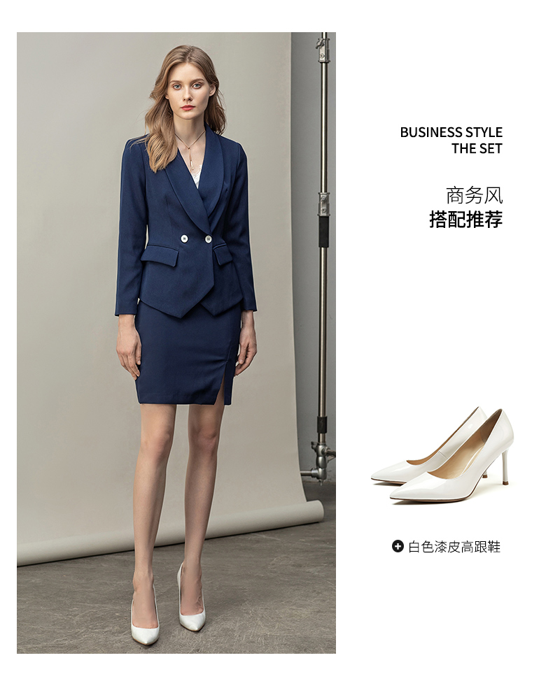 IWY/藏青西装套装女时尚职业装气质修身套裙女神通勤商务正装CS11353