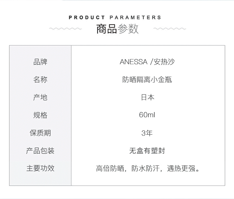 【安耐晒小金瓶防晒霜】 高倍防晒 无惧水汗热 60ml/瓶