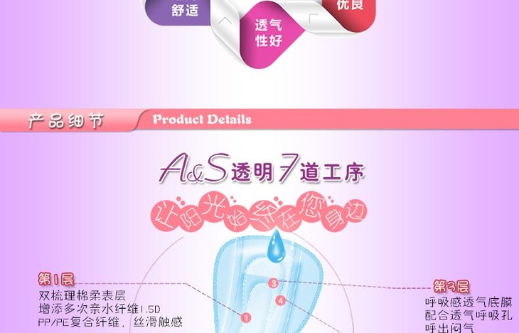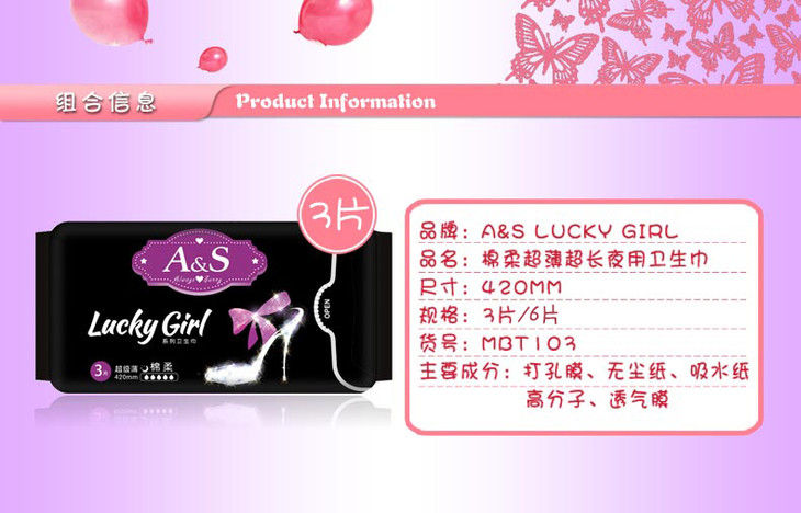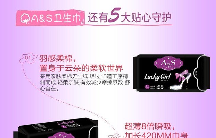 AS卫生巾A&S lucky girl棉柔超薄夜用加长卫生巾3片