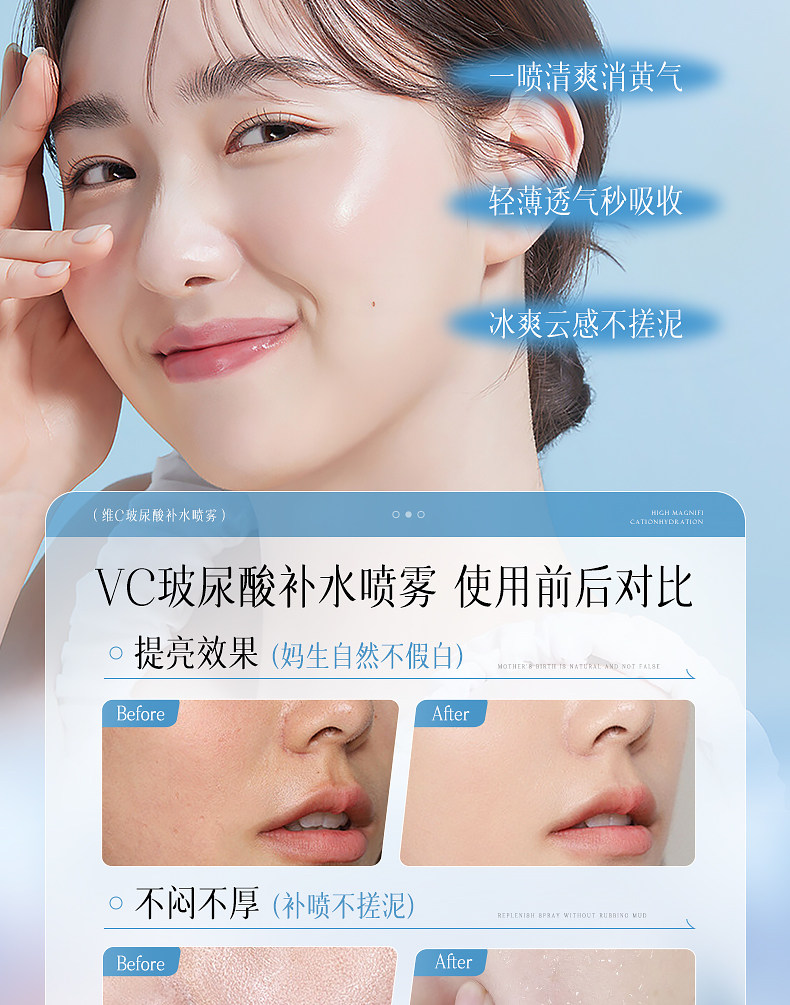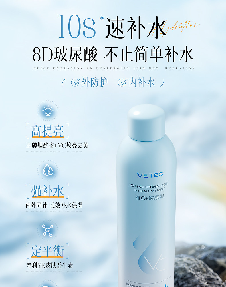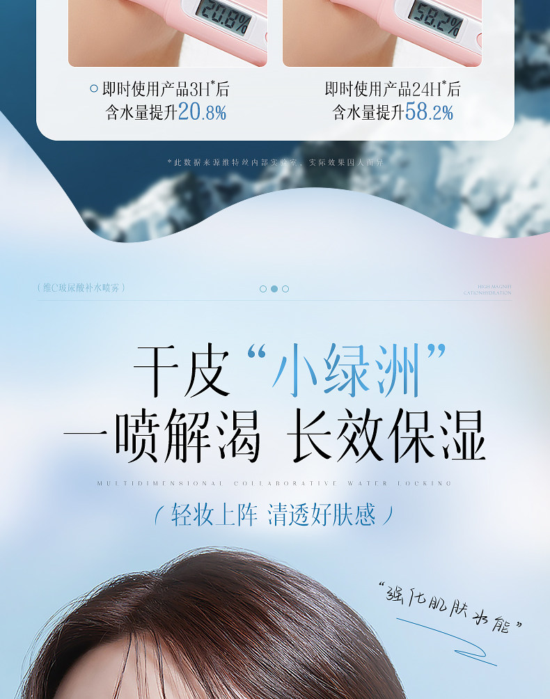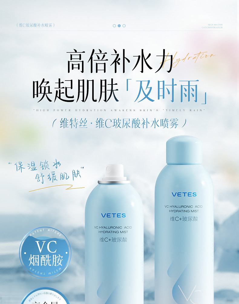 维特丝玻尿酸补水喷雾300ML 爽肤水小分子妆前秋冬保湿敷水男女