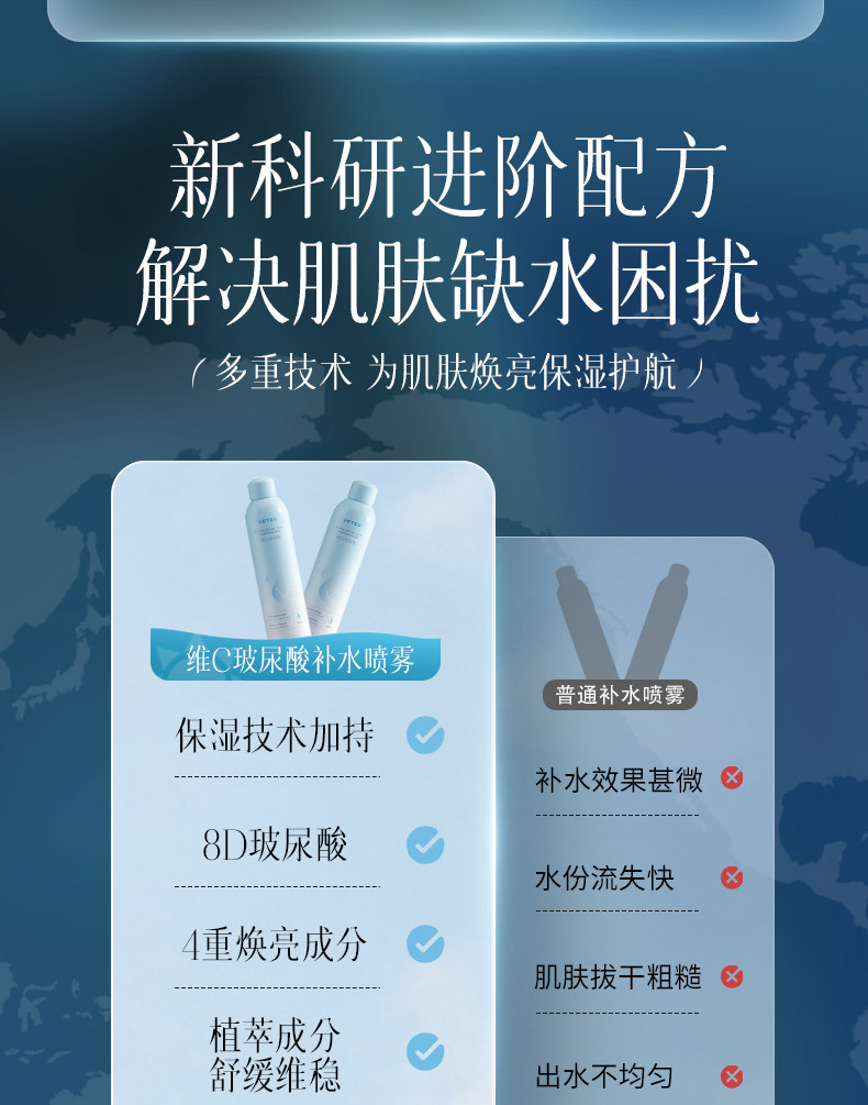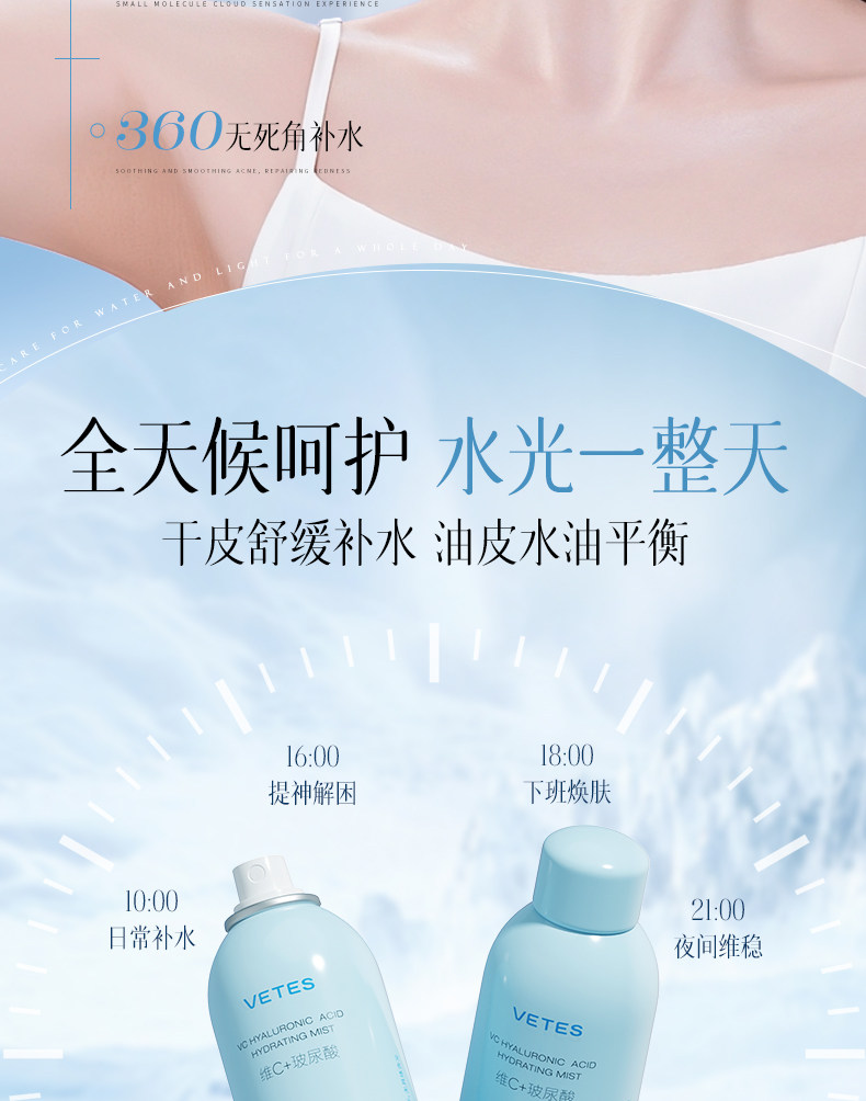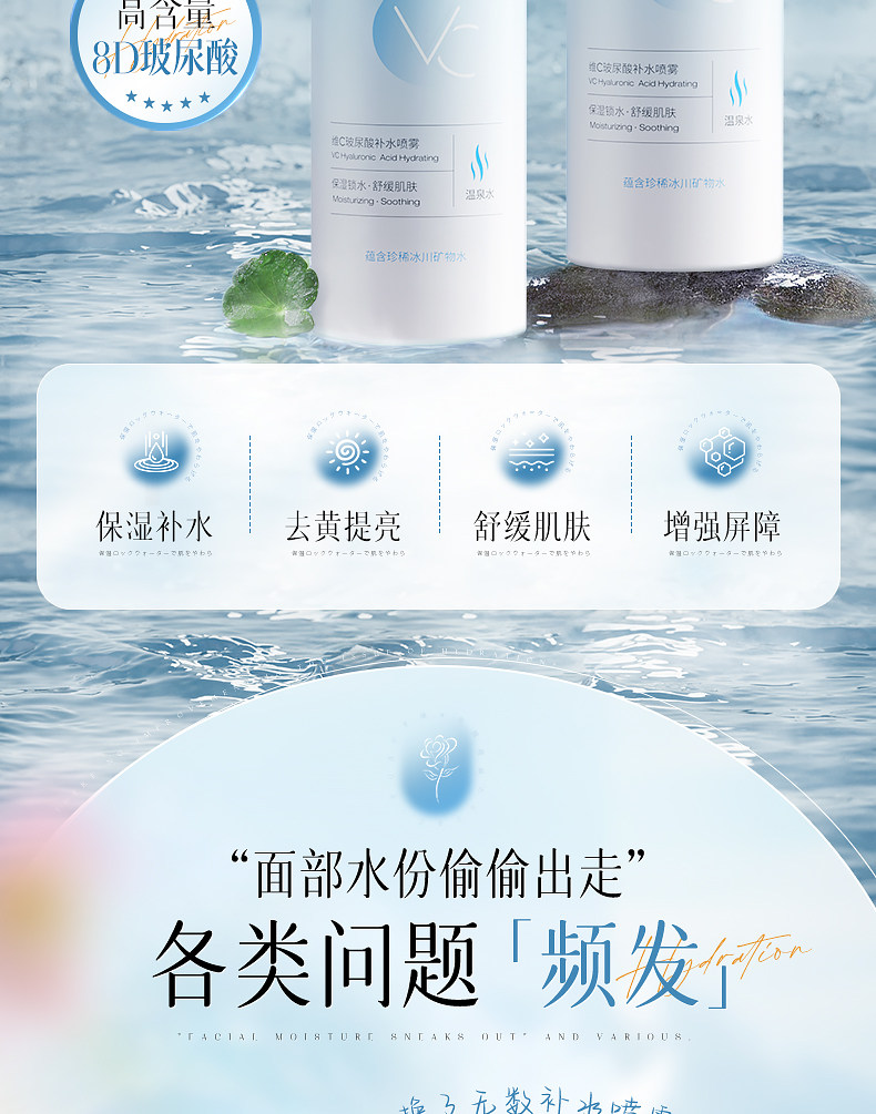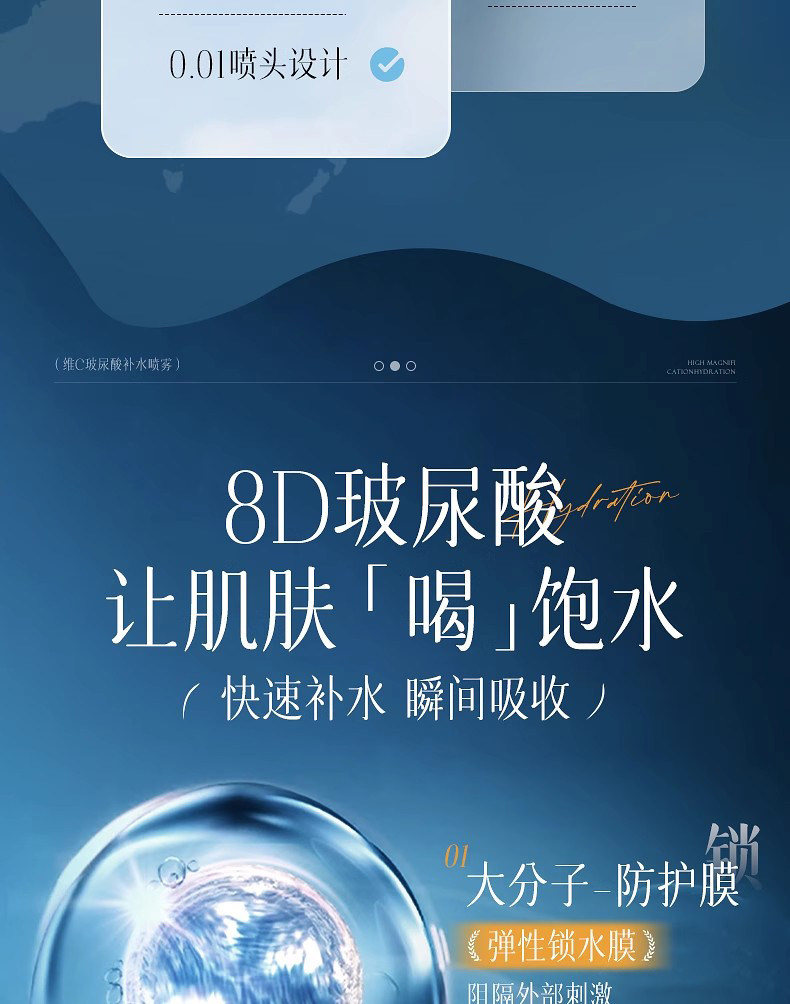 维特丝玻尿酸补水喷雾300ML 爽肤水小分子妆前秋冬保湿敷水男女