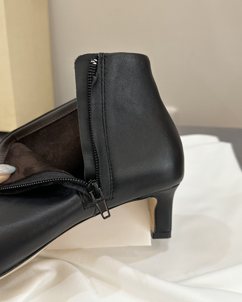 127-4 新款 TR鸭嘴鞋头 小猫跟 全皮 小短靴 稳当跟脚踝靴