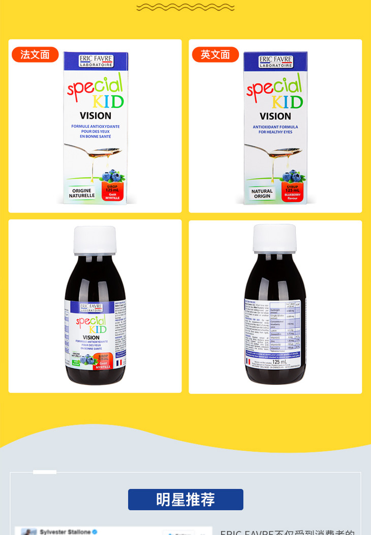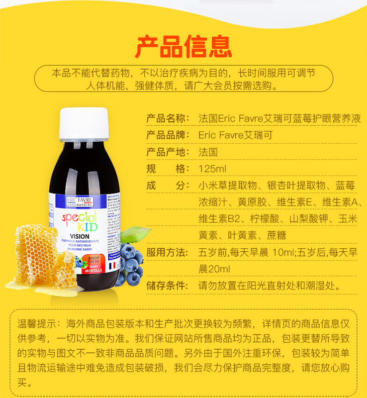 【保税仓】法国ERIC FAVRE埃里克儿童护眼护视力糖浆 125ml