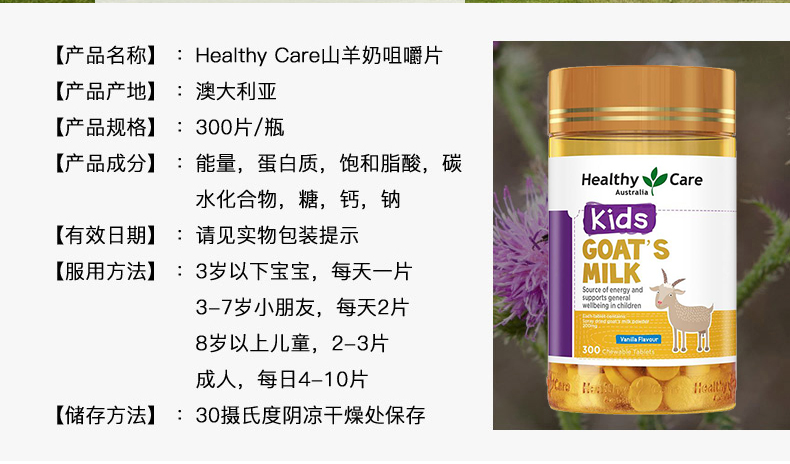 Healthy Care 香草味山羊奶片 300片