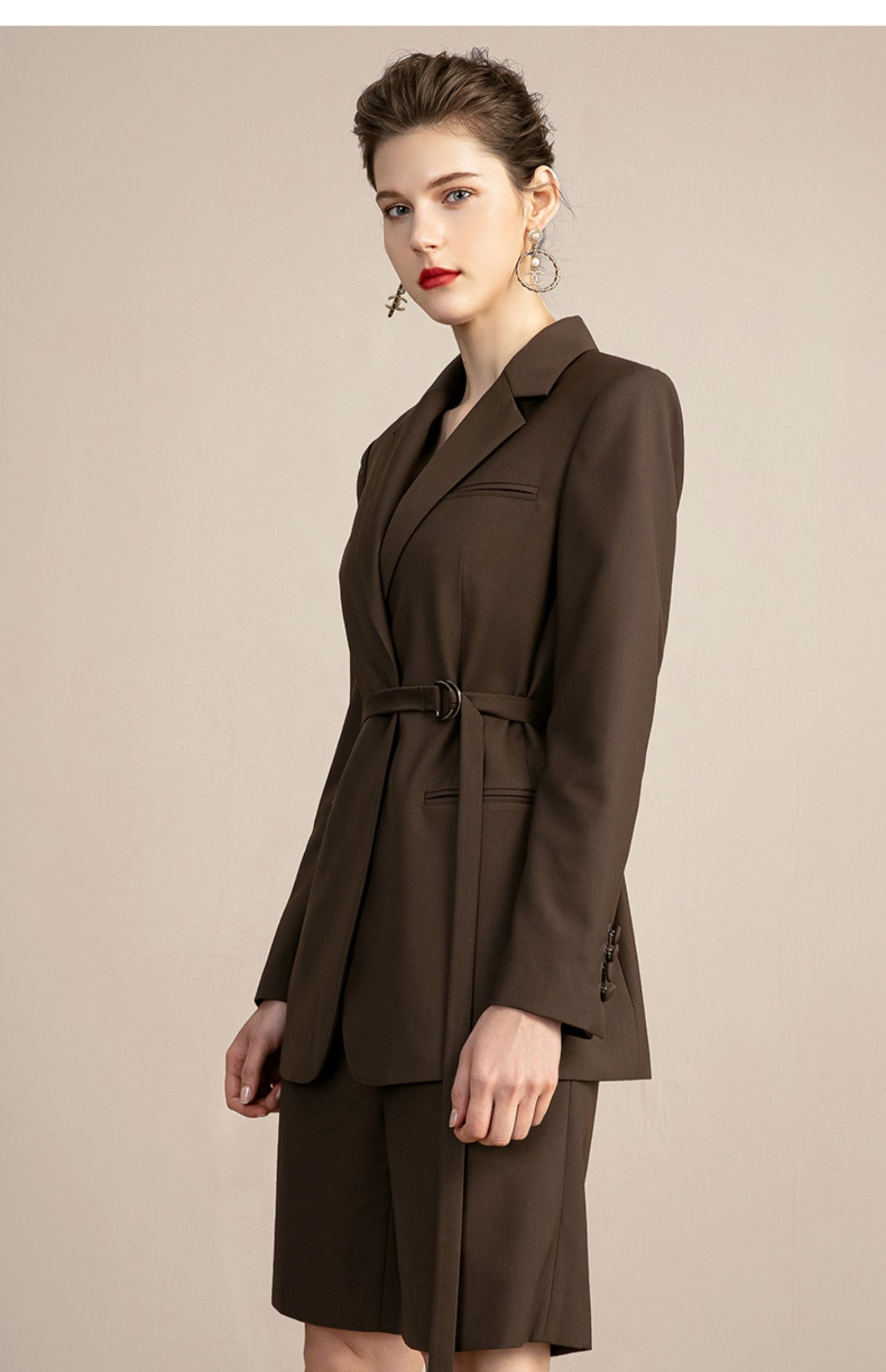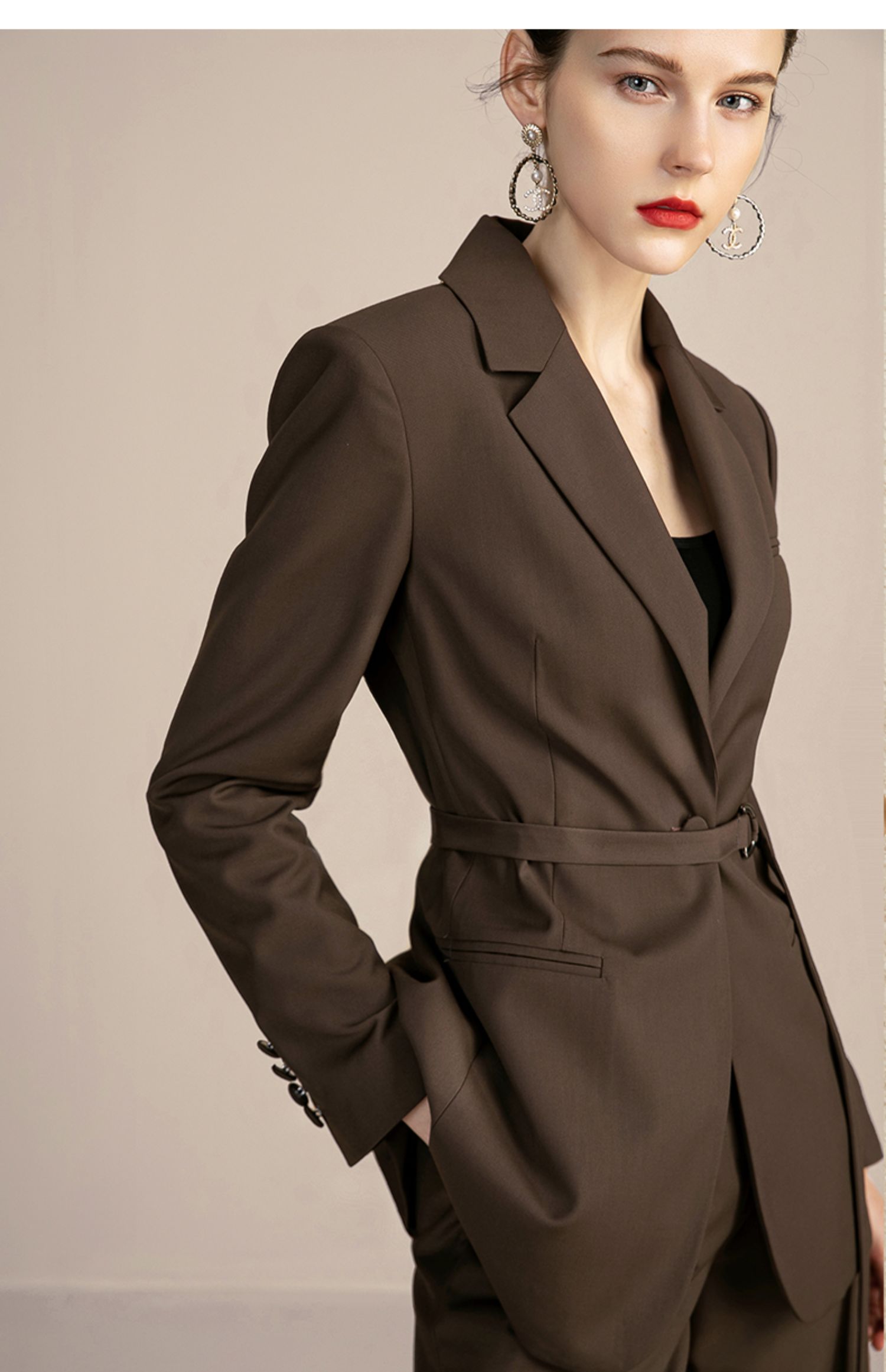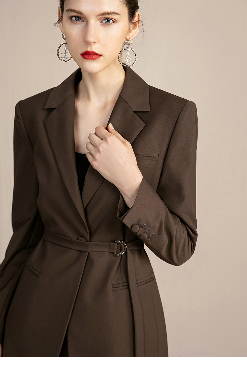IWY/复古卡其色西装套装女气质总裁职业工作服高端时尚置业顾问女装213110C1+P5