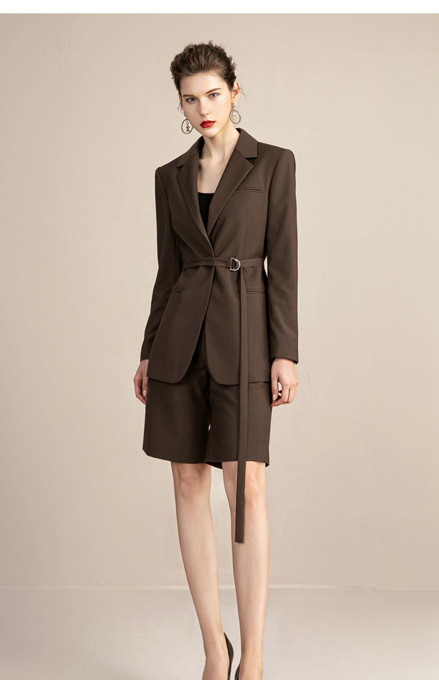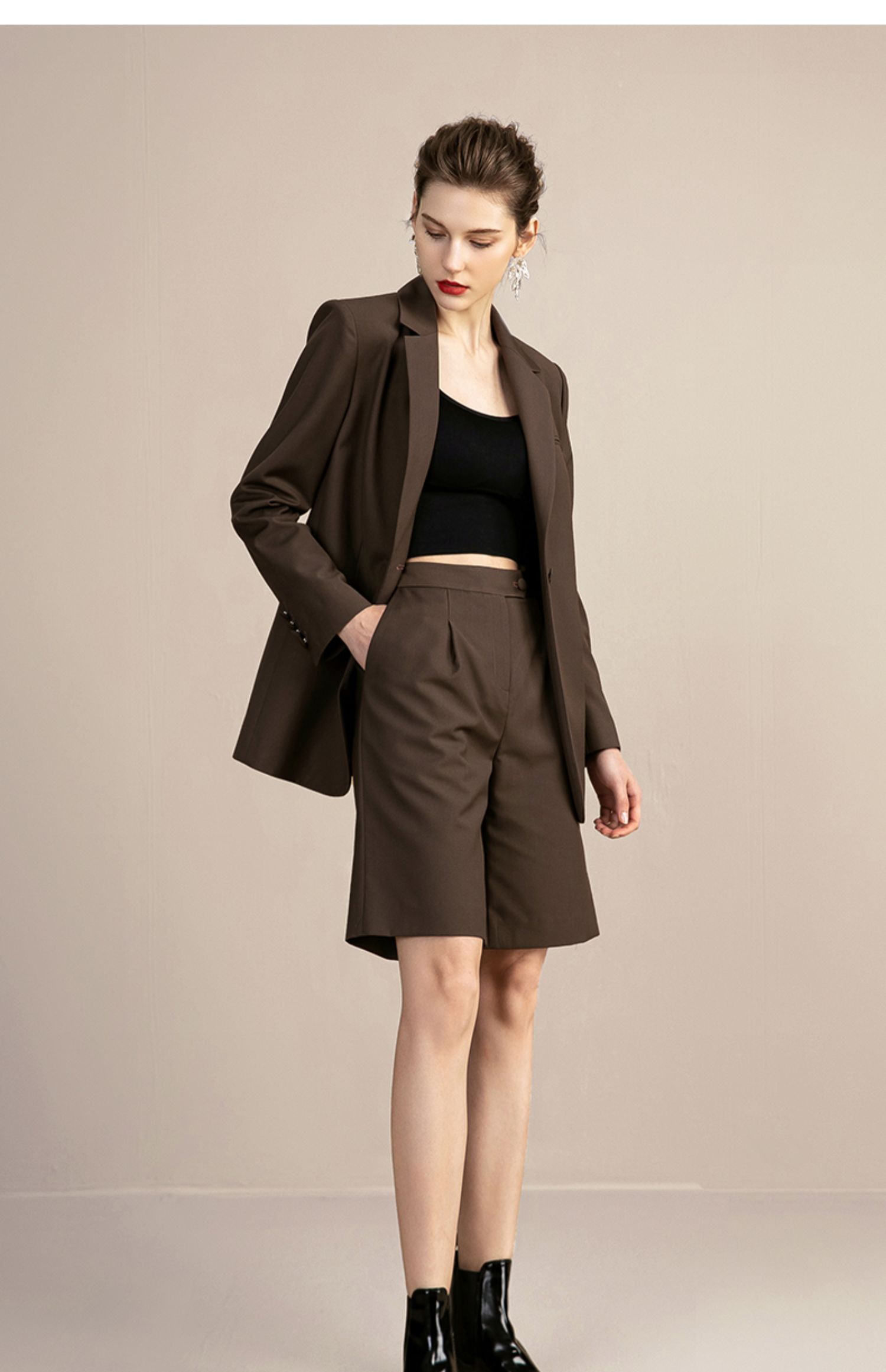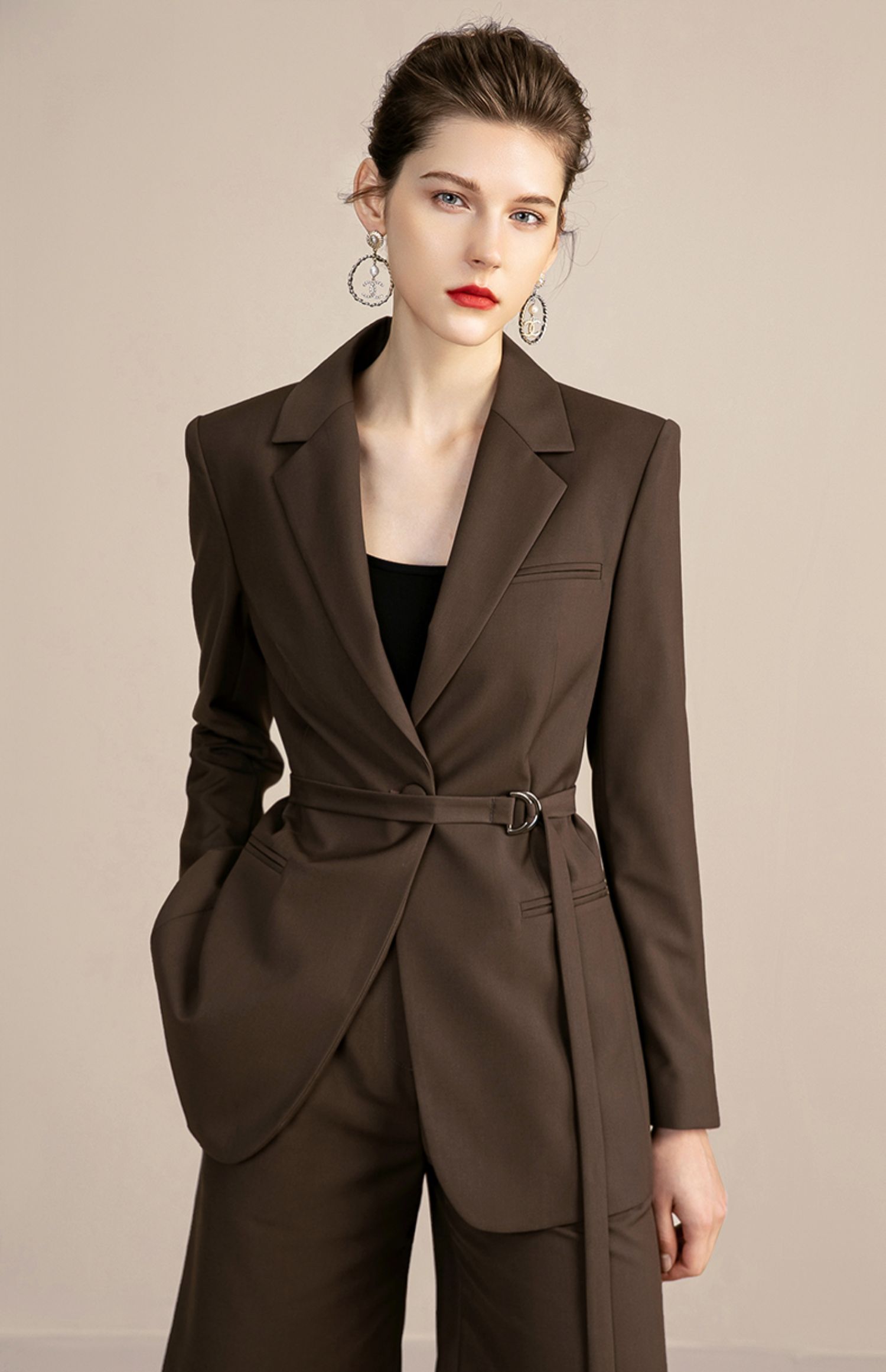 IWY/复古卡其色西装套装女气质总裁职业工作服高端时尚置业顾问女装213110C1+P5